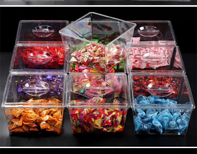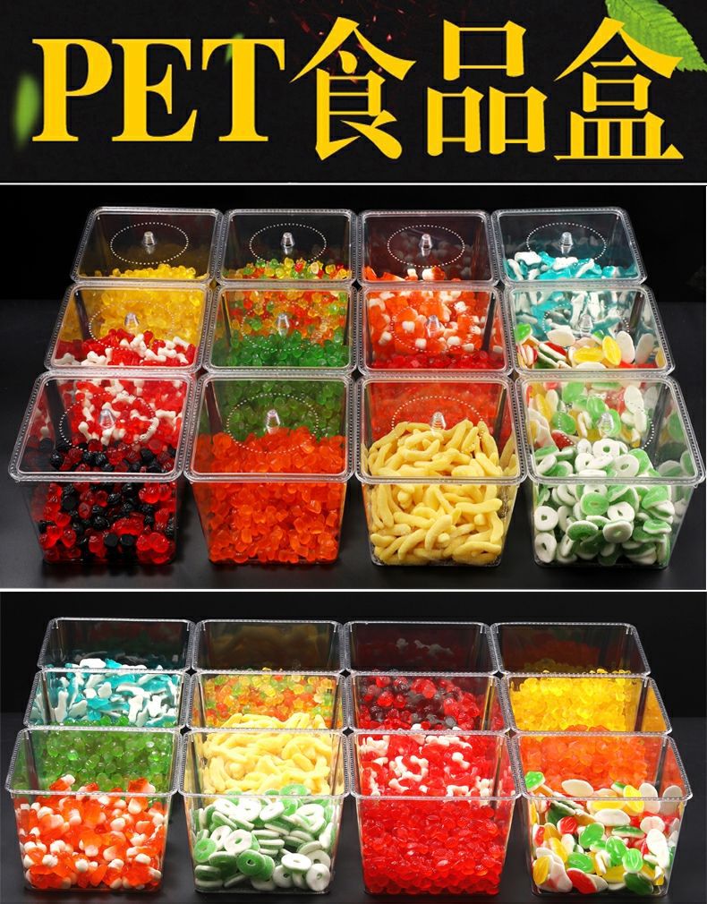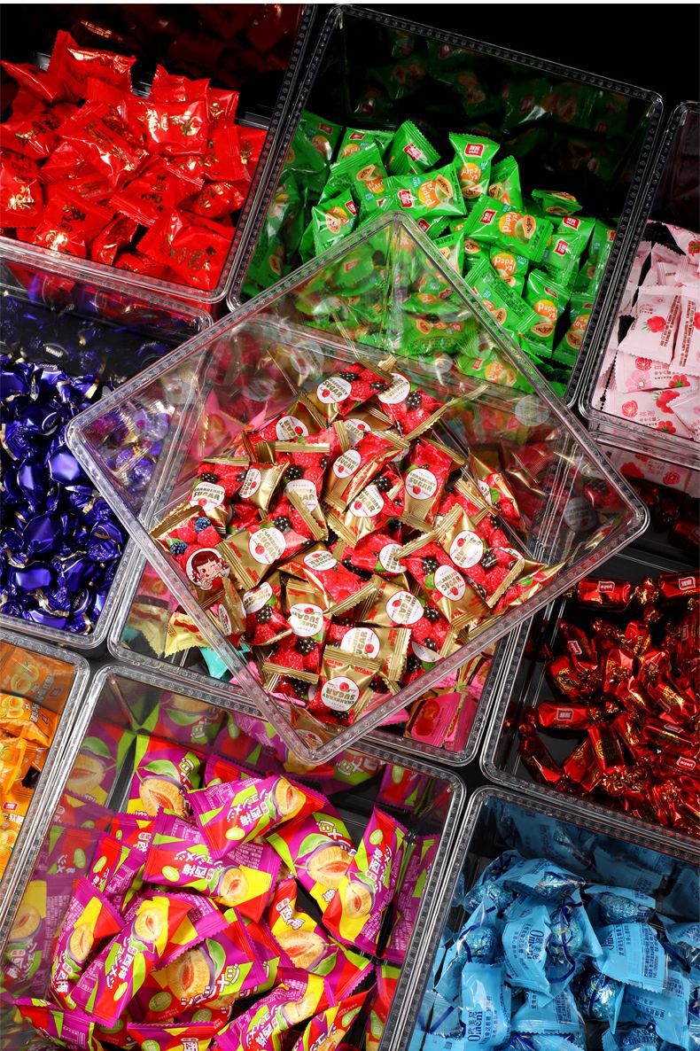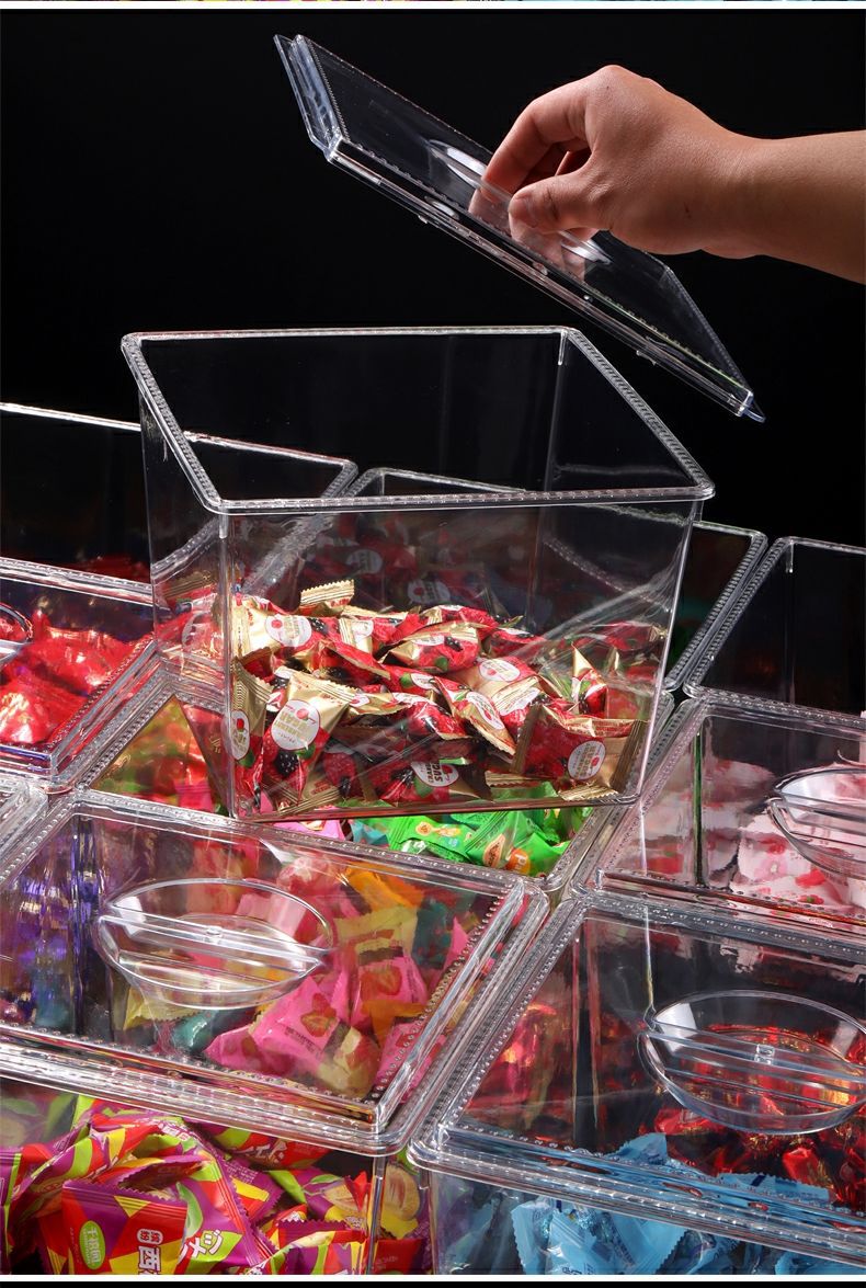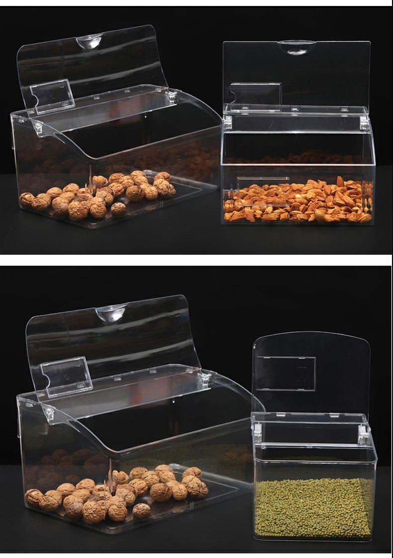 Supermercado caja de alimentos caja de visualización de plástico transparente fruta seca a granel caja de exhibición de estantes de bocadillos dulces blandos
