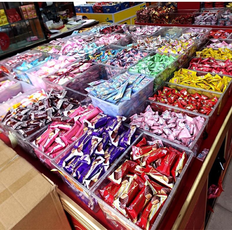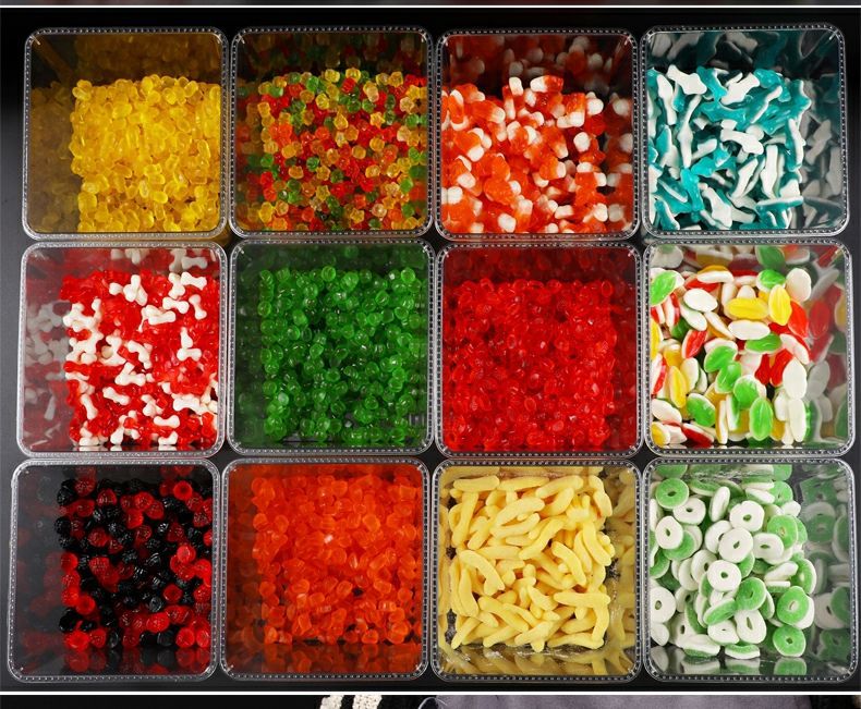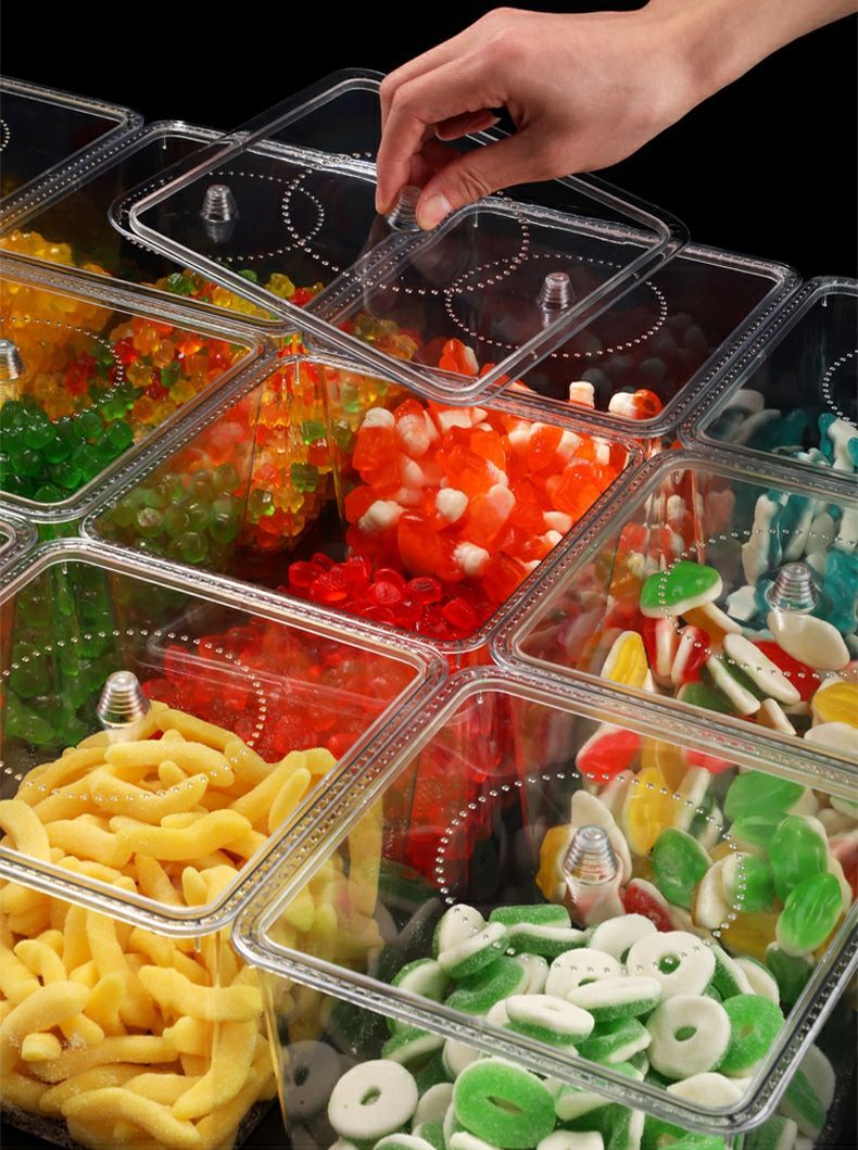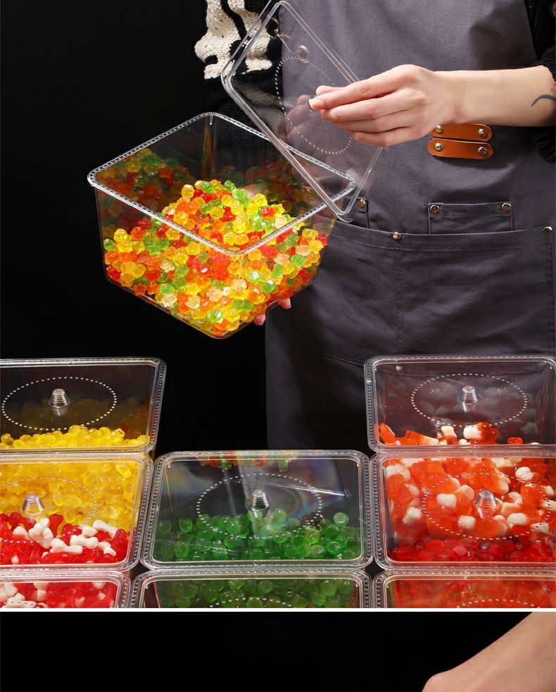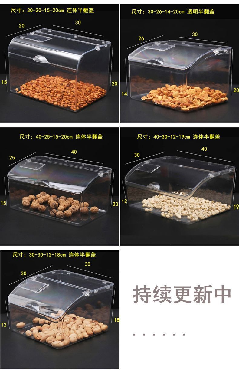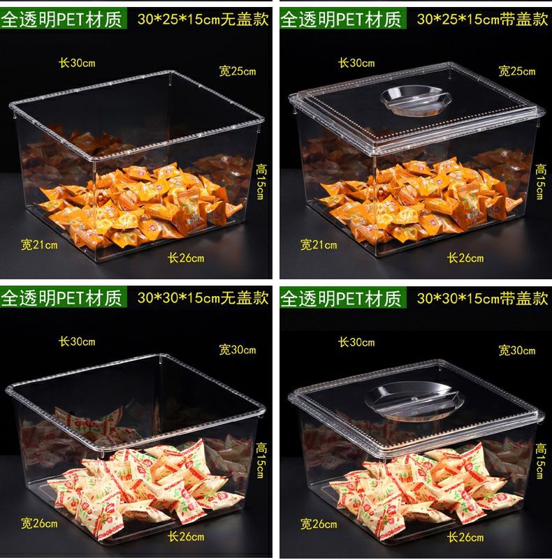 Supermercado caja de alimentos caja de visualización de plástico transparente fruta seca a granel caja de exhibición de estantes de bocadillos dulces blandos