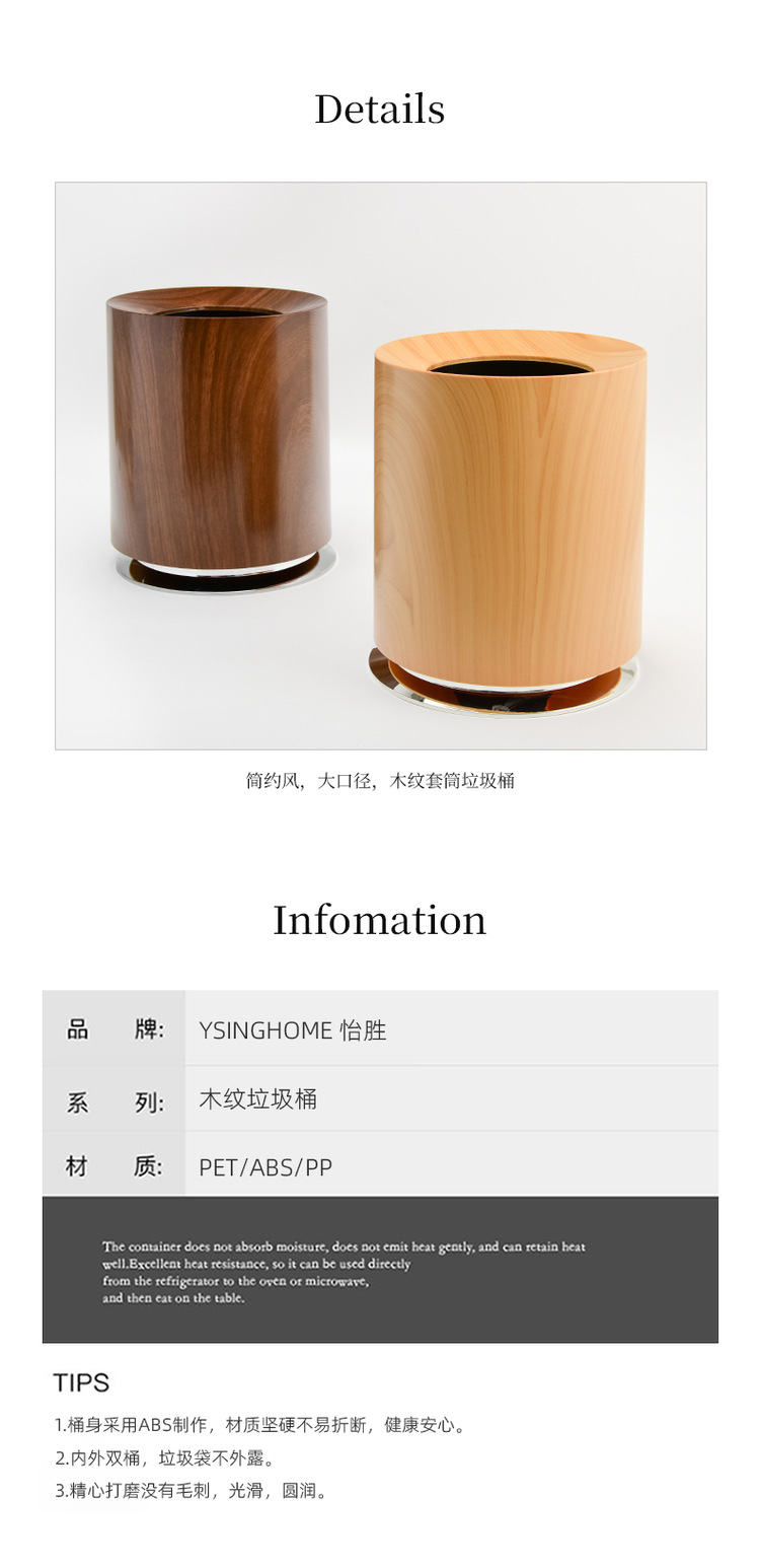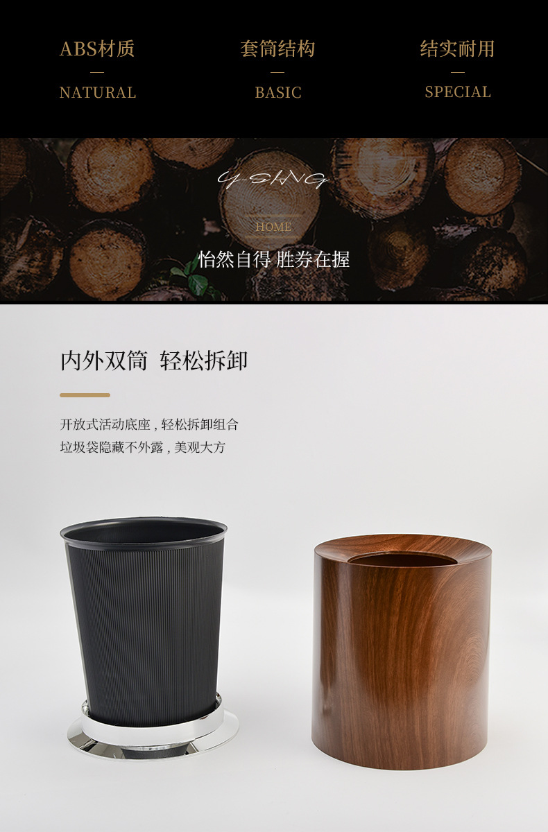 Basura de madera imitación, lujo ligero para el hogar, sala de estar, dormitorio, baño, hotel de estilo medieval, cubo sanitario comercial