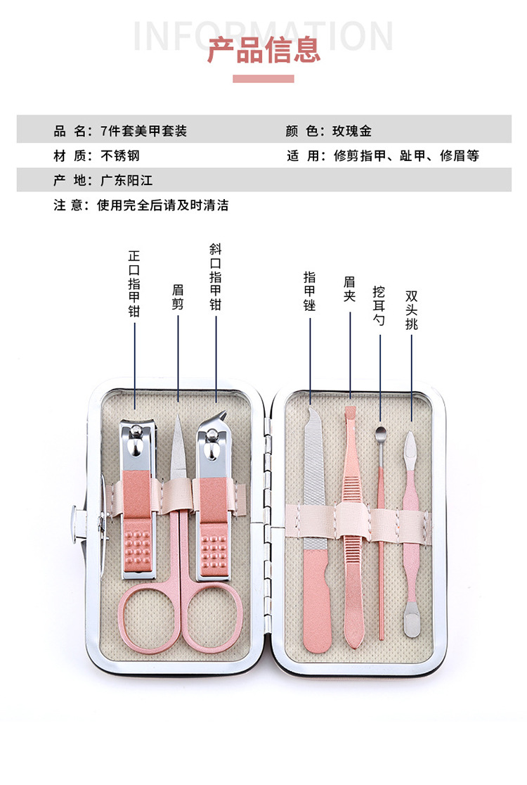 Nuevo conjunto de pinzas de uñas de acero inoxidable 7 piezas conjunto de herramientas de manicuras cortadora de uñas pedicura conjunto completo
