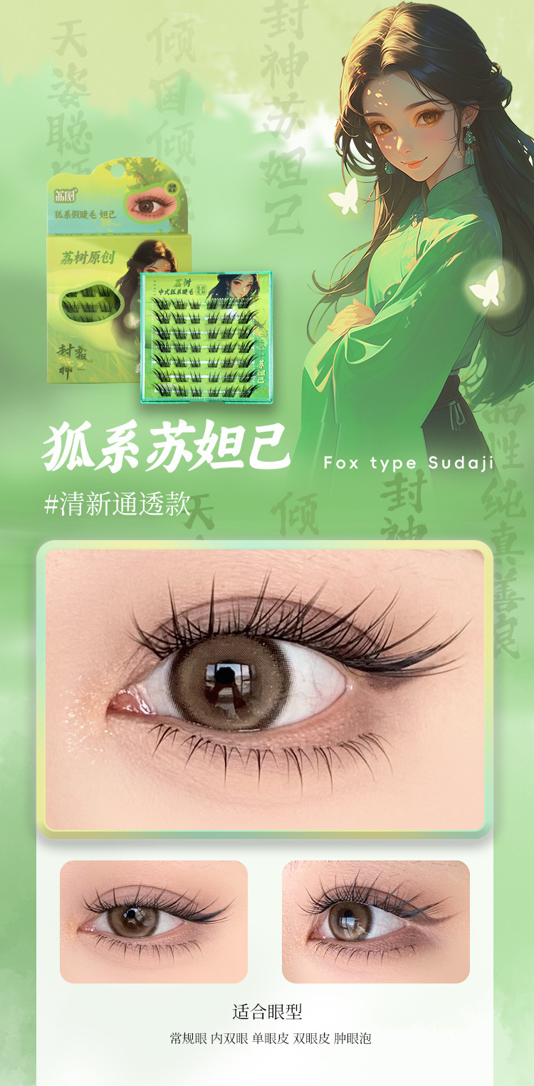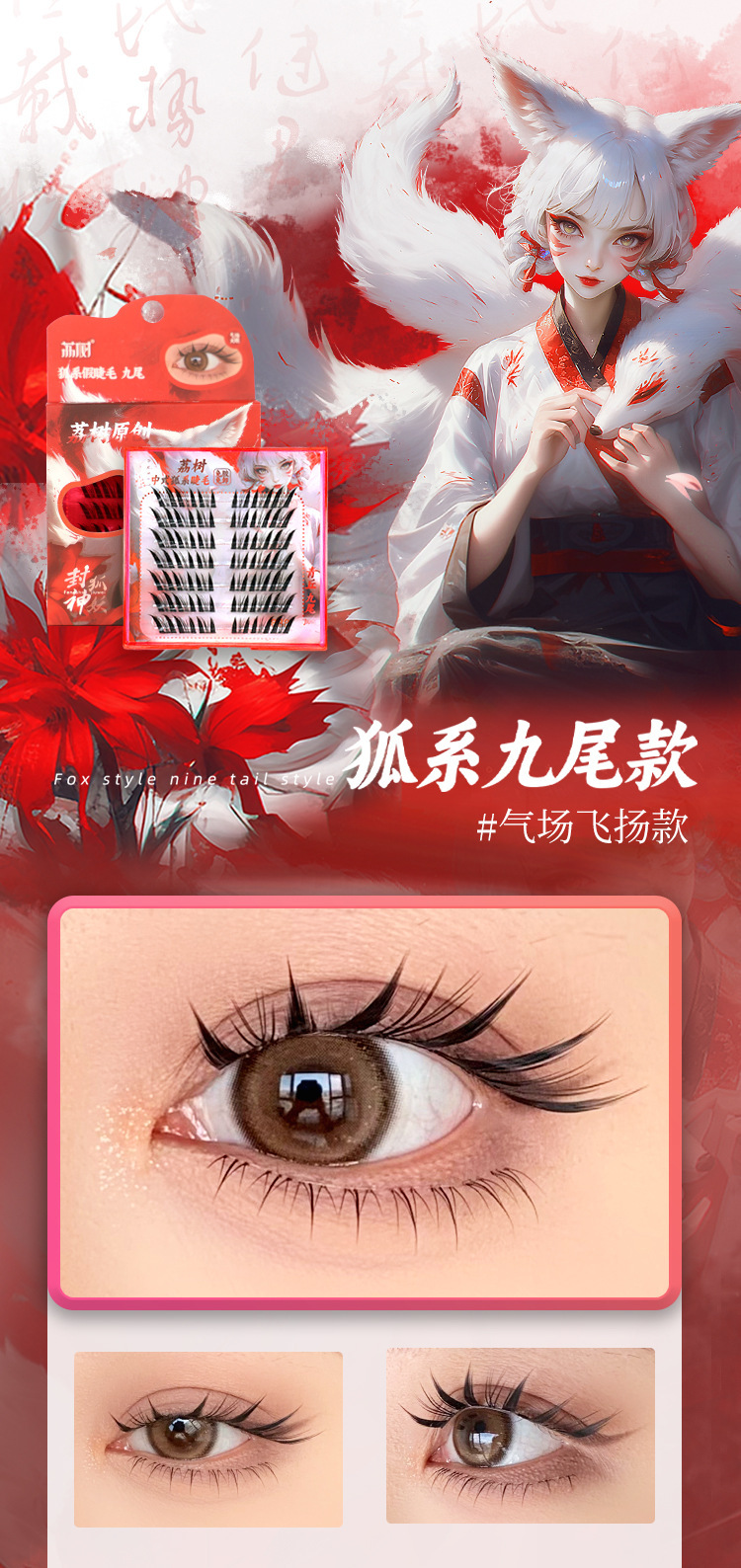 Li Shu sin pegamento, pestañas falsas Su Daji Fox es una línea de volador inclinado, encantador y fresco, seccionado, hermana imperial natural.
