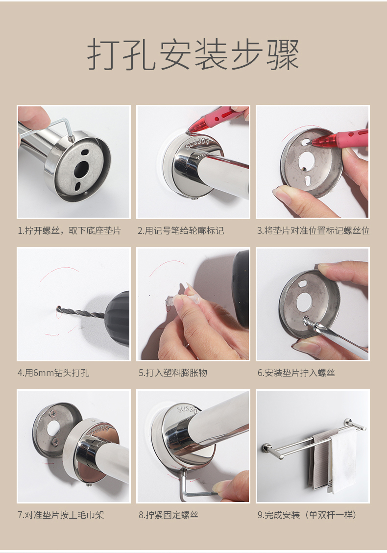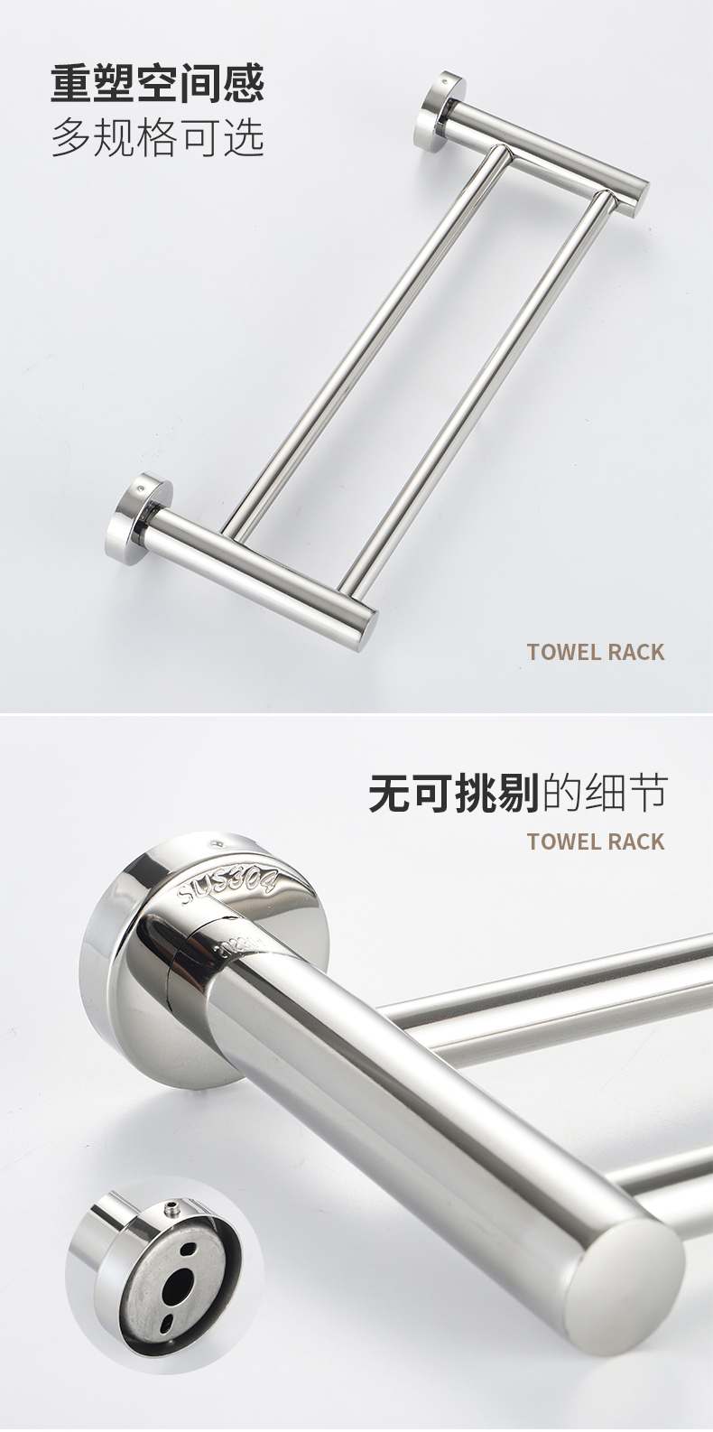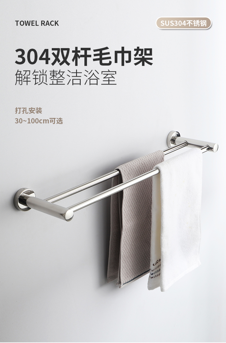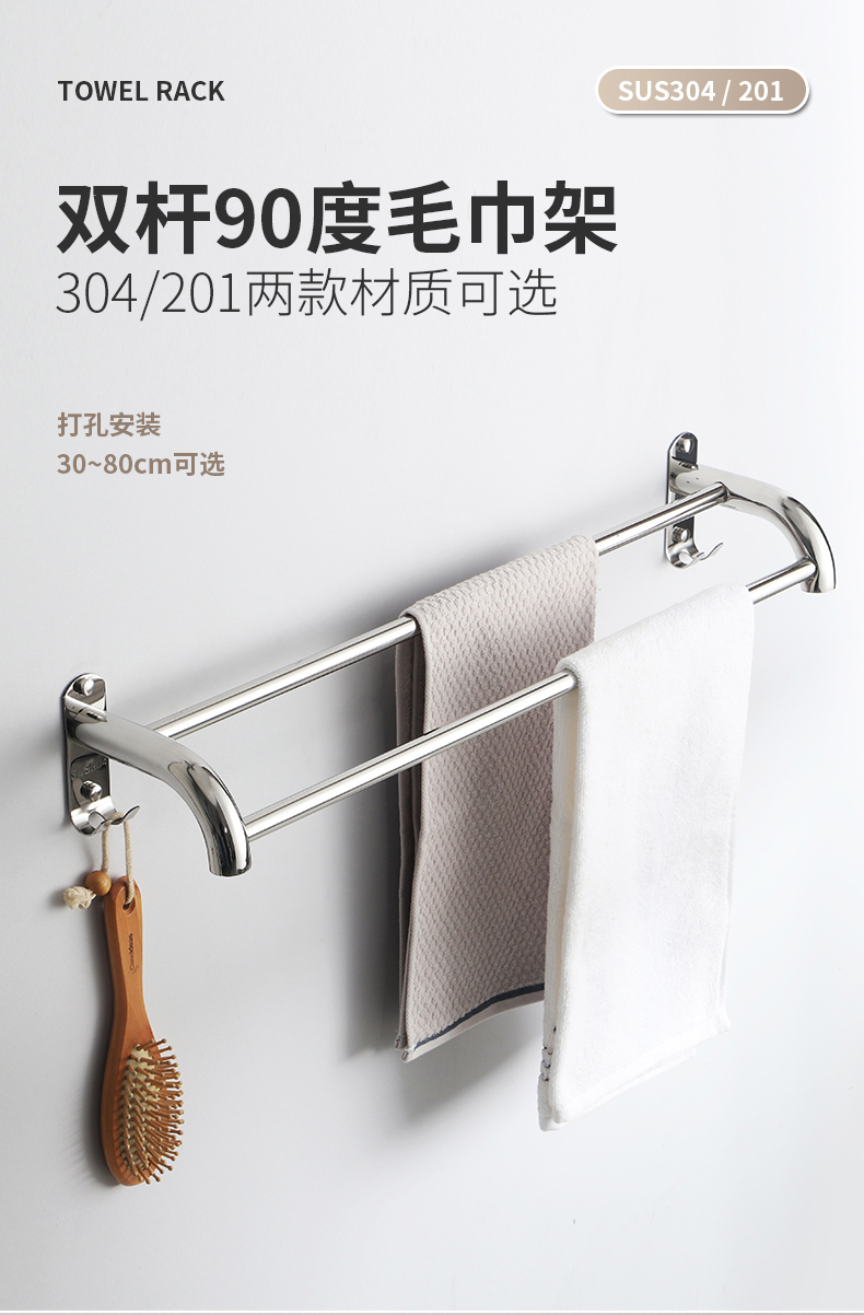 . Cross-border 304 alargado y grueso barra de toalla de baño de acero inoxidable barra única barra doble barra