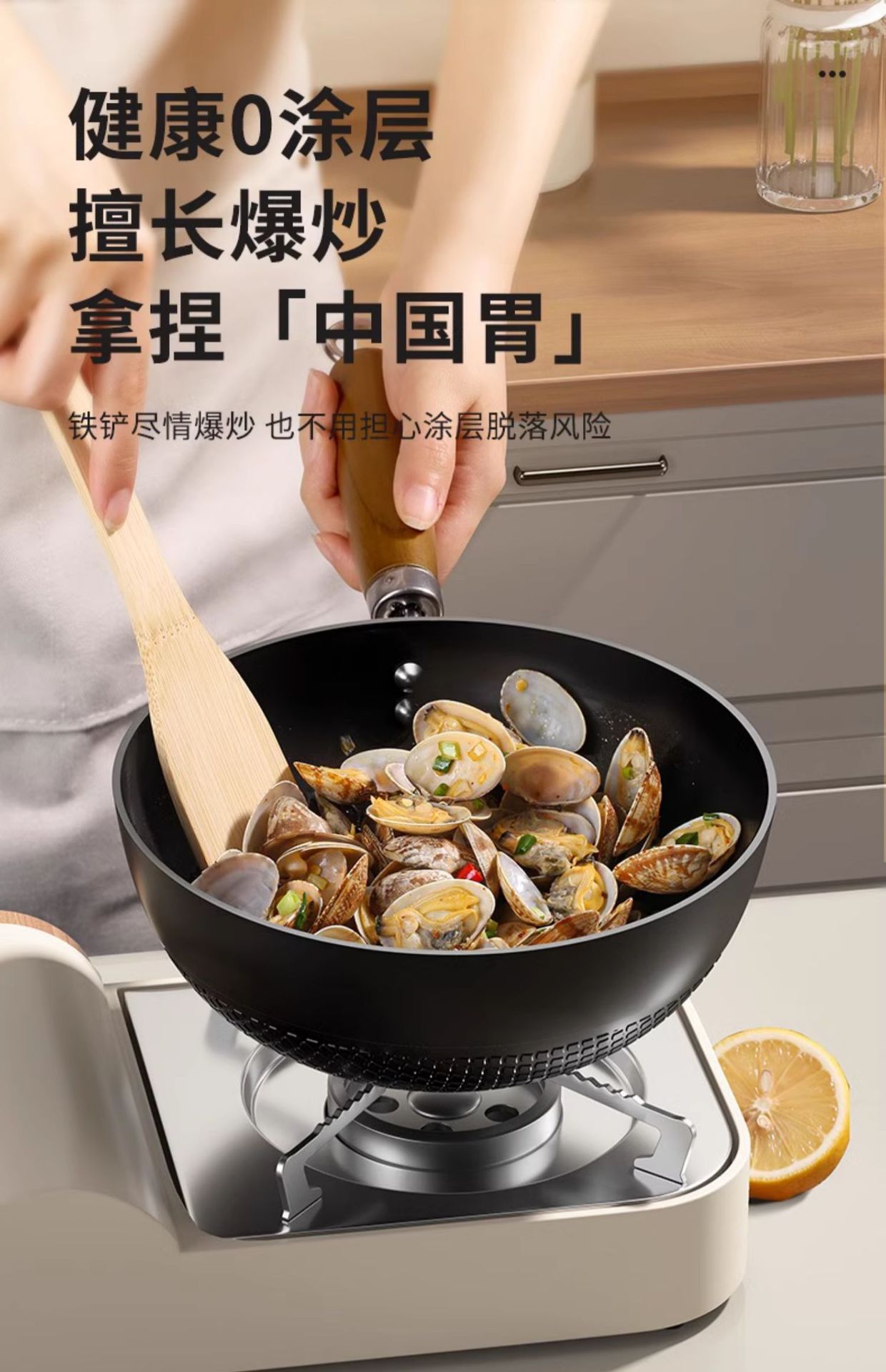 Nuevo actualizado ha abierto la olla de hierro de fondo plano sin recubrimiento de la olla de hierro de la olla electromagnética de la olla de verduras de la olla no pegajosa de la olla