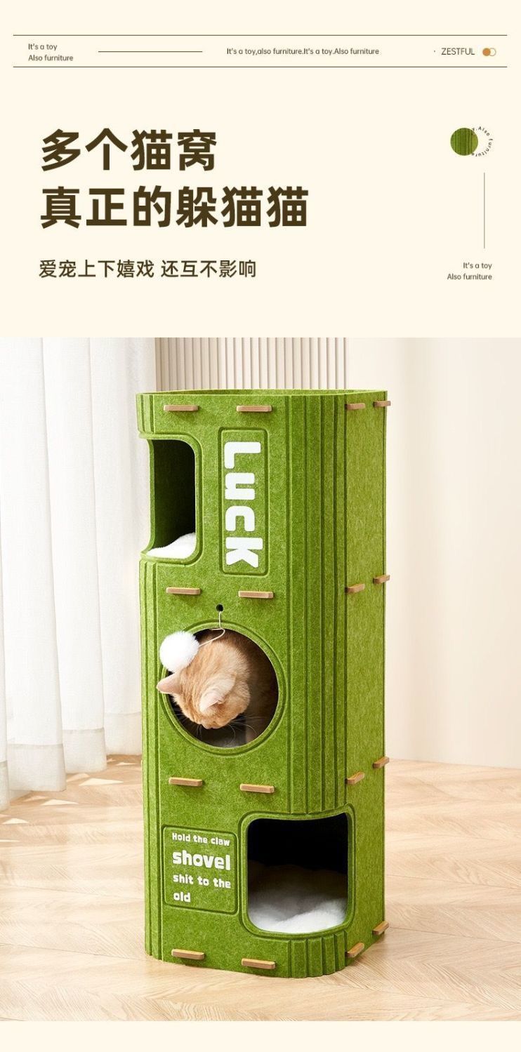 Multicapa gatos trepando estantes agujeros de árboles fieltro transpirable una sola placa de agarre para gatos casa de gatos de doble capa placa de agarre de gran espacio casa de gatos