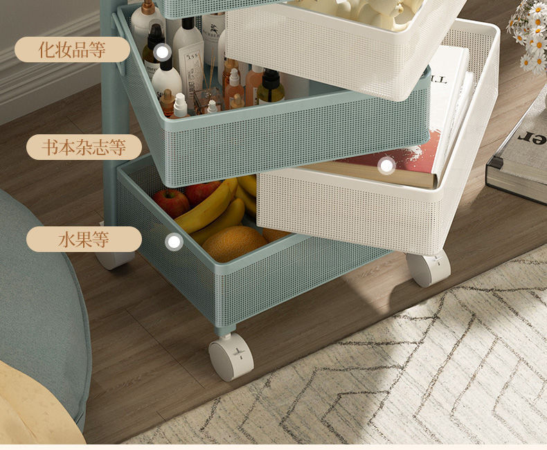 Estante de almacenamiento de cocina de carro pequeño estante de almacenamiento de bocadillos móviles multicapa estante de almacenamiento multifuncional estante de almacenamiento de artículos diversos