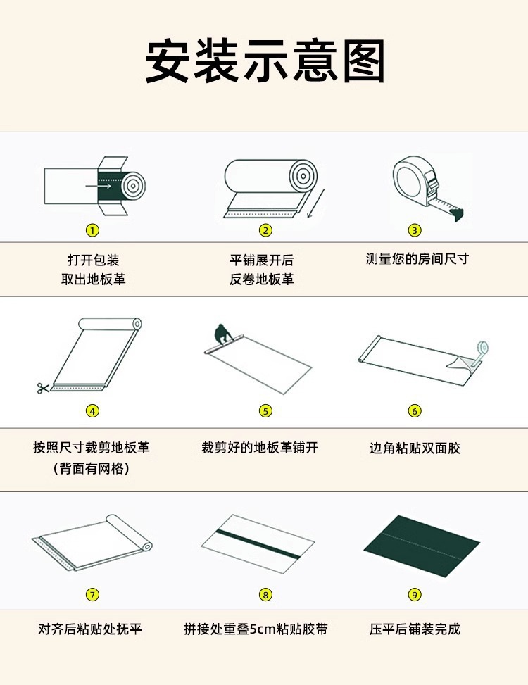 Gran área de alfombra dormitorio a prueba de agua a prueba de humedad casa piso de cama comercial suelo de cuero de cemento piso de pavimentación directa