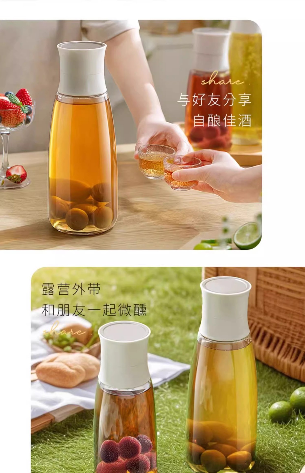 Botella de vidrio de licor de frutas, recipiente de subenvasado de licor, botella vacía, frasco sellado, botella de almacenamiento de licor a largo plazo