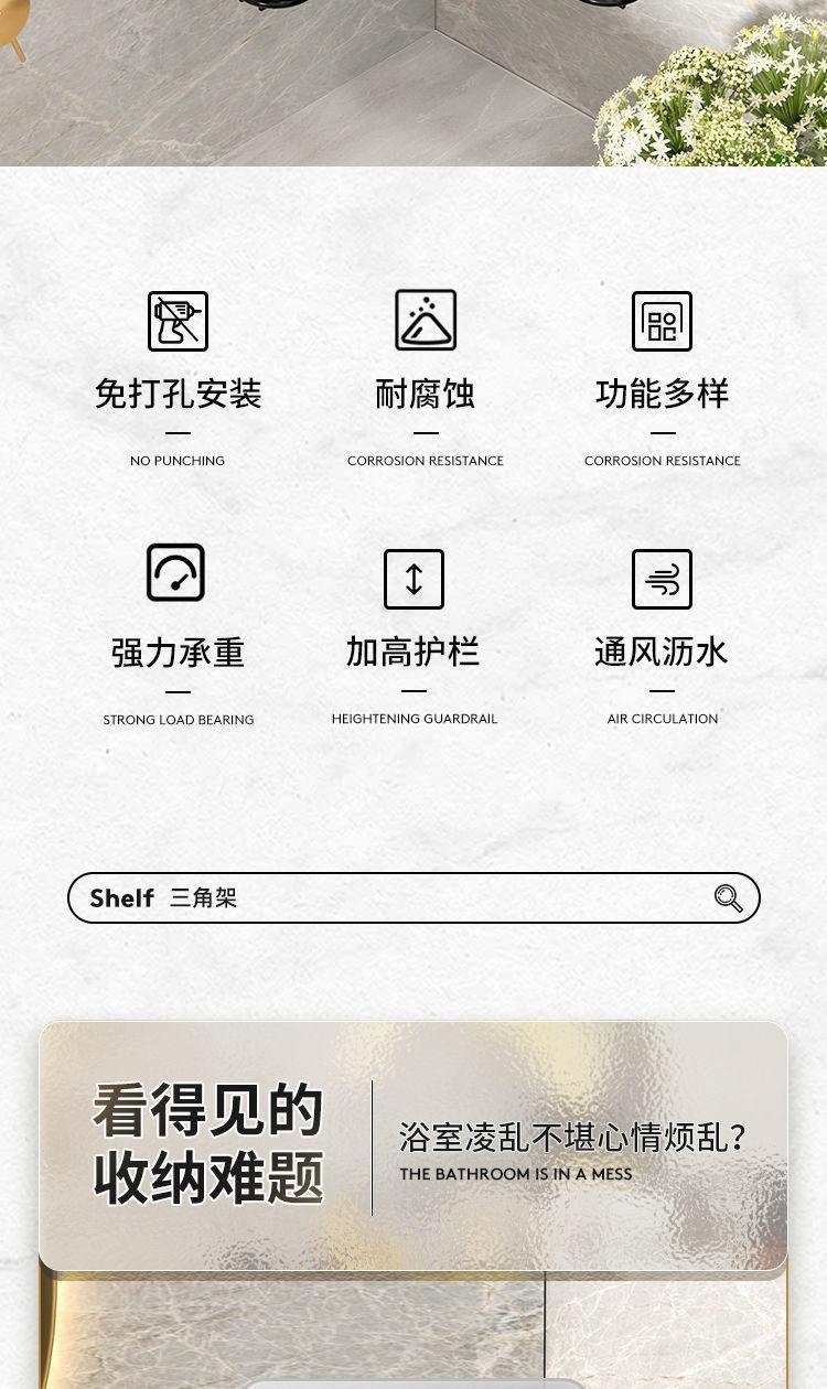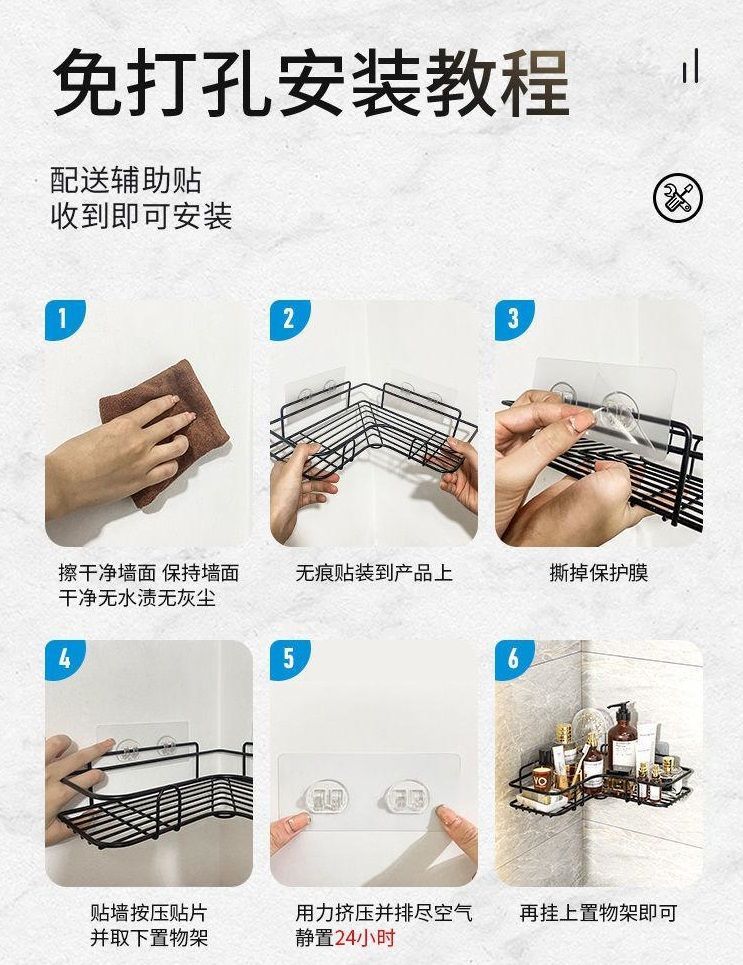 Estantes de baño sin perforación inodoro de baño inodoro de pared lavabo de cocina de almacenamiento de estantería de baño transfronterizo