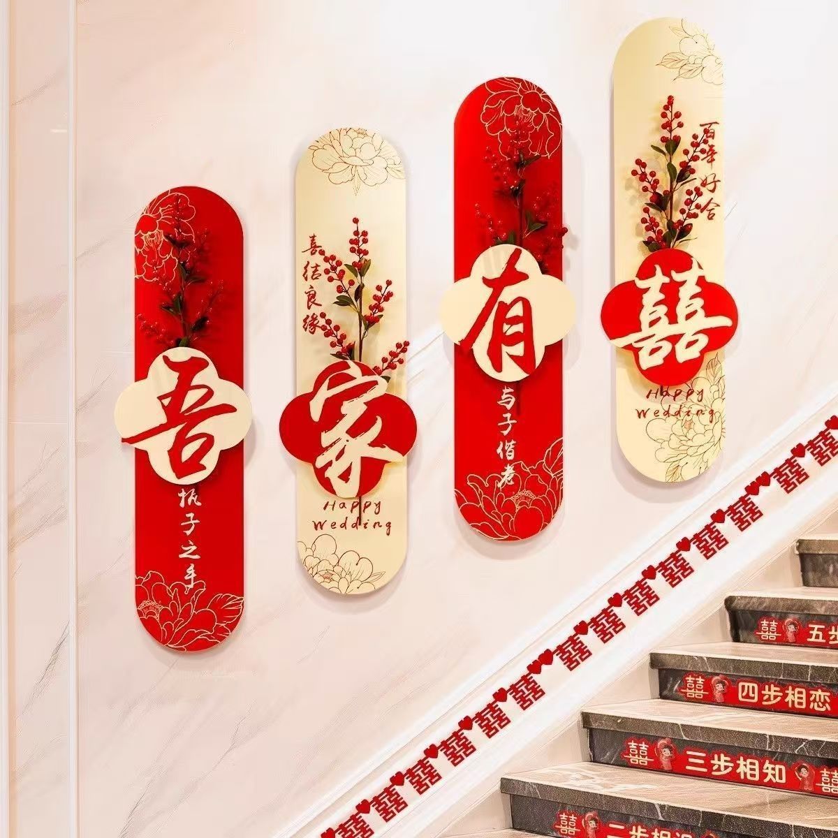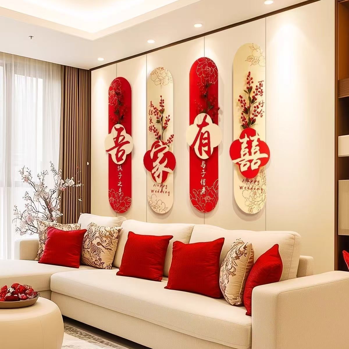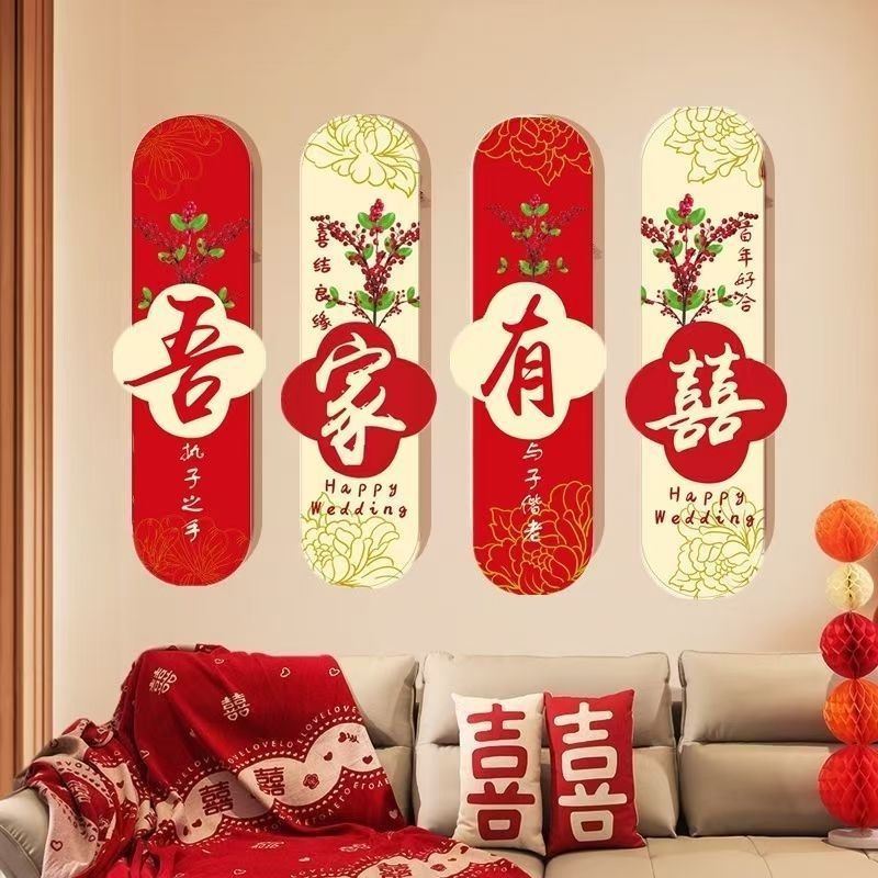 Diseño de la habitación de boda para hombres nueva habitación de fondo sofá sala de estar pegatinas de pared decoración de boda para mujeres dormitorio cabecera de la cama set de palabras de boda