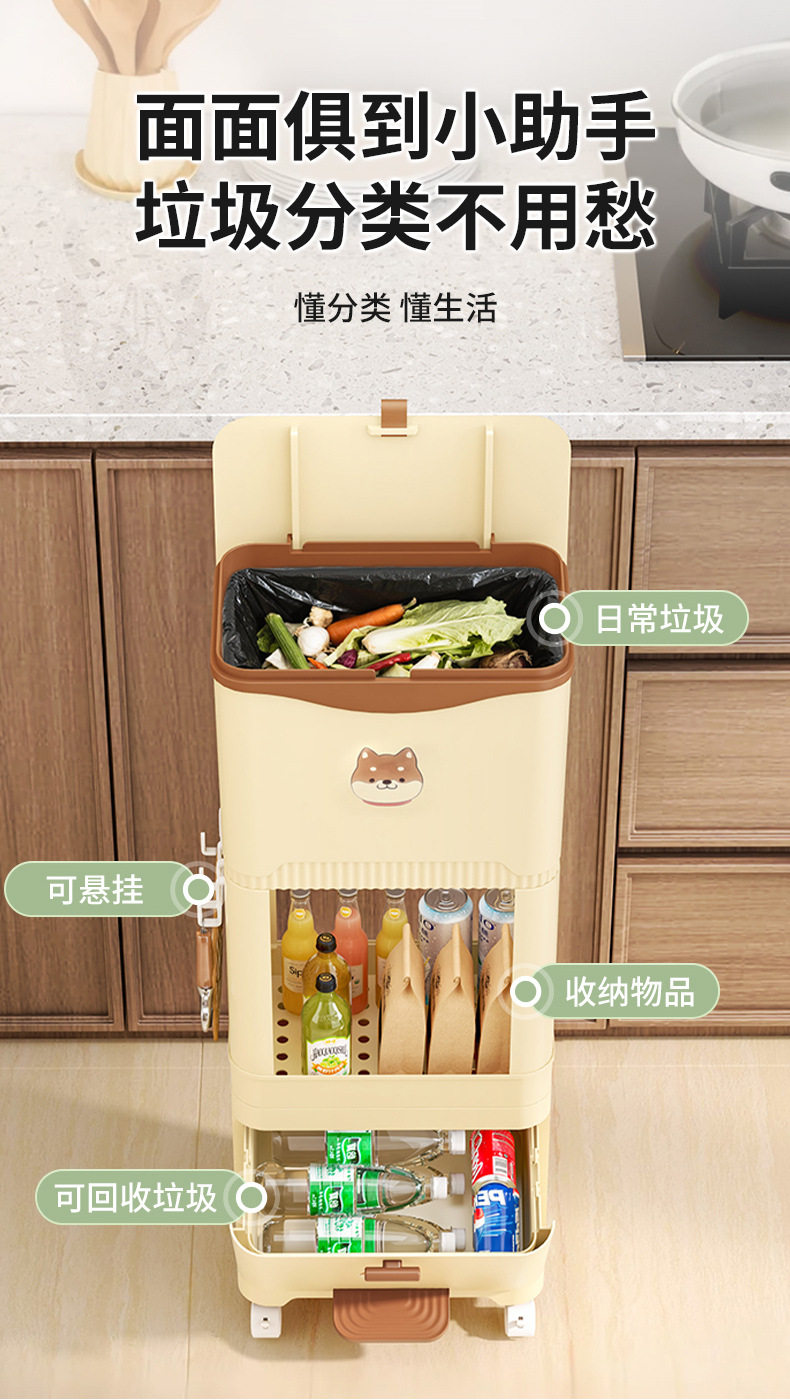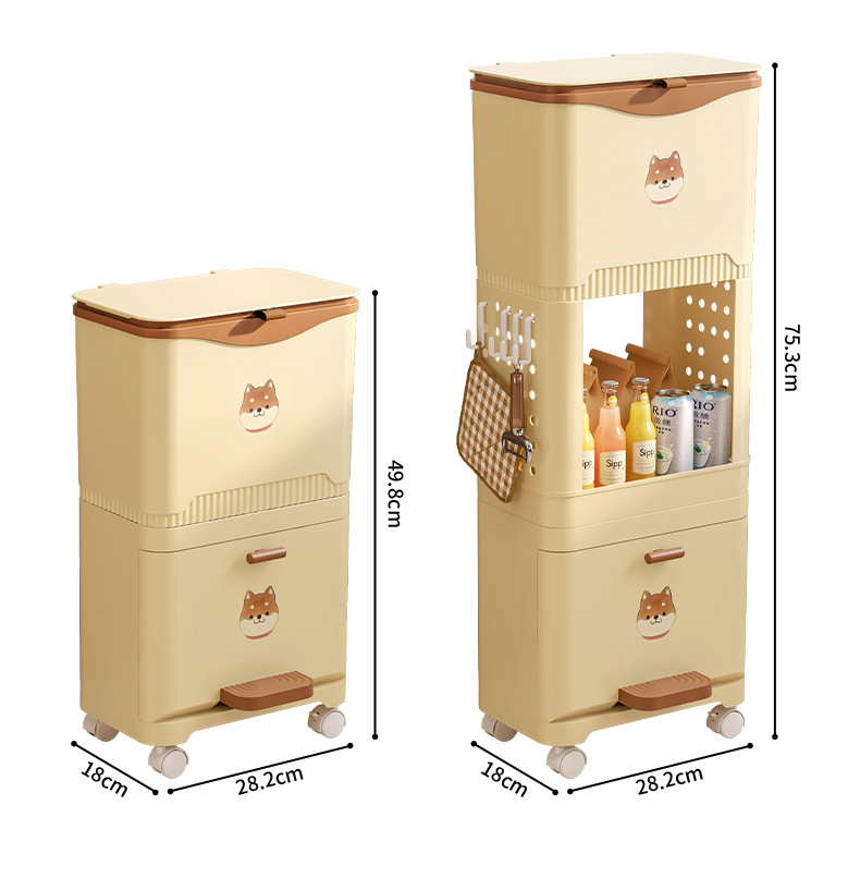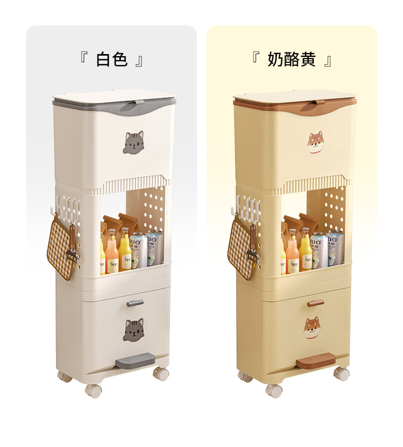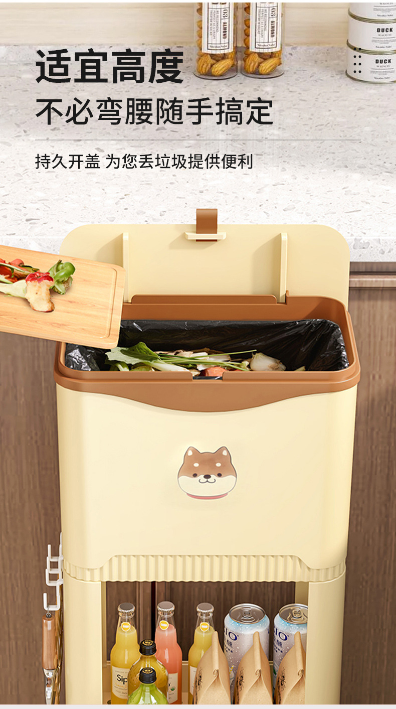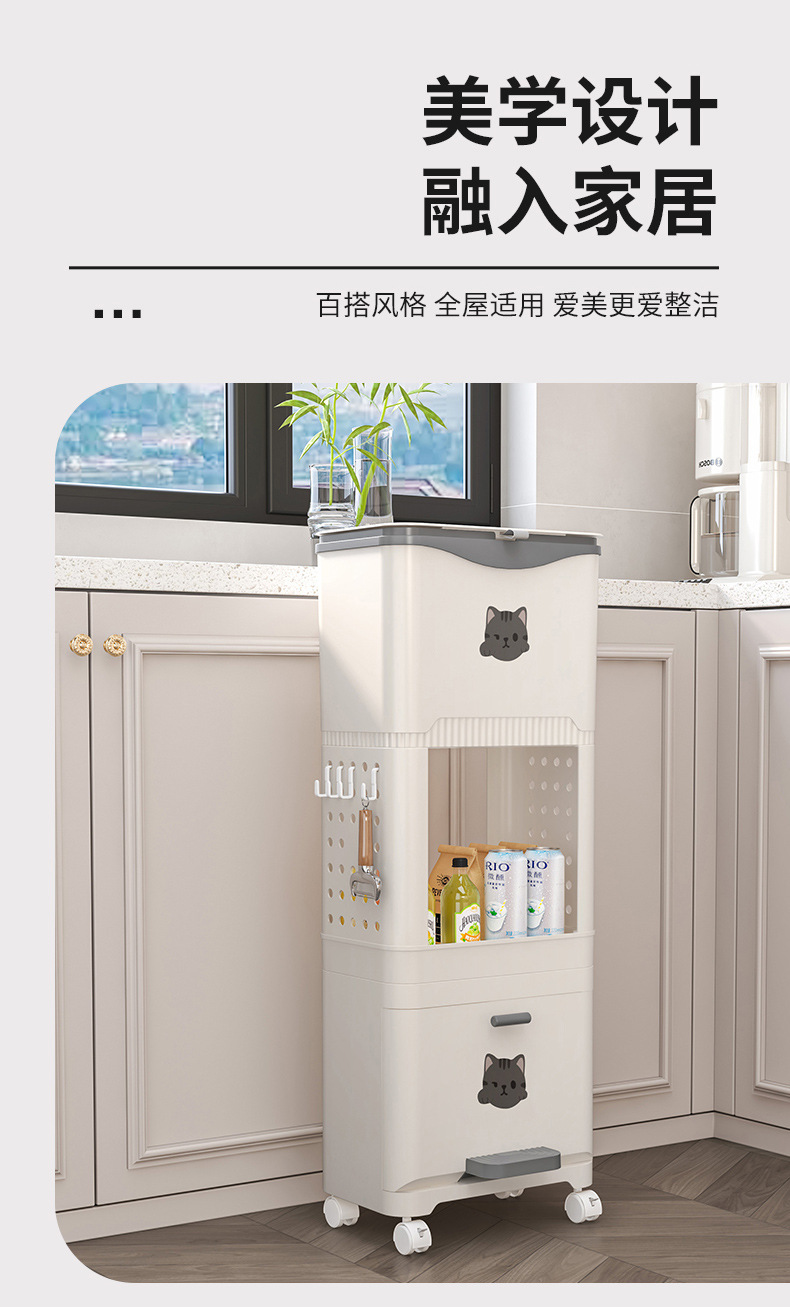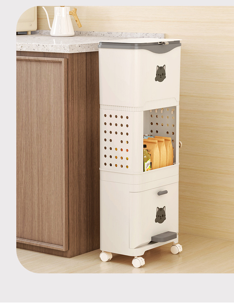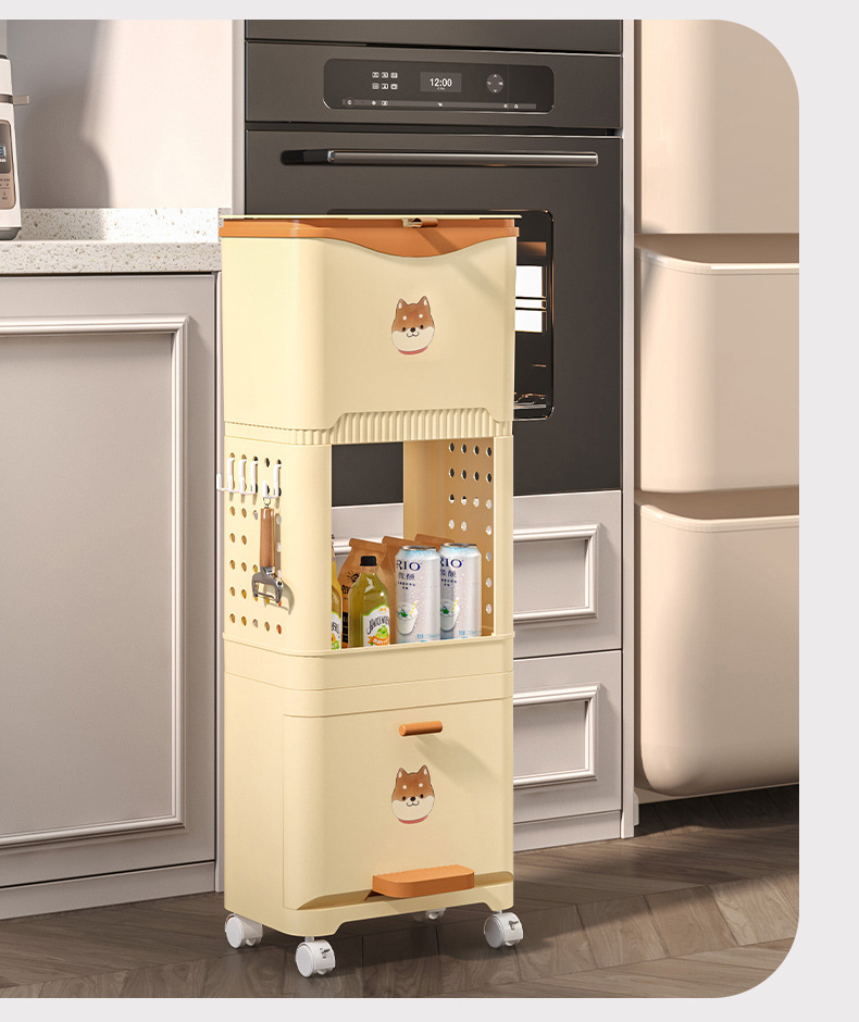 Cubo de basura de cocina sin doblar cubierta deslizante cubo de limpieza doméstico multicapa piso móvil estante de almacenamiento grande gabinete de almacenamiento