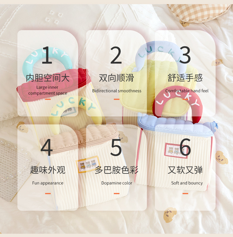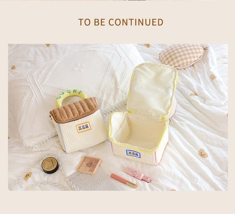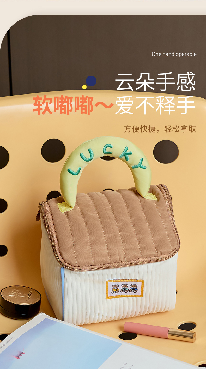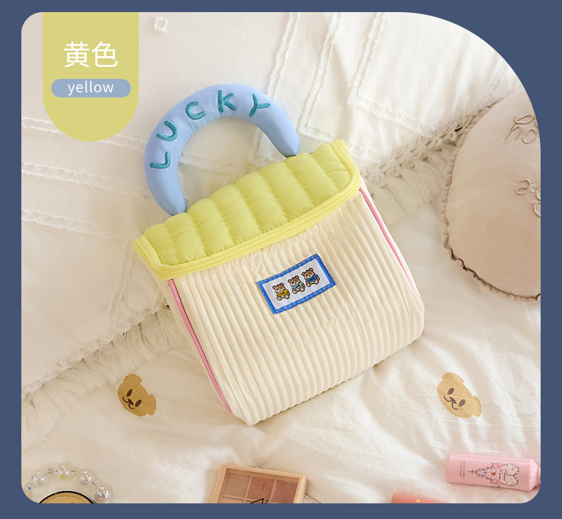 Color de dopamina encantador cartón de dibujos animados casa bolsa de maquillaje portátil bolsa de almacenamiento bolsa de casa portátil bolsa de lavado de gran capacidad