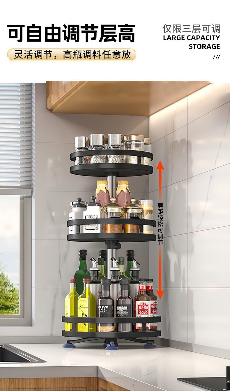 Estante de almacenamiento giratorio para condimentos de cocina Estante de almacenamiento giratorio de doble capa para condimentos domésticos