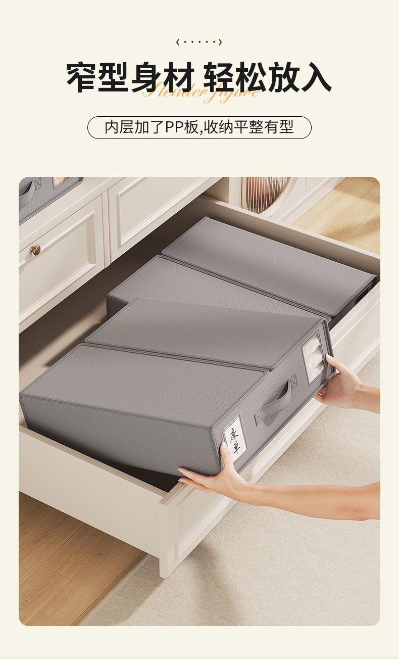 caja de almacenamiento de cuatro piezas de sábanas, caja de almacenamiento de ropa única, edredón, armario de dormitorio doméstico, acabado en capas