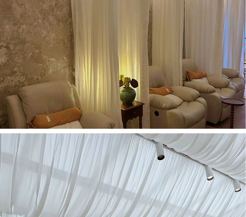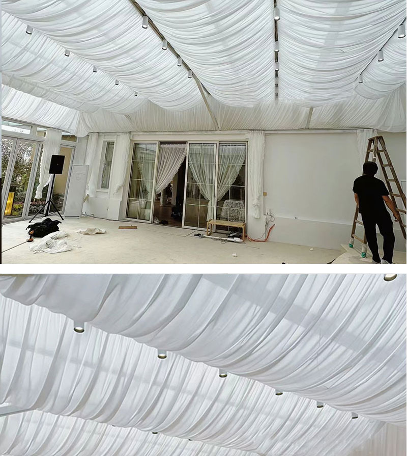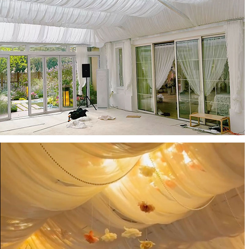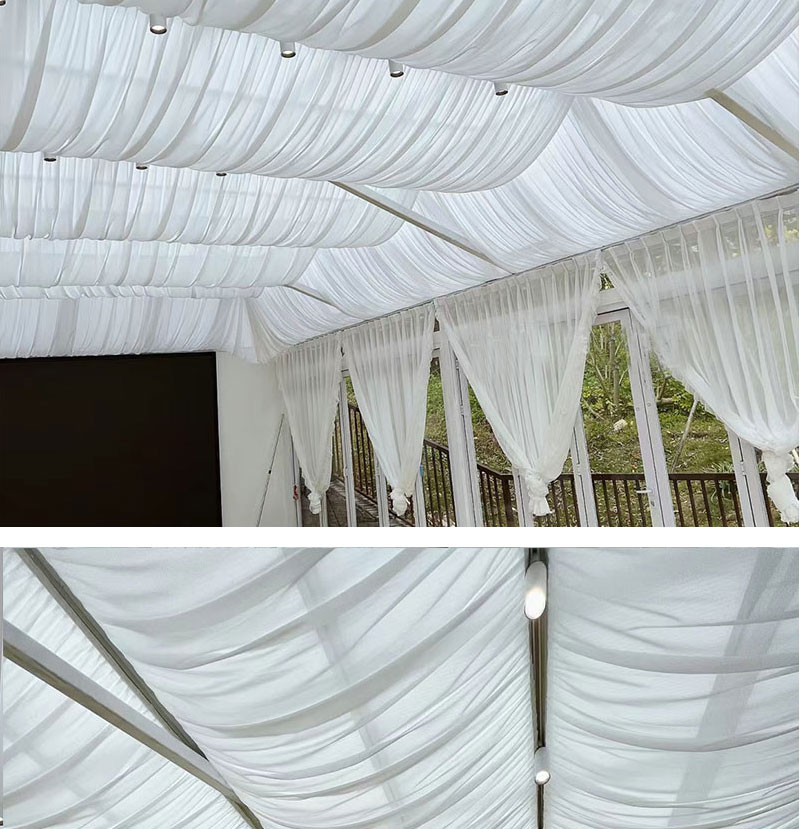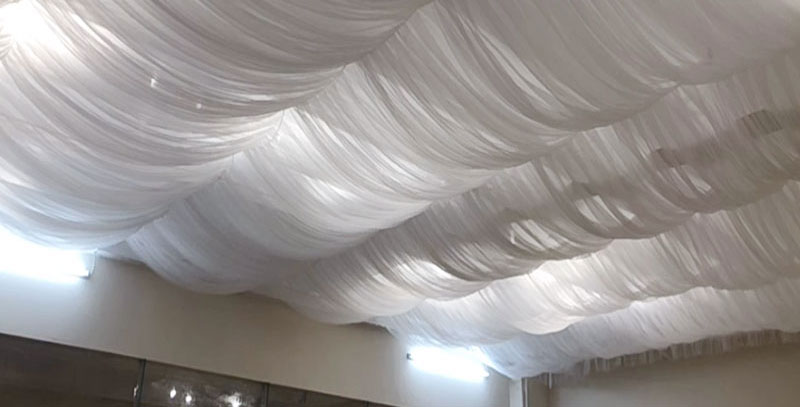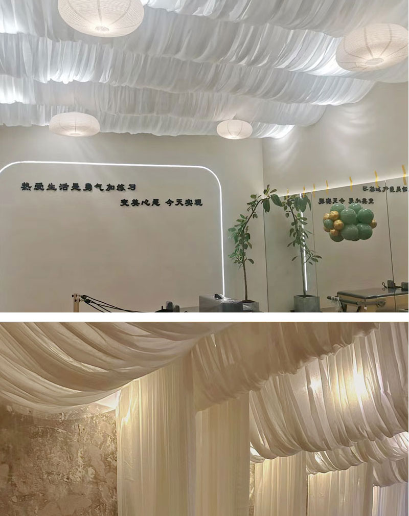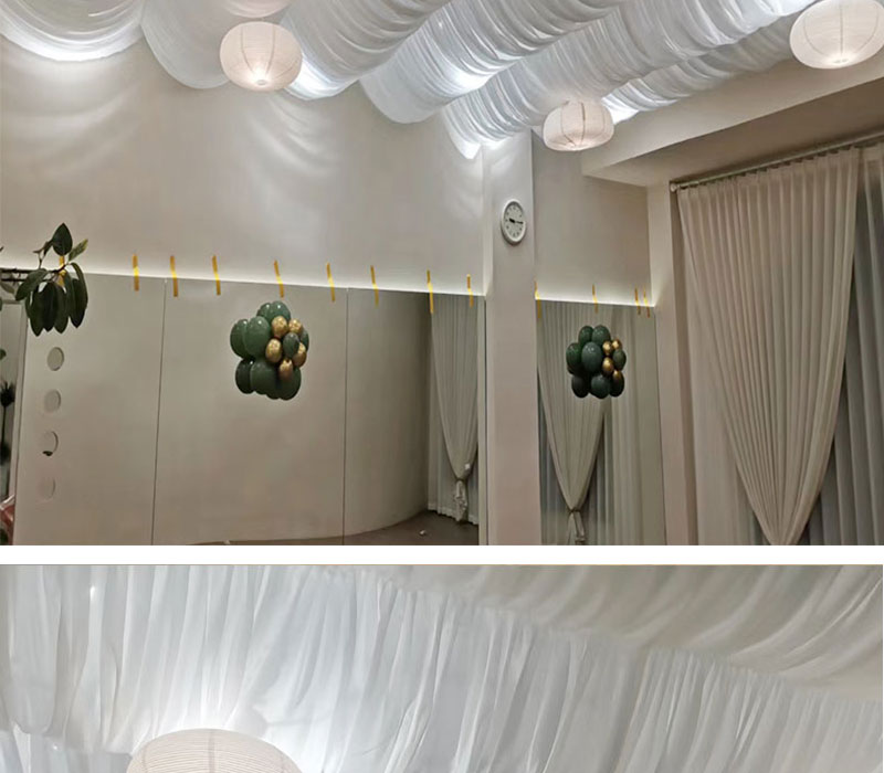 Decoración de boda decoración de techo ondulado cortina patio decoración de dormitorio polvo hotel superior