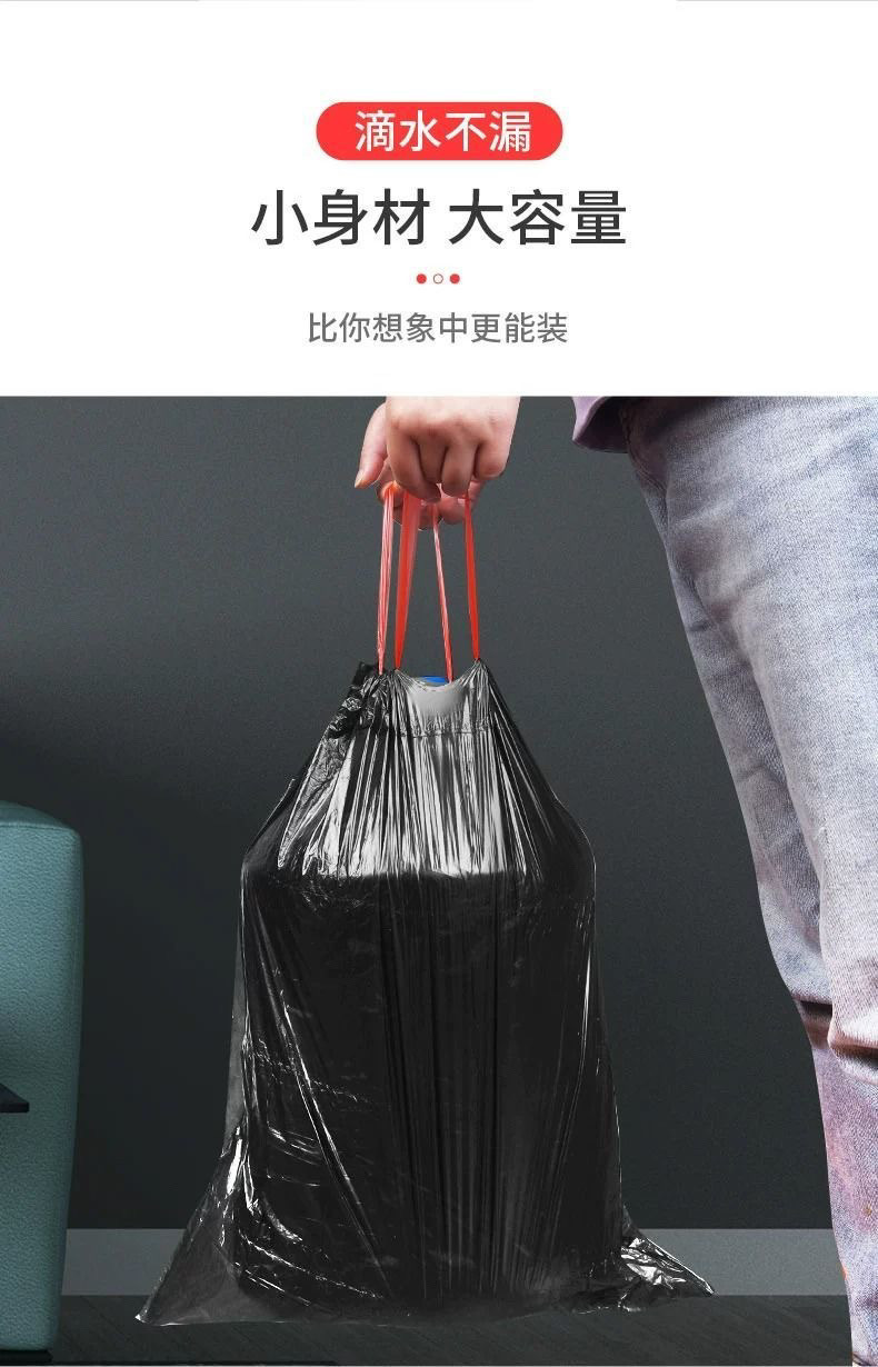 Bolsa de basura tipo cuerda extra gruesa para bolsas de plástico desechables portátiles de cocina doméstica y baño