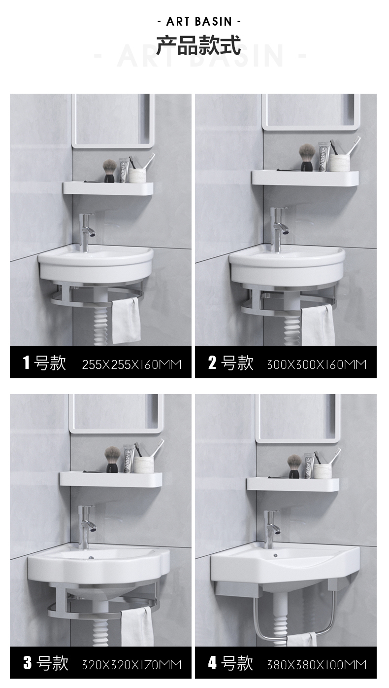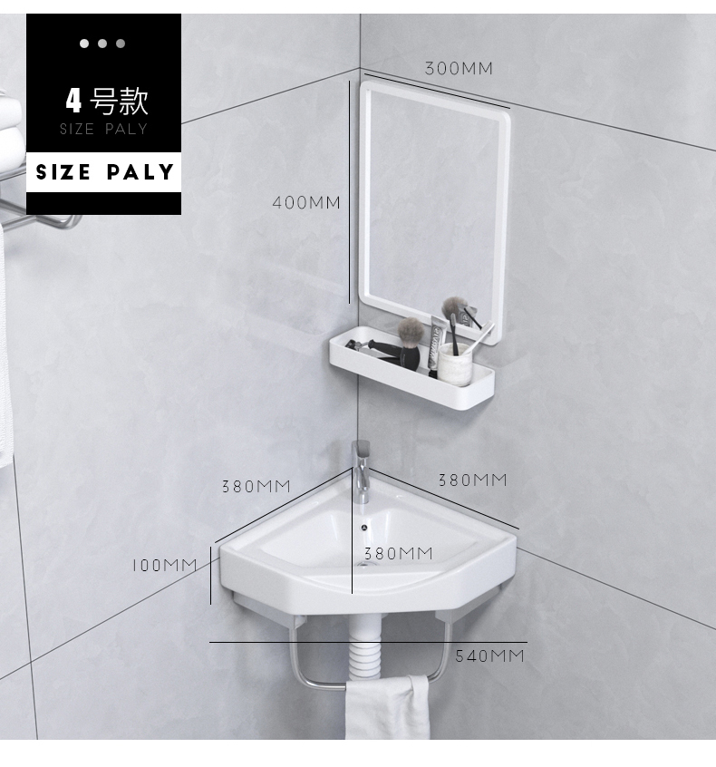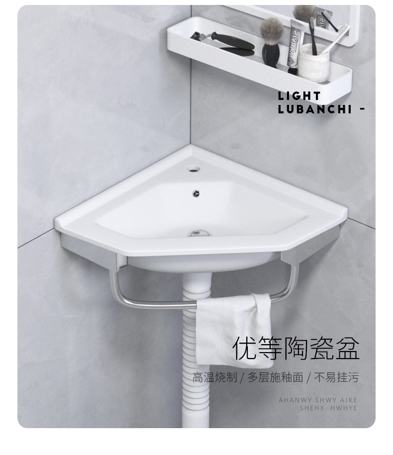 Mini lavabo triangular lavabo lavabo de esquina colgado en la pared lavabo balcón lavabo pequeño lavabo de cerámica simple