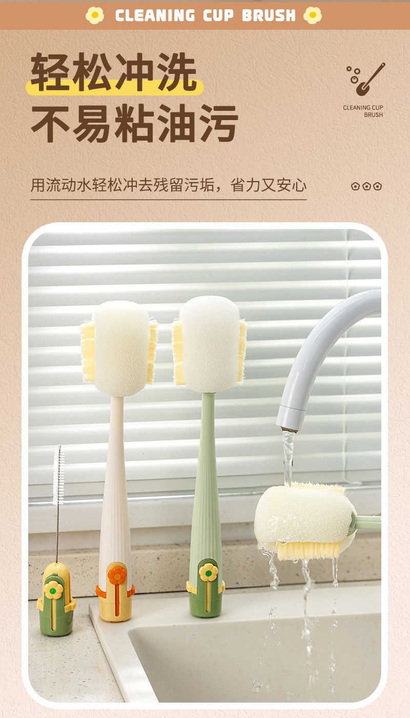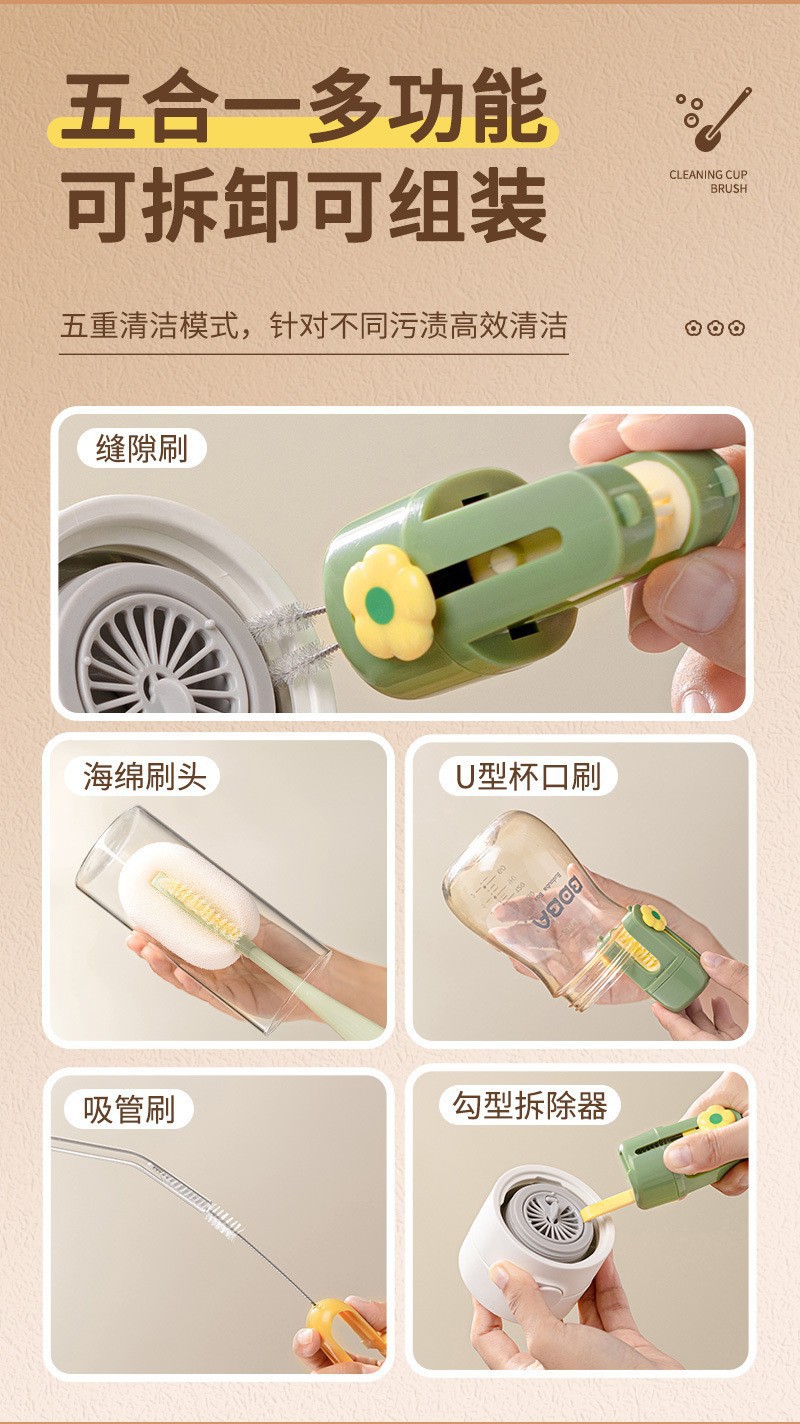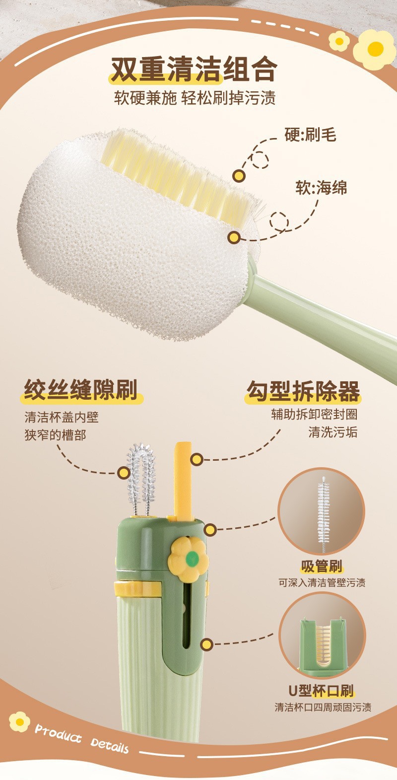 Taza de cepillo de agua taza de limpieza mango largo multifuncional 5 en 1 taza de aislamiento térmico tapa cepillo de botella de leche cepillo de esponja limpia