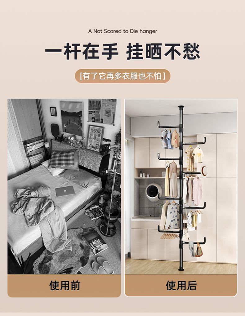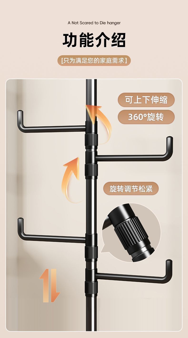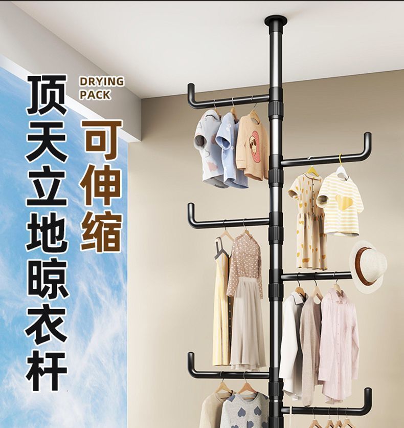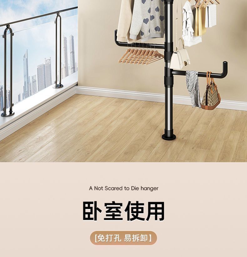 Interior sin perforación retráctil percha de ropa doméstica tipo piso multifuncional percha de ropa al por mayor