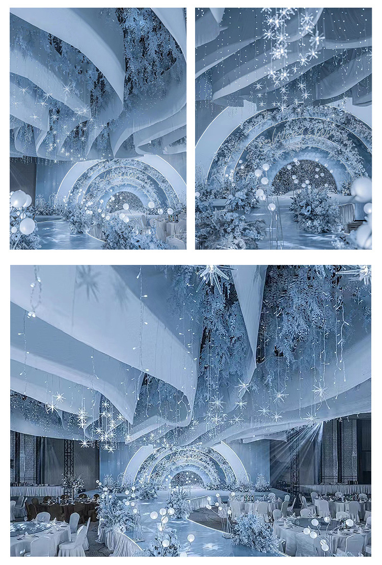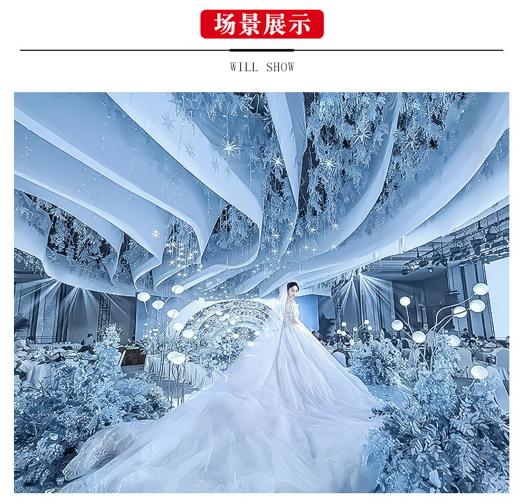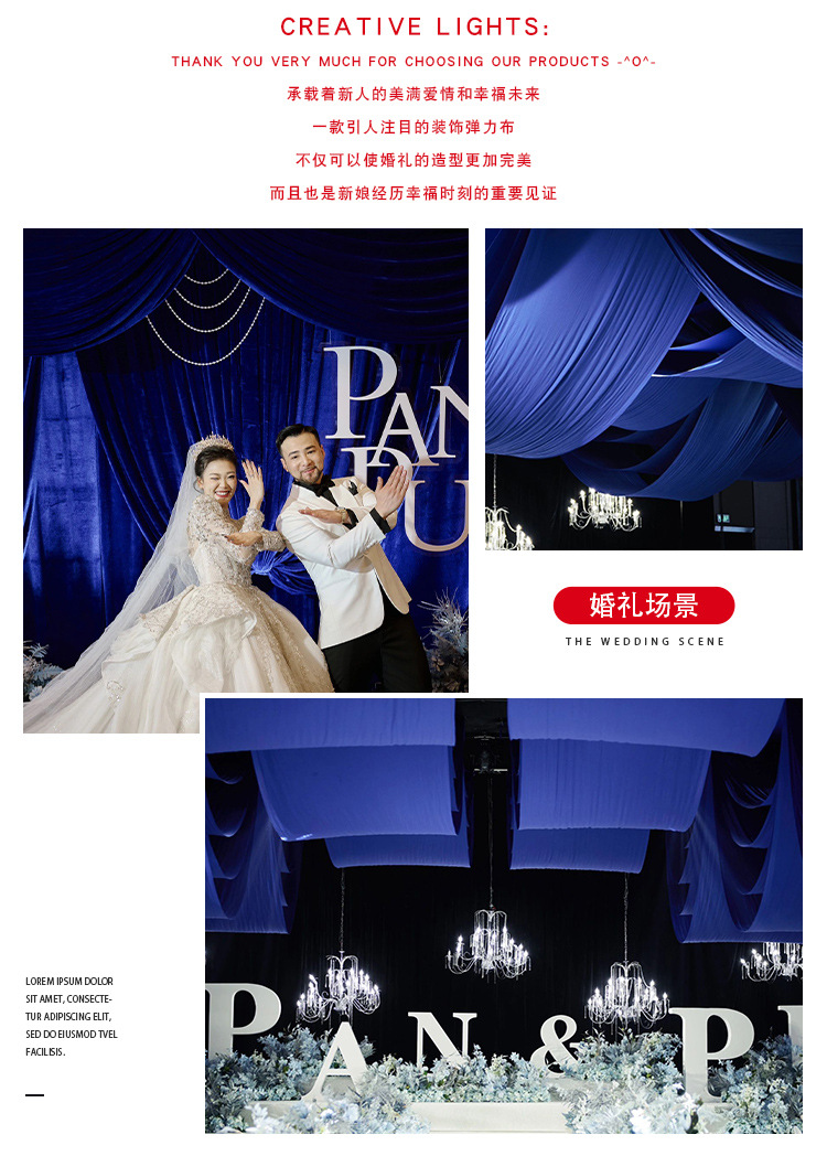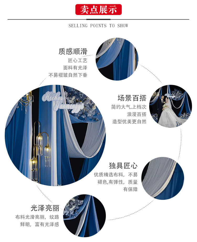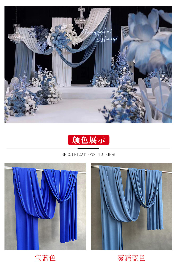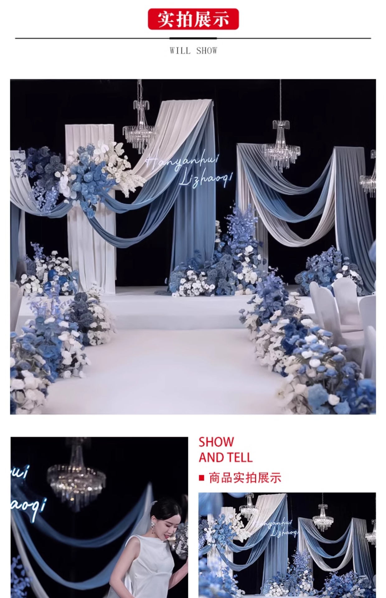 Techo de la boda cortina de seda de leche tela elástica decoración azul cortina de fondo de la sala de bodas coreana