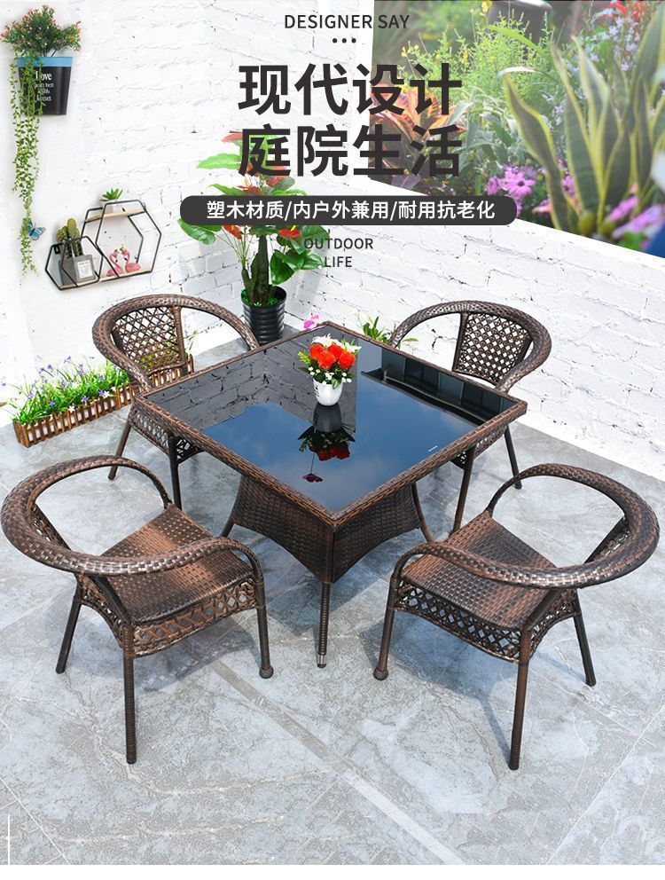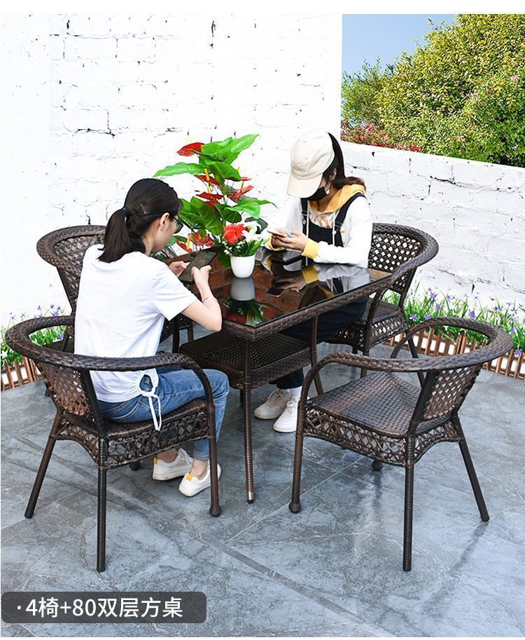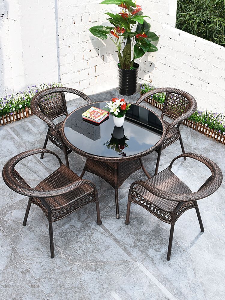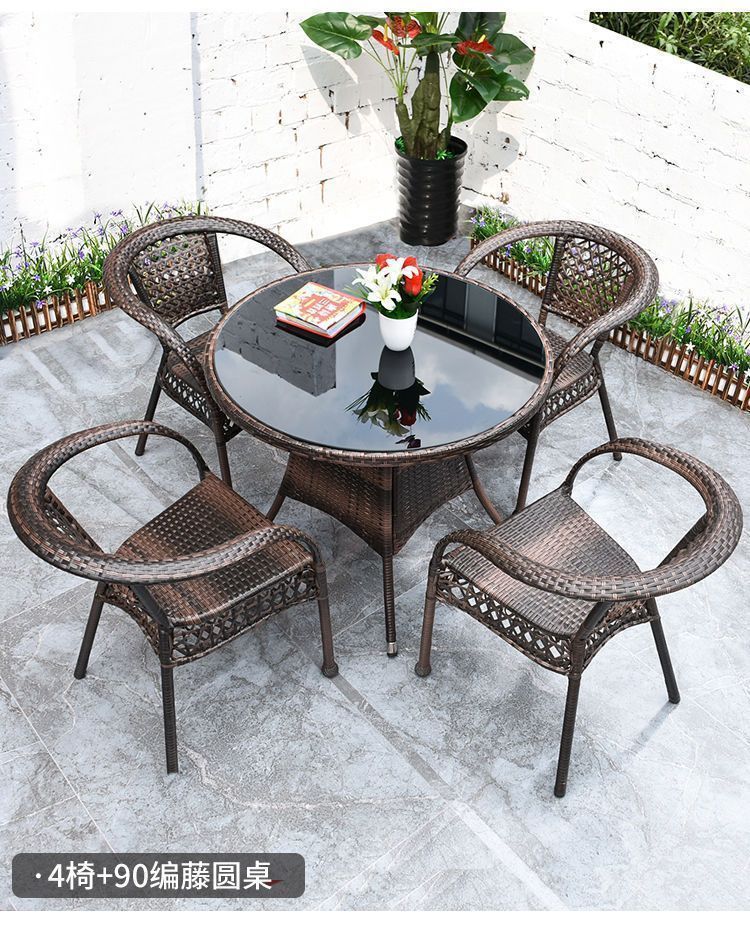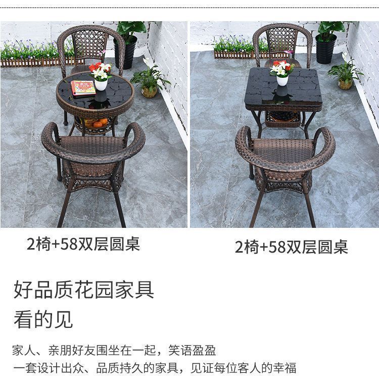 Mesa y silla de ocio de balcón al aire libre, patio, silla de caña, tres piezas, terraza al aire libre, silla de caña, silla de tejido de caña, mezcla de mesa de té
