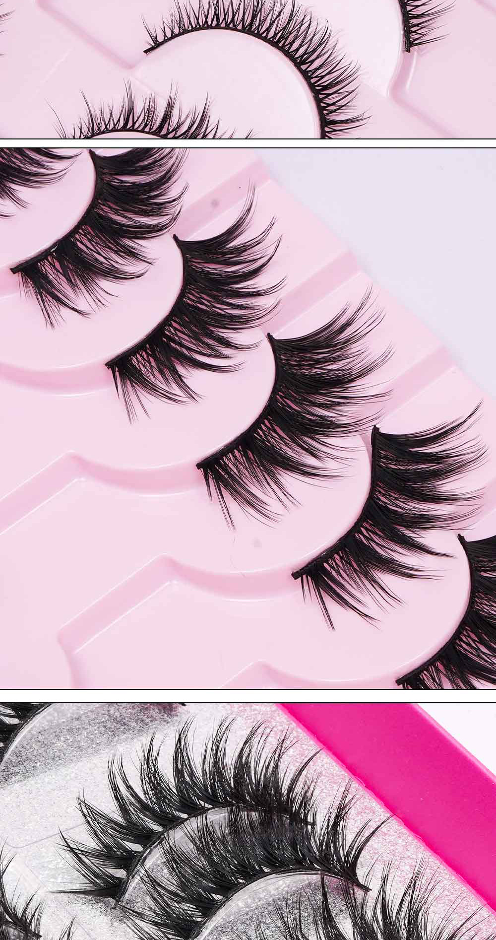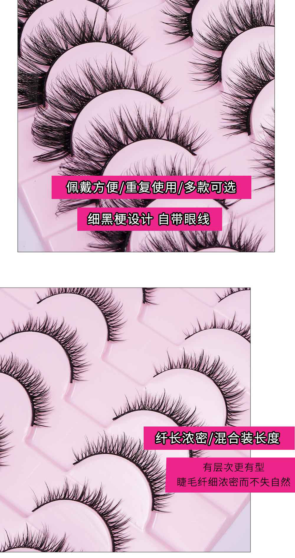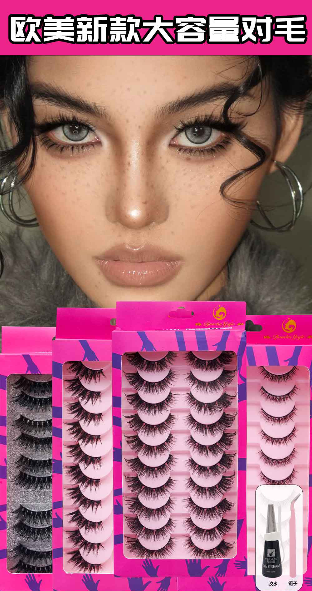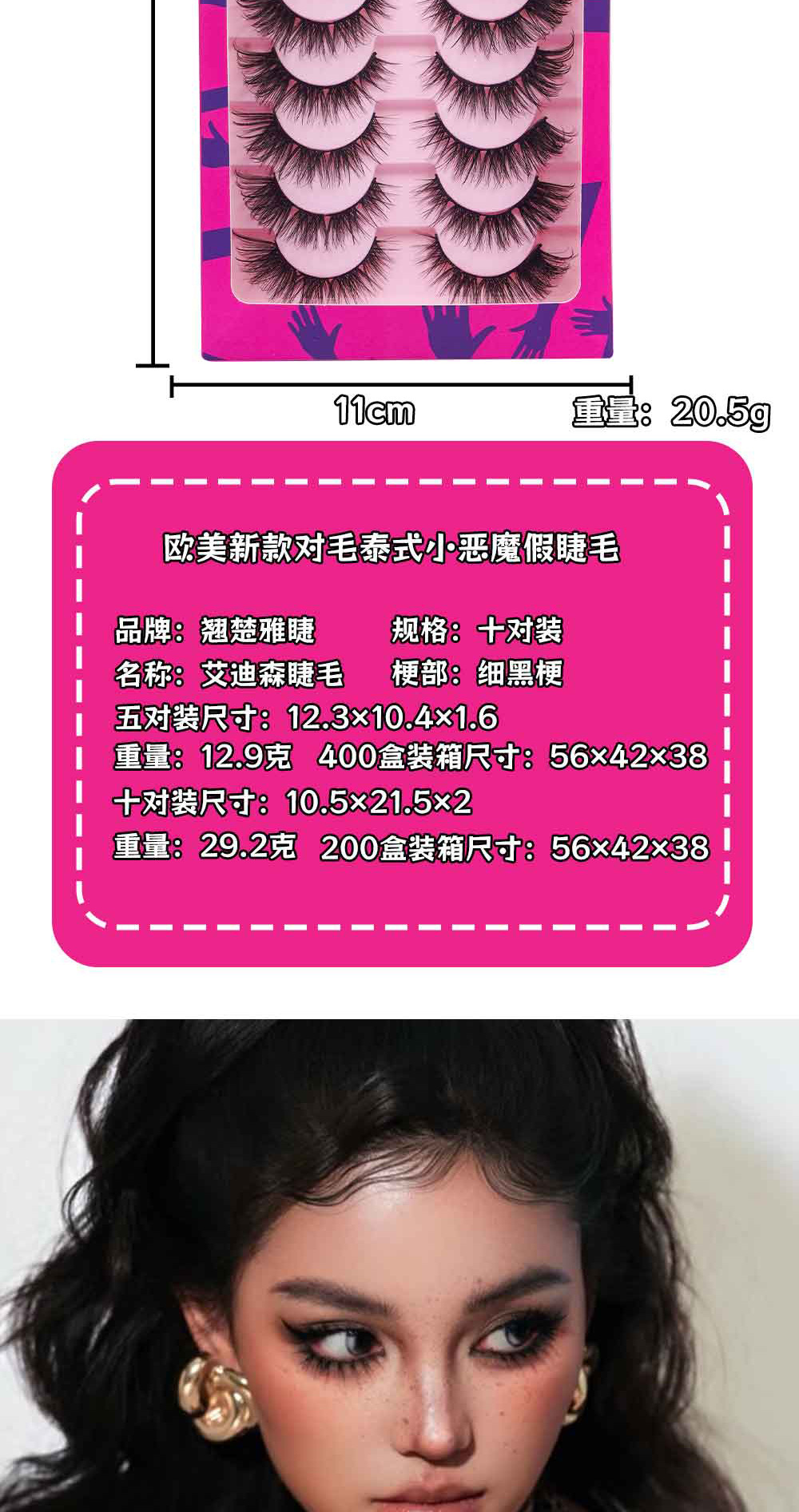 suministro transfronterizo diez pares de paquetes europeos, estadounidenses, tailandeses, pequeños demonios 3D, pestañas falsas, pestañas duras naturales, fabricantes de pestañas
