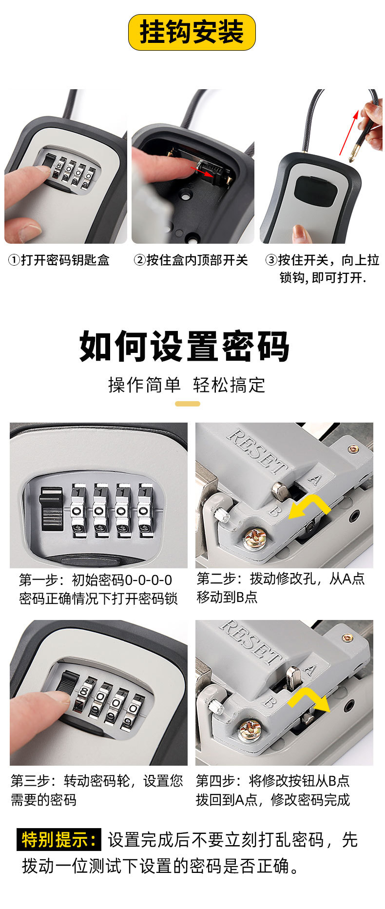 Caja de llaves de contraseña al aire libre Caja de llaves
