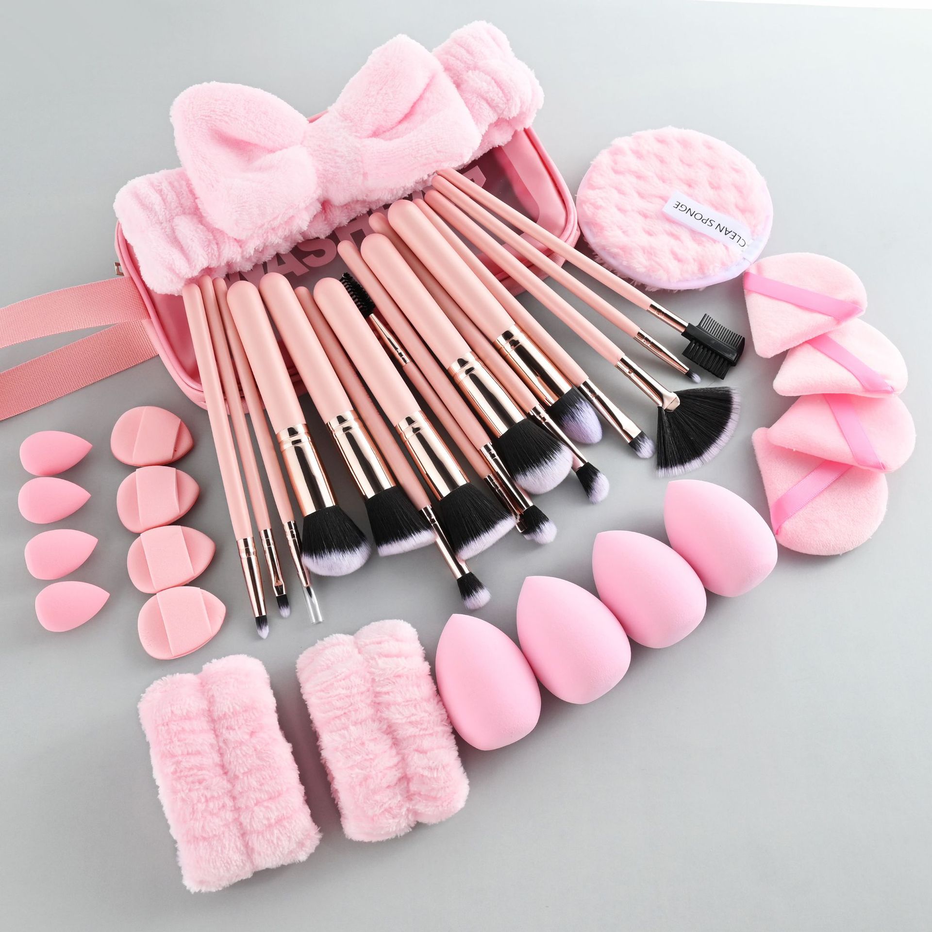 Amazon rosa 53 piezas de maquillaje lavado facial correa de cabello arco correa de cabello rosa esponja huevo cojín de aire