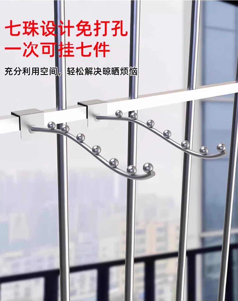 Gancho de ventana antirrobo, barandilla, tendedero, balcón, ventana exterior, percha, tendedero, artefacto de secado de ropa de acero inoxidable, estante para zapatos