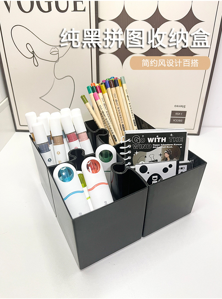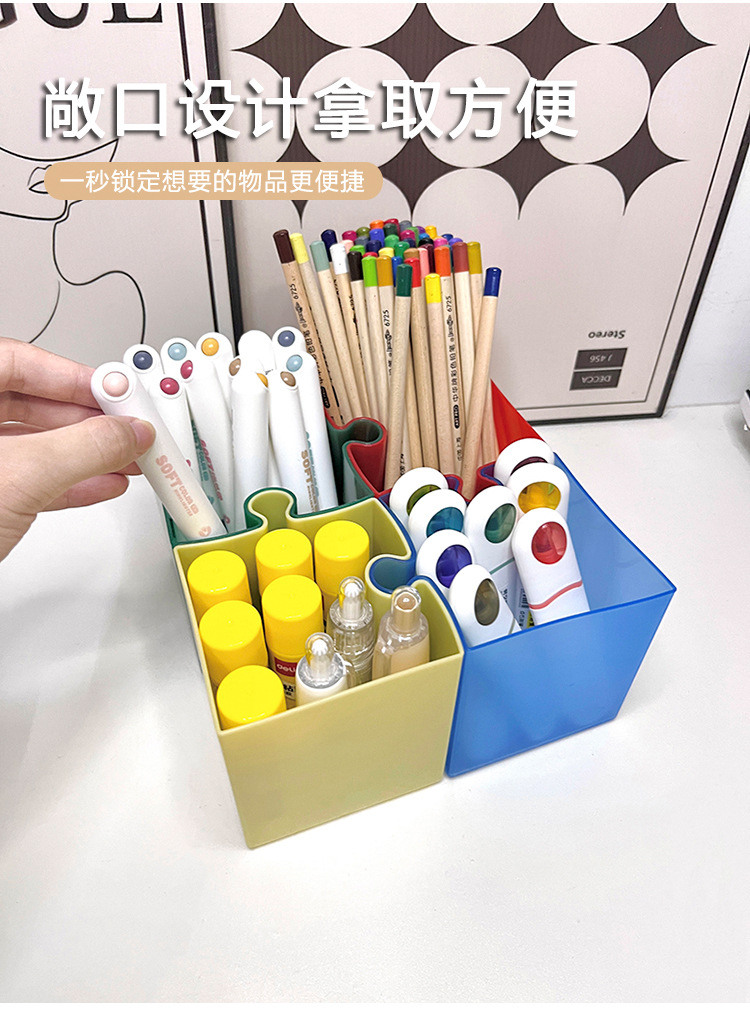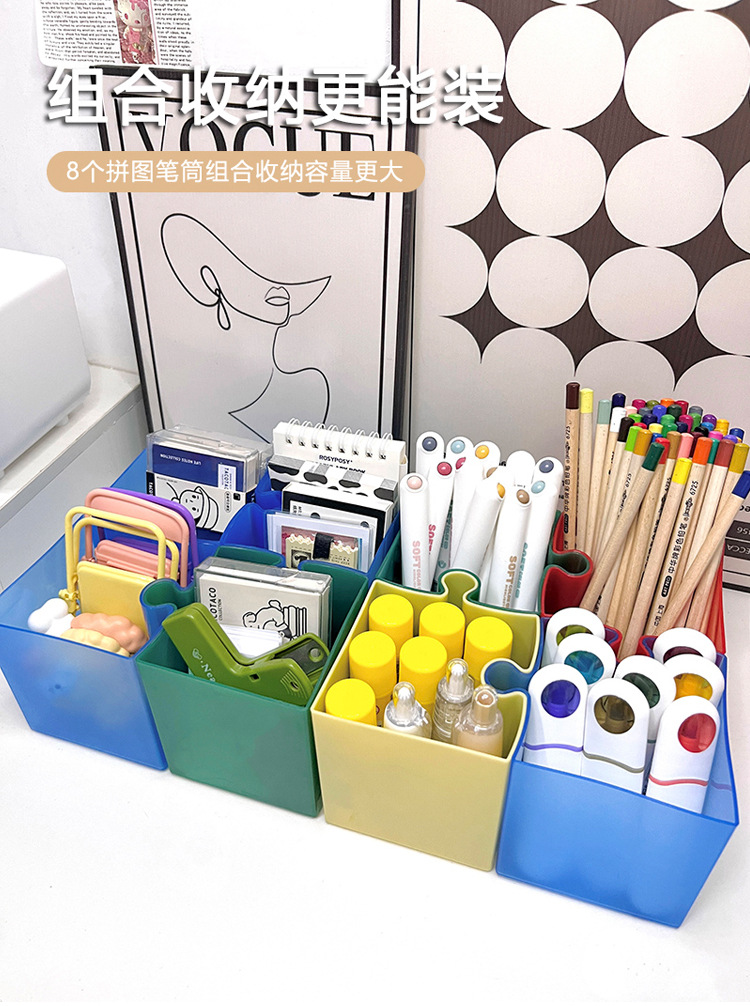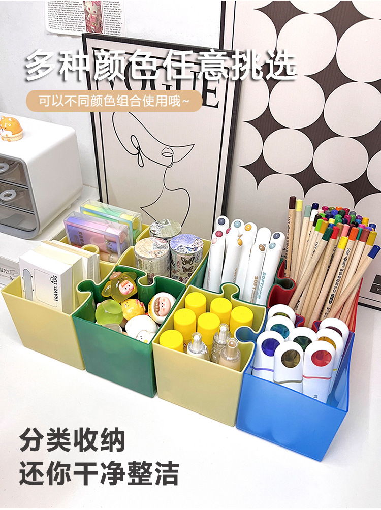 Caja de escritorio de rompecabezas creativo, caja de almacenamiento de papelería, jardín de infantes, escritorio de escritorio de oficina, soporte de lápiz simple avanzado