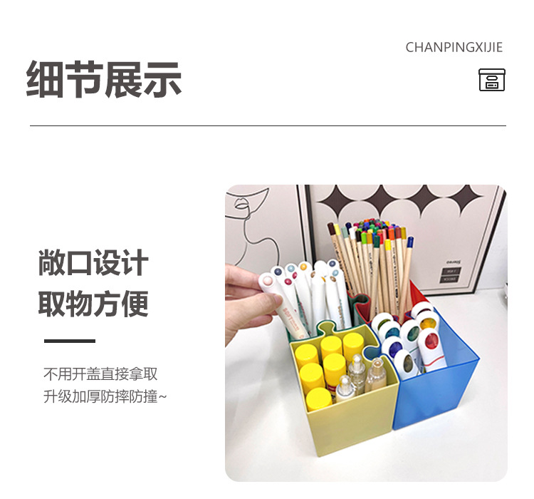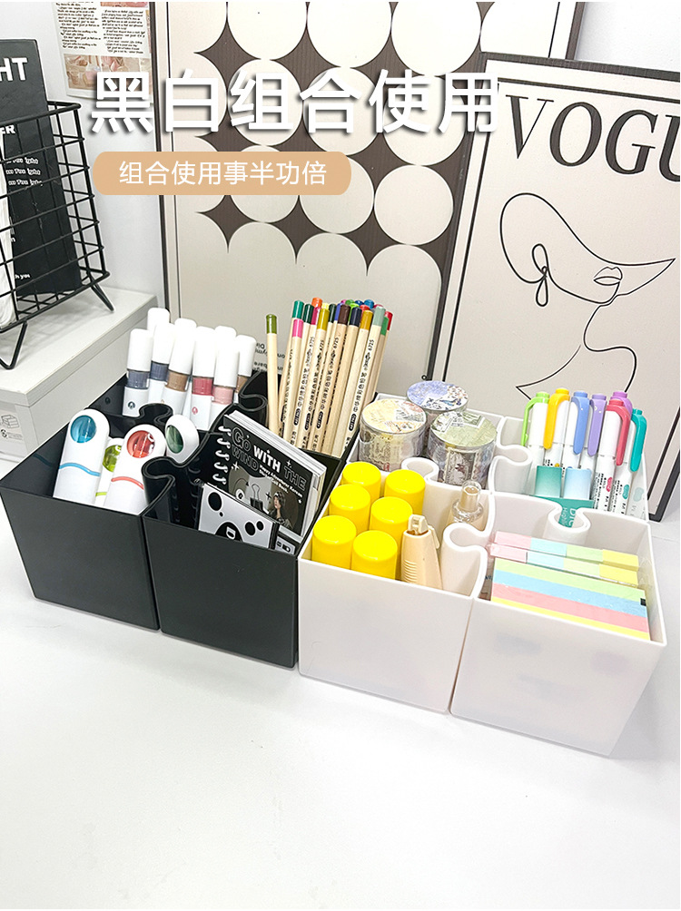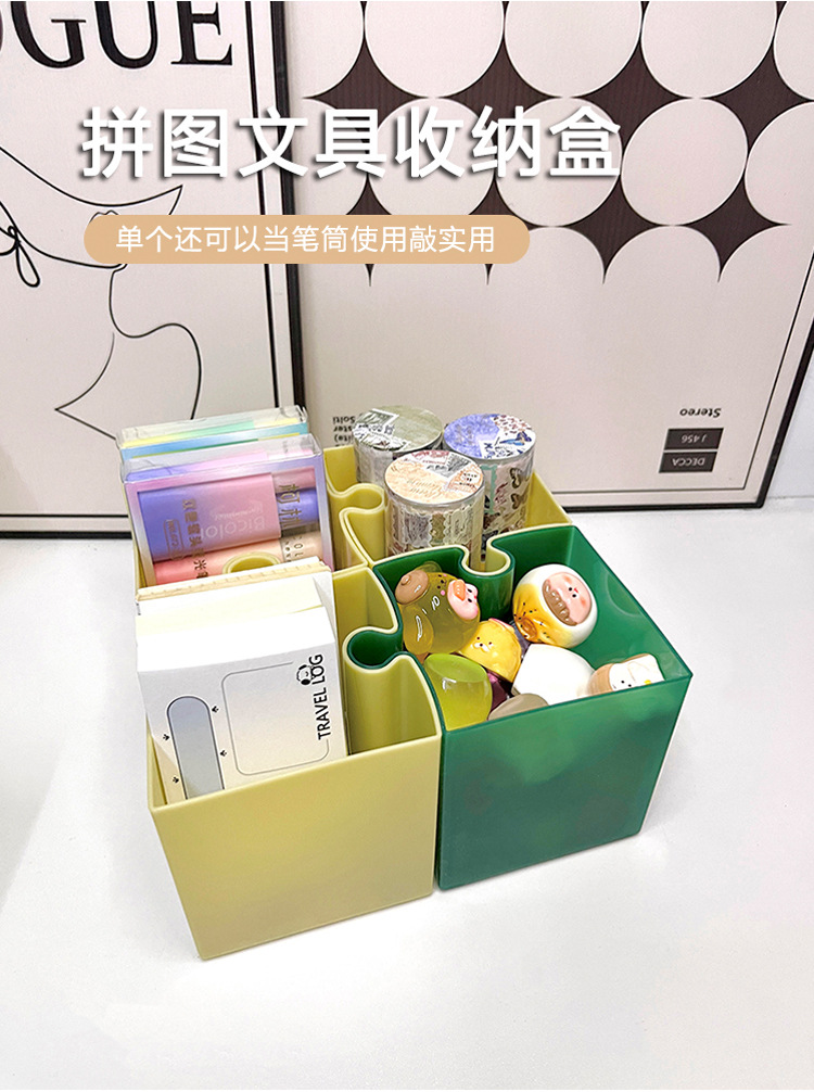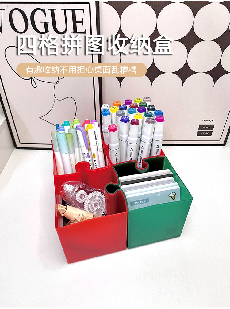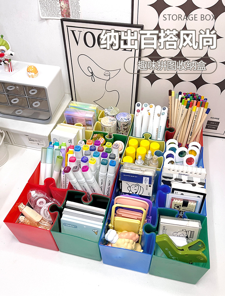 Caja de escritorio de rompecabezas creativo, caja de almacenamiento de papelería, jardín de infantes, escritorio de escritorio de oficina, soporte de lápiz simple avanzado