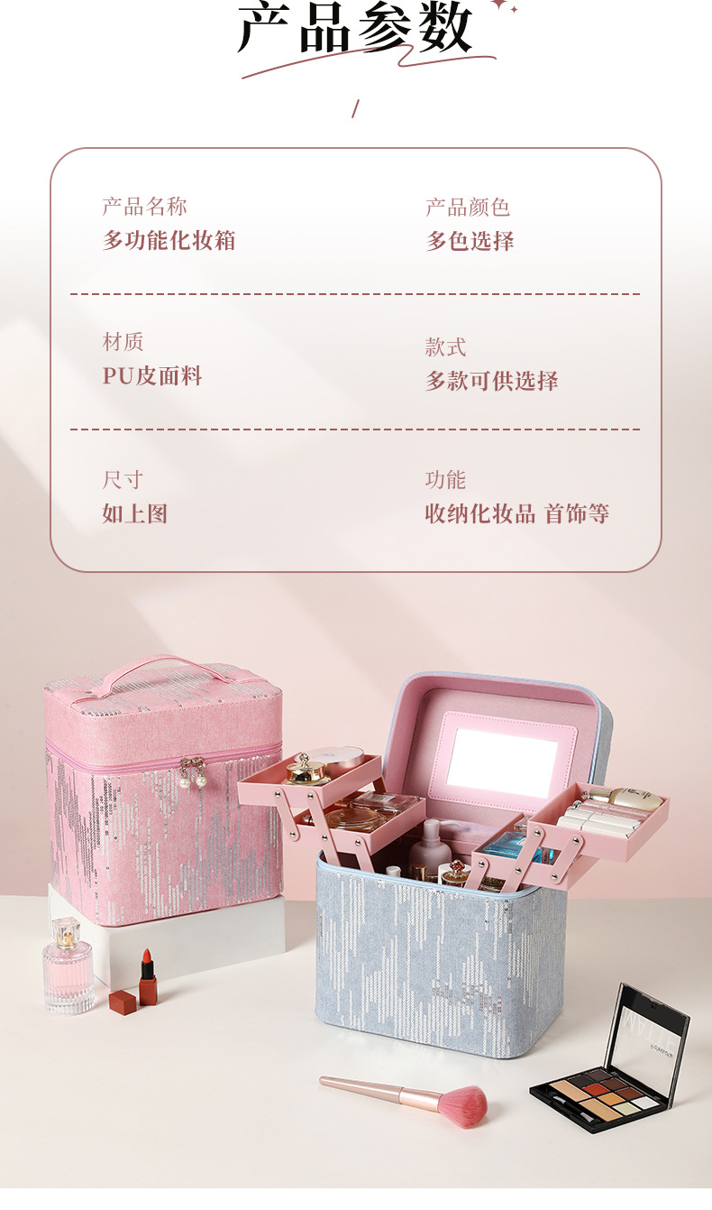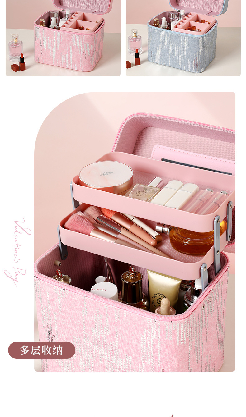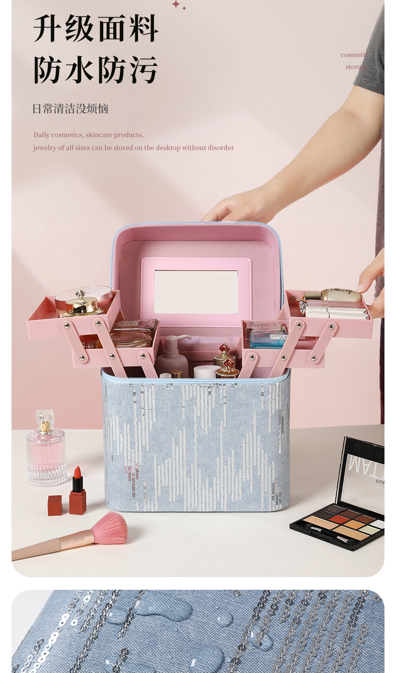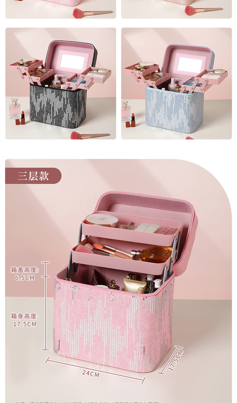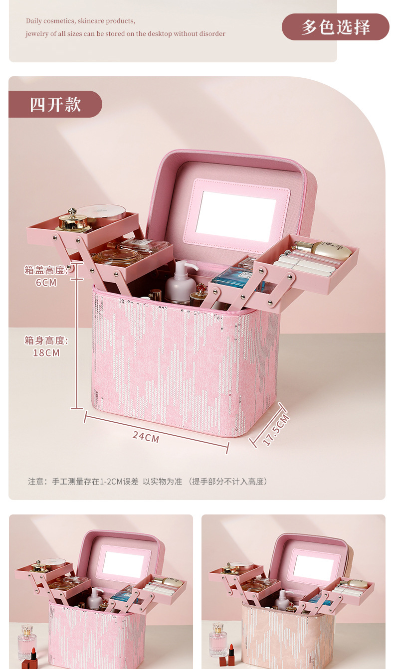 | Color | Tres capas de negro, tres capas de rosa, tres capas de azul, tres capas de polvo de cuero, cuatro capas de negro, cuatro capas de azul, cuatro capas de rosa, cuatro capas de polvo de cuero, negro del gabinete, azul del gabinete, rosa del gabinete, polvo de cuero del gabinete, negro del elevador, azul del elevador, rosa del elevador, rosa del elevador, color de envío aleatorio, bolsas de maquillaje cuadradas de color aleatorio, bolsas de maquillaje de impresión de color aleatorio, bolsas de maquillaje de impresión largas de color aleatorio, bandeja de almacenamiento |