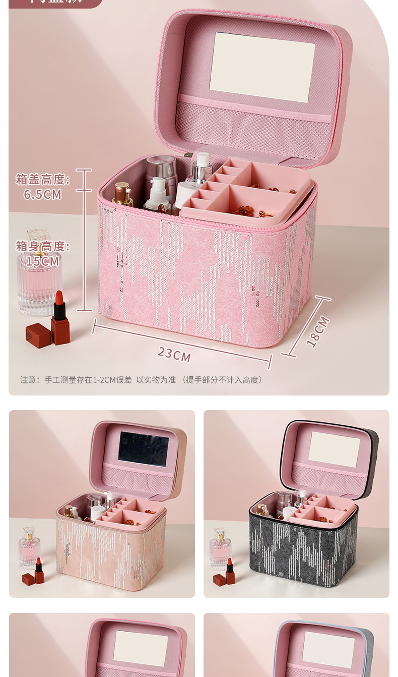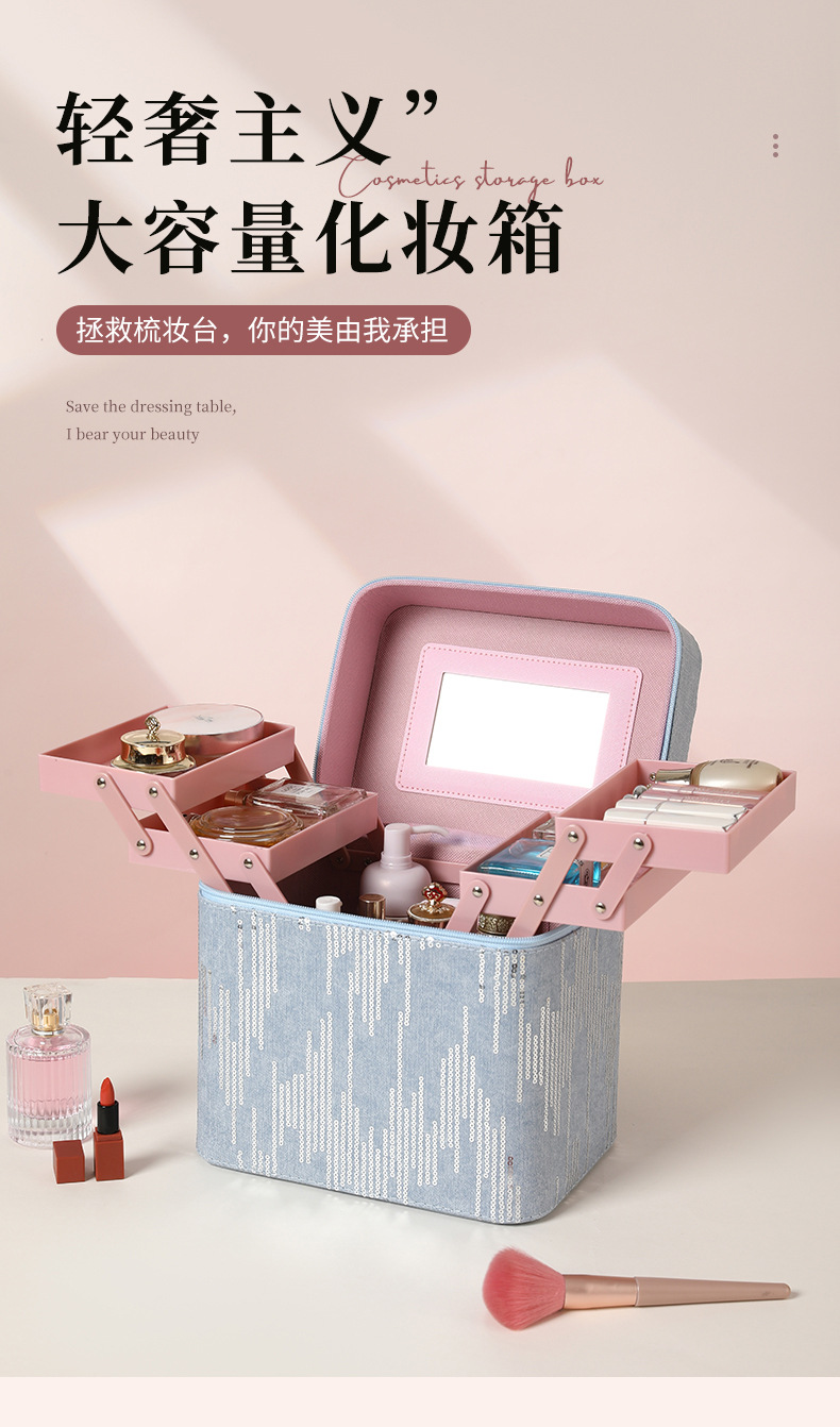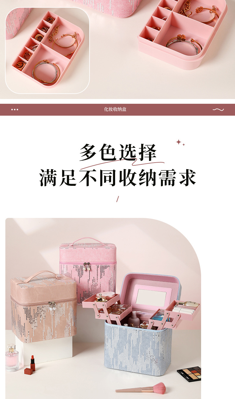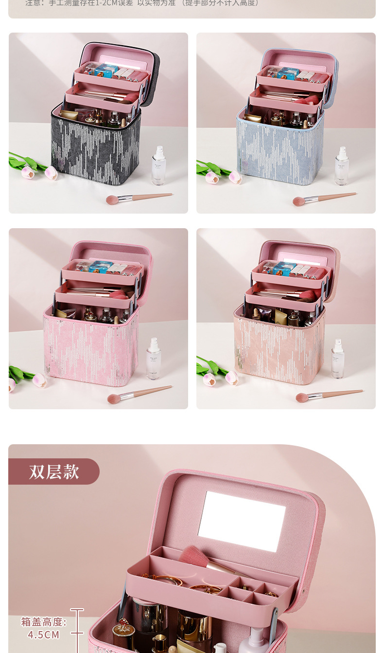 | Color | Tres capas de negro, tres capas de rosa, tres capas de azul, tres capas de polvo de cuero, cuatro capas de negro, cuatro capas de azul, cuatro capas de rosa, cuatro capas de polvo de cuero, negro del gabinete, azul del gabinete, rosa del gabinete, polvo de cuero del gabinete, negro del elevador, azul del elevador, rosa del elevador, rosa del elevador, color de envío aleatorio, bolsas de maquillaje cuadradas de color aleatorio, bolsas de maquillaje de impresión de color aleatorio, bolsas de maquillaje de impresión largas de color aleatorio, bandeja de almacenamiento |