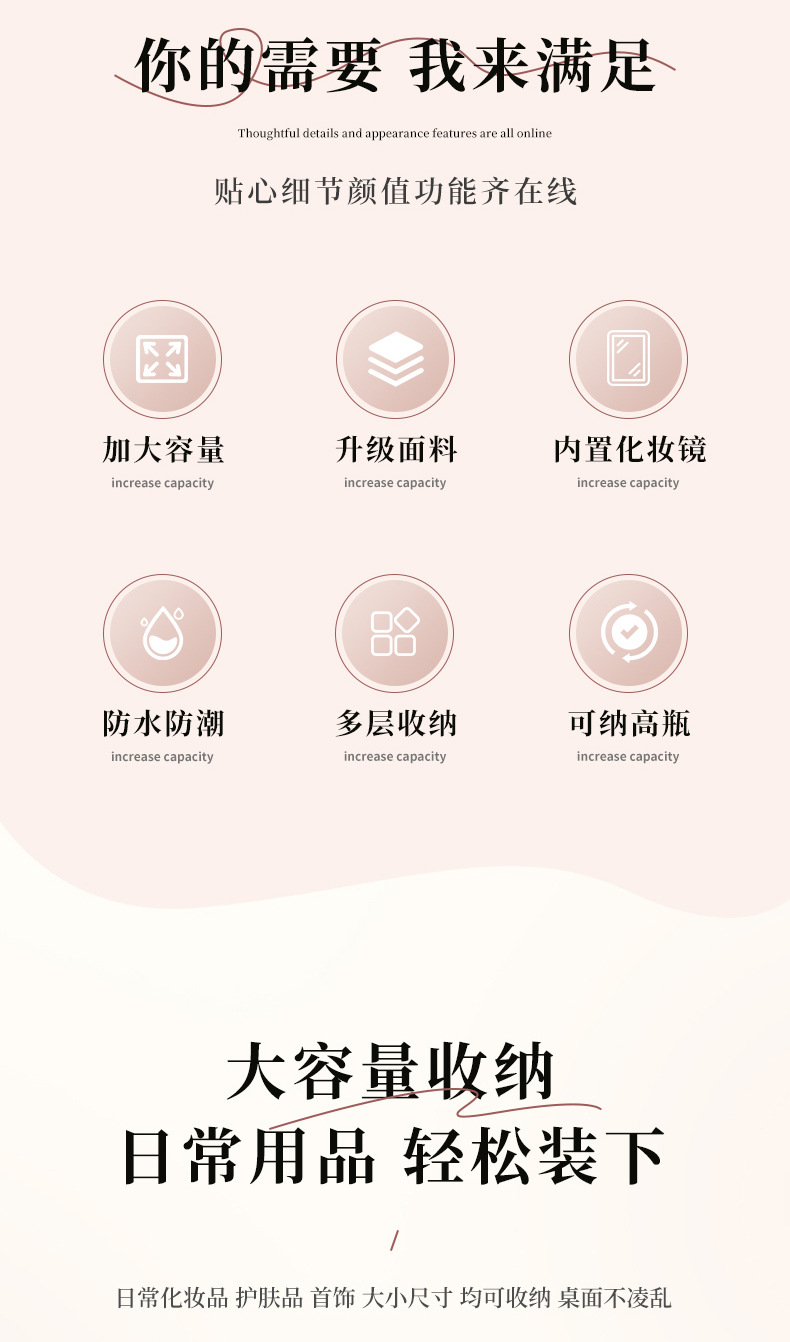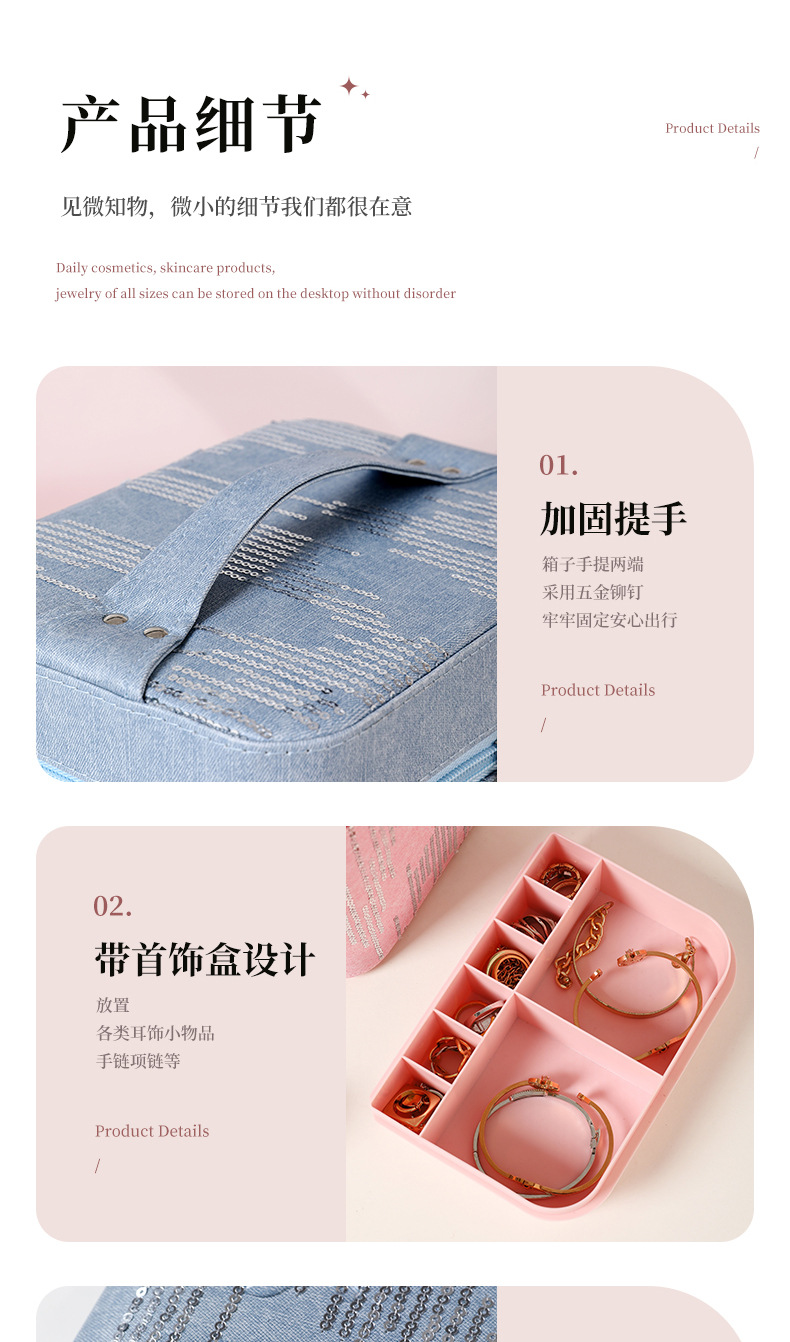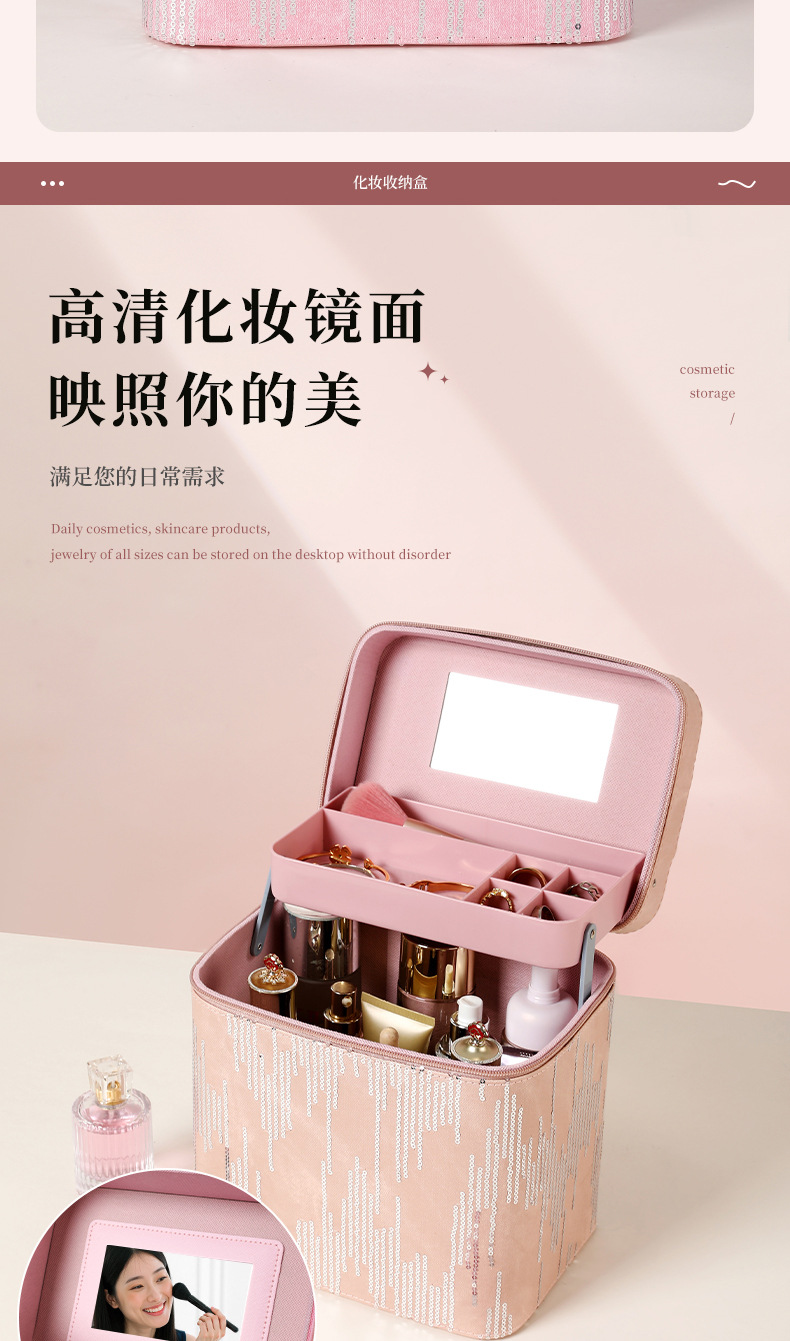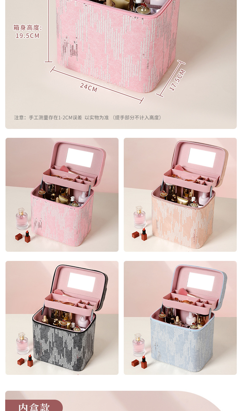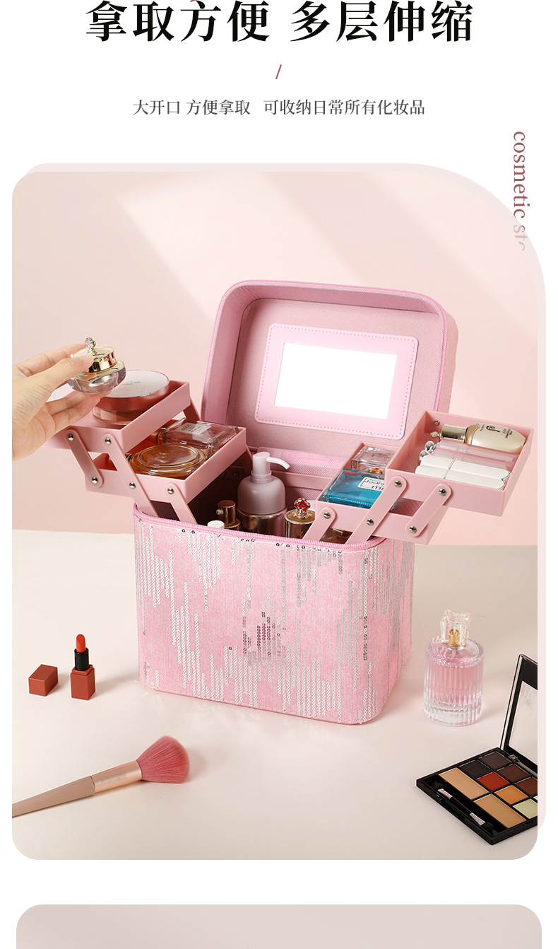 | Color | Tres capas de negro, tres capas de rosa, tres capas de azul, tres capas de polvo de cuero, cuatro capas de negro, cuatro capas de azul, cuatro capas de rosa, cuatro capas de polvo de cuero, negro del gabinete, azul del gabinete, rosa del gabinete, polvo de cuero del gabinete, negro del elevador, azul del elevador, rosa del elevador, rosa del elevador, color de envío aleatorio, bolsas de maquillaje cuadradas de color aleatorio, bolsas de maquillaje de impresión de color aleatorio, bolsas de maquillaje de impresión largas de color aleatorio, bandeja de almacenamiento |