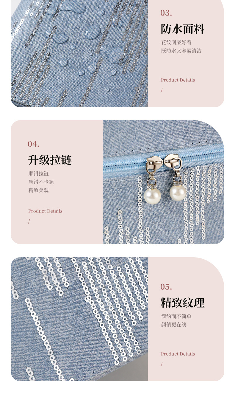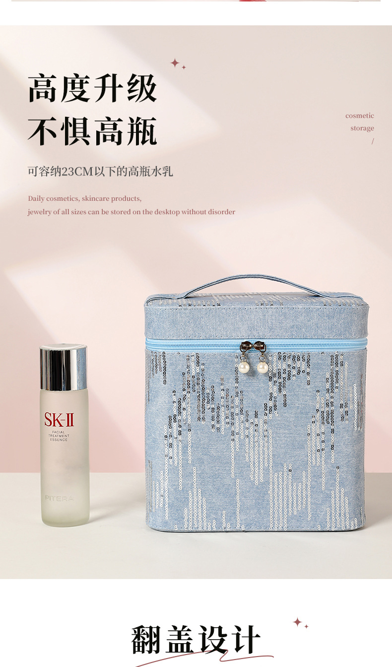 Bolsa de maquillaje coreana con patrón de vaqueros de gran capacidad para cajas de maquillaje femeninas de doble capa de gran estilo simple