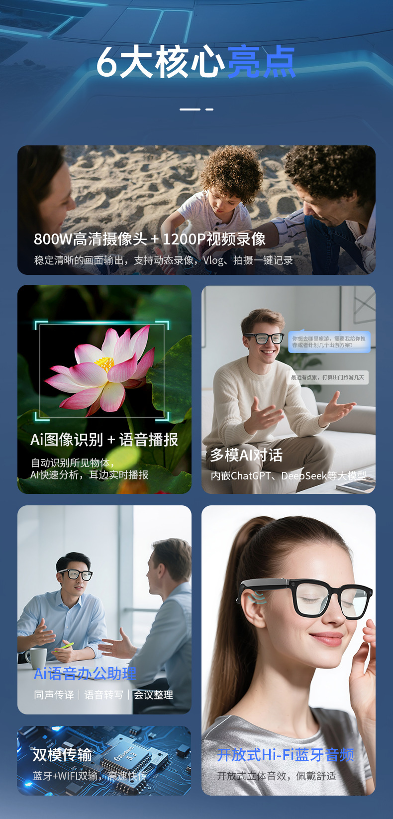 Ingresos inteligentes de traducción de IA, traducción simultánea de 2k HD, cámara de 8 megapíxeles, fotografía, transmisión en vivo, música y video