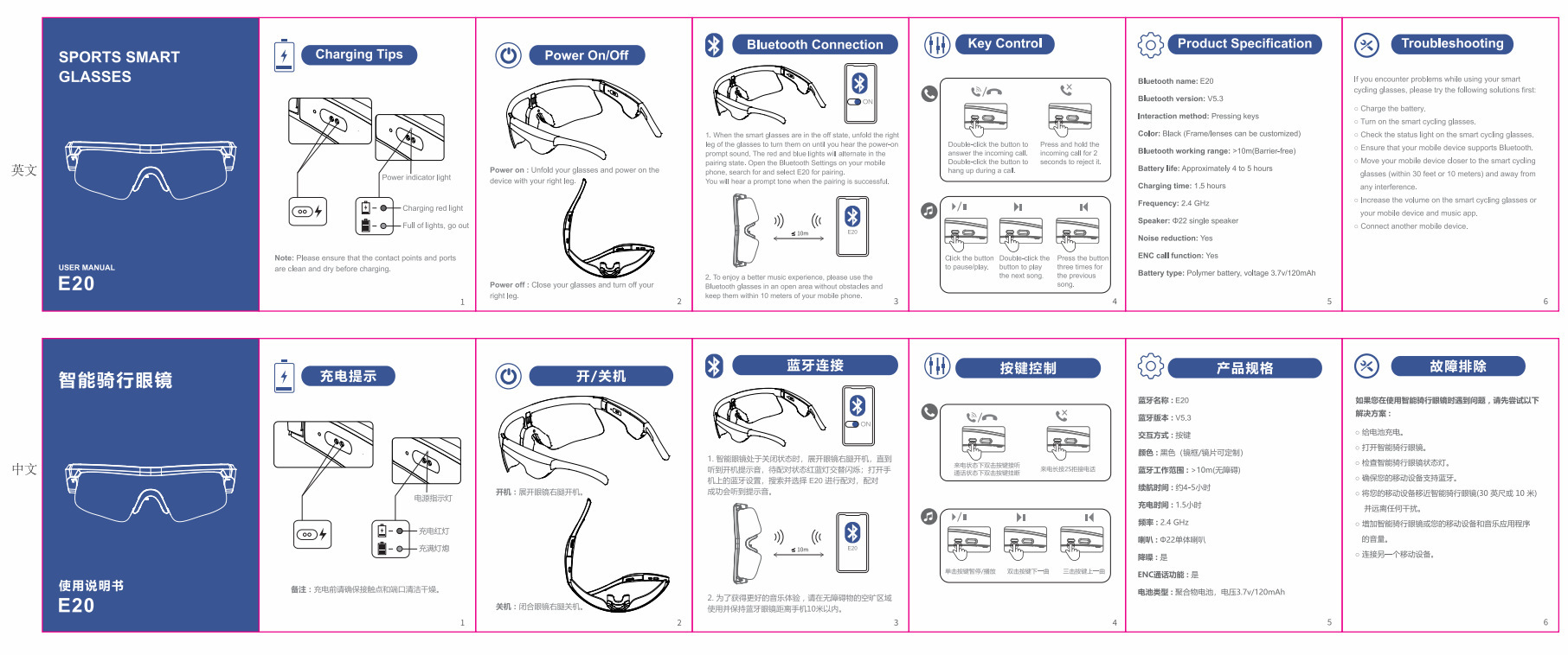 Transfronterizos ai traducción deportiva montar gafas Bluetooth E20 Bluetooth llamadas musica lenguaje de navegación gafas Bluetooth