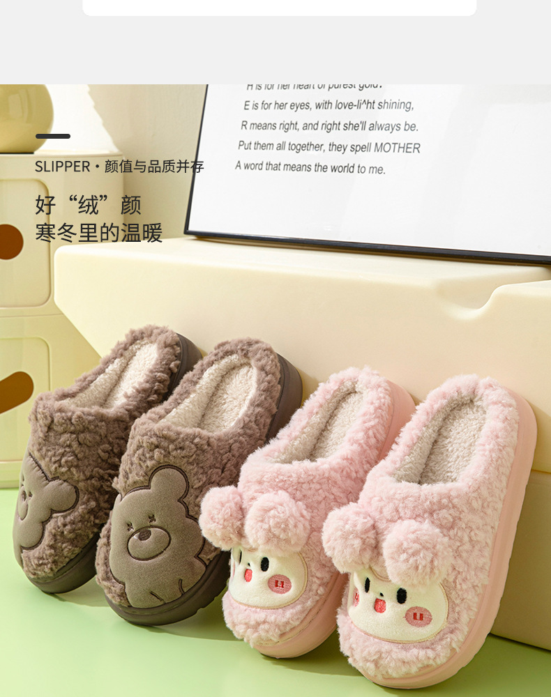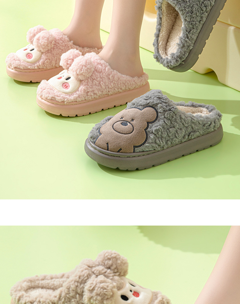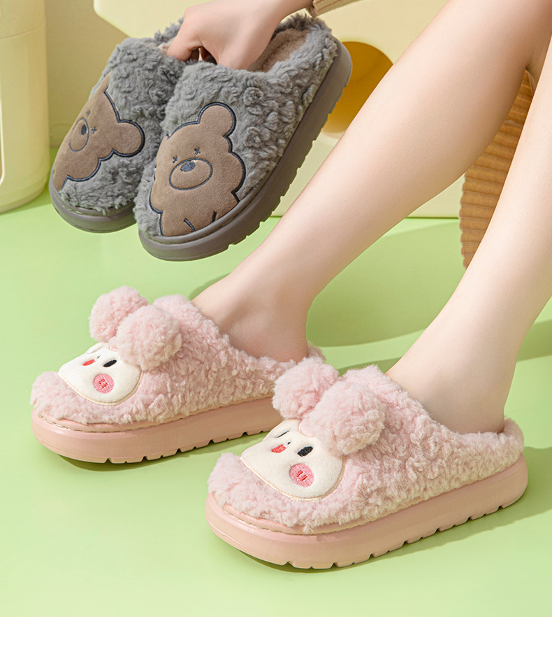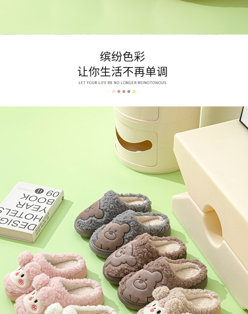 Adultos de dibujos animados zapatillas de algodón interior mujer conejo bola peluche lindos cómodos y cálidos impresión oso pareja zapatillas hombre