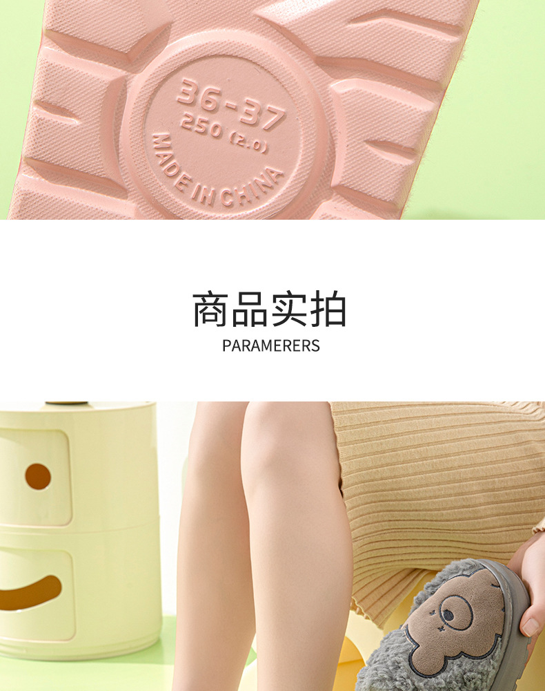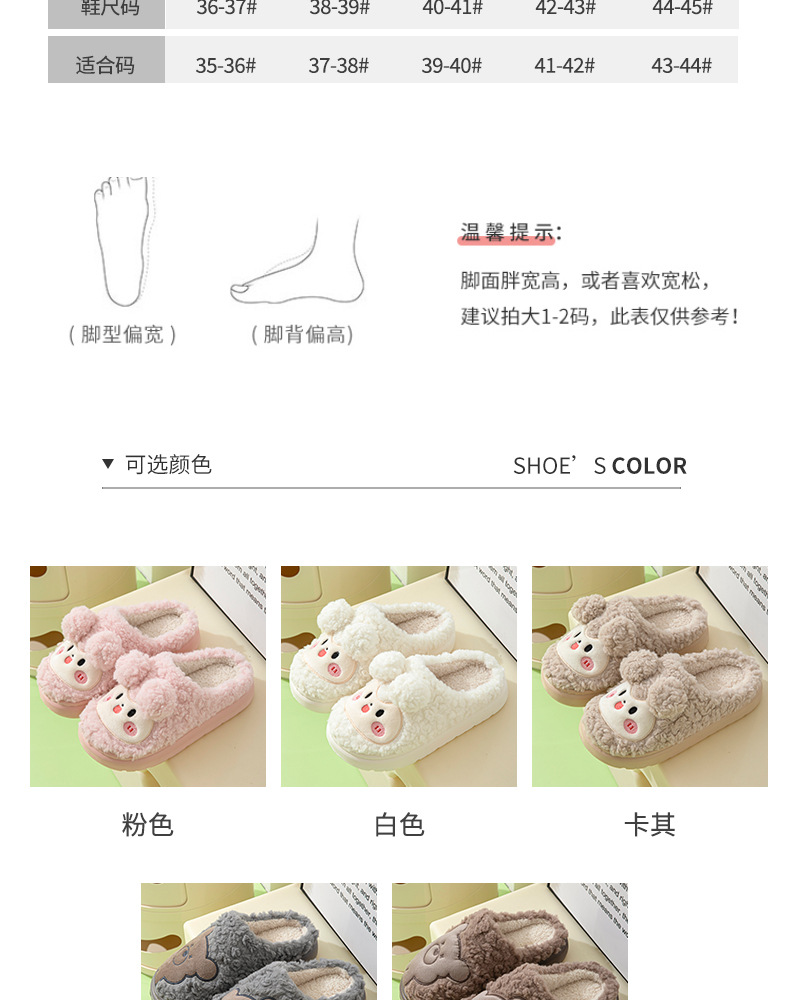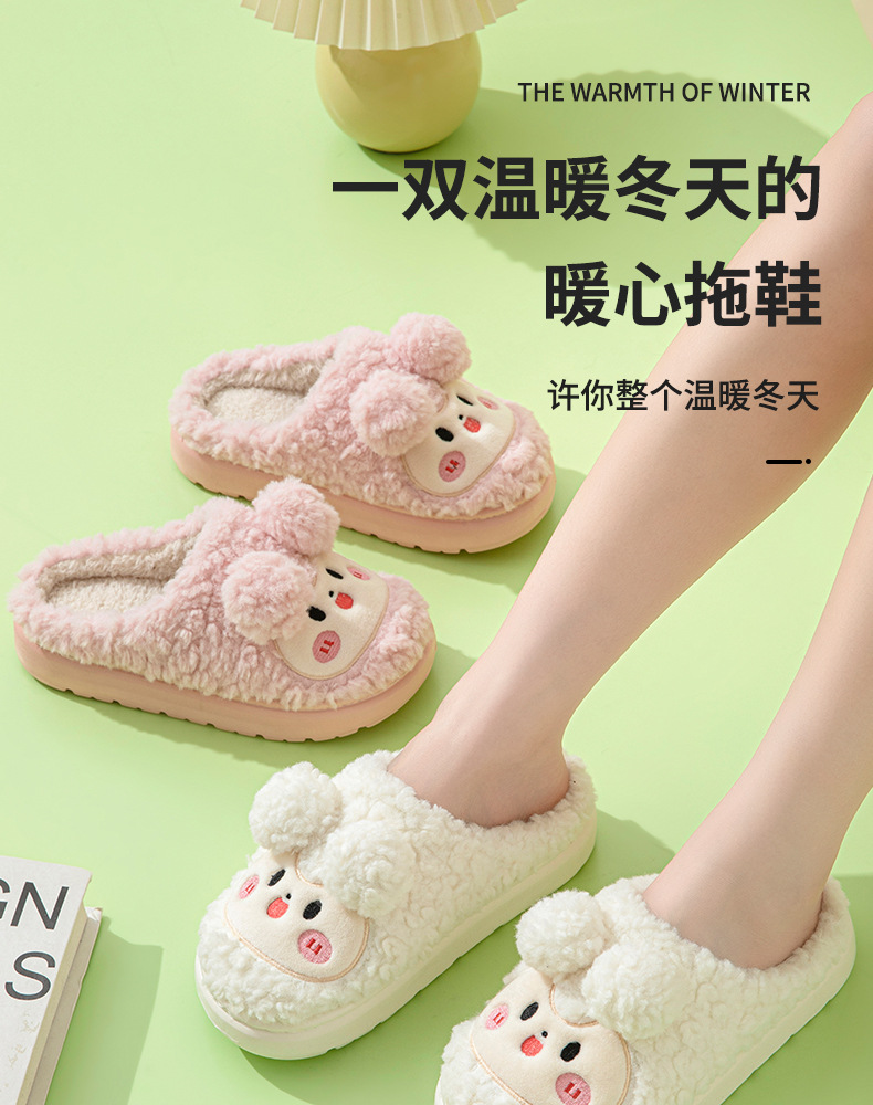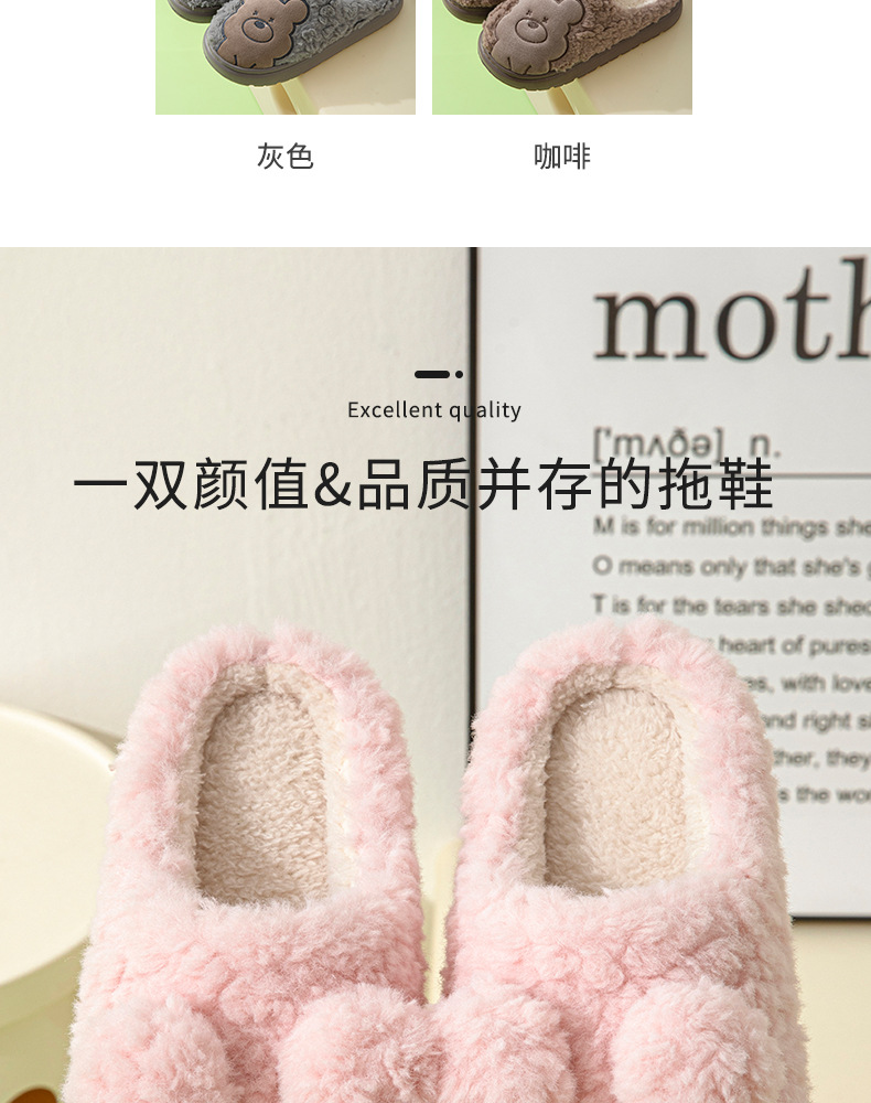 Adultos de dibujos animados zapatillas de algodón interior mujer conejo bola peluche lindos cómodos y cálidos impresión oso pareja zapatillas hombre