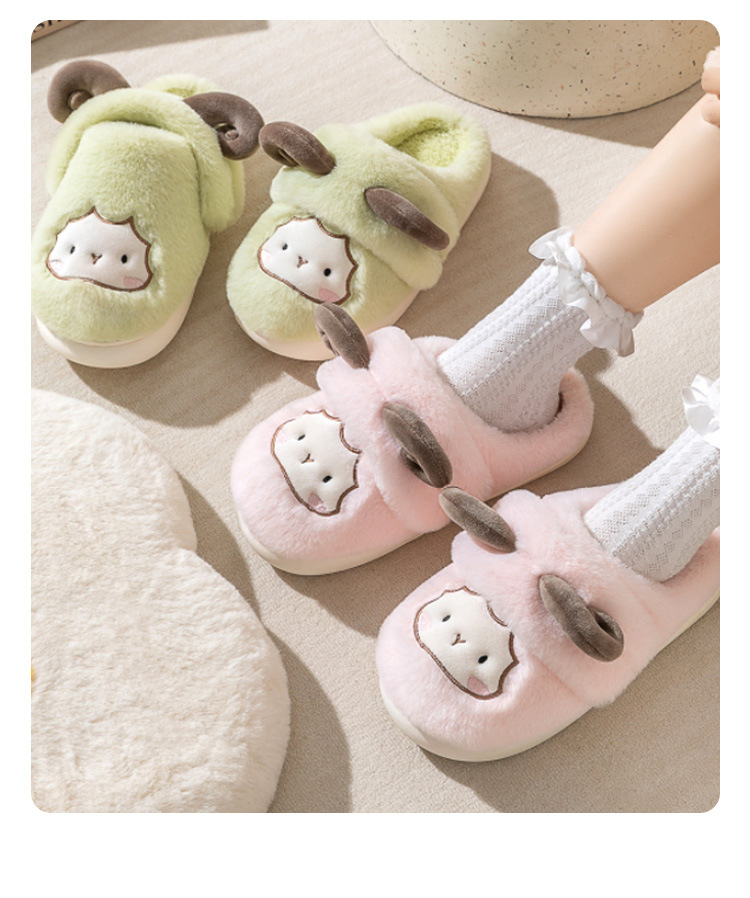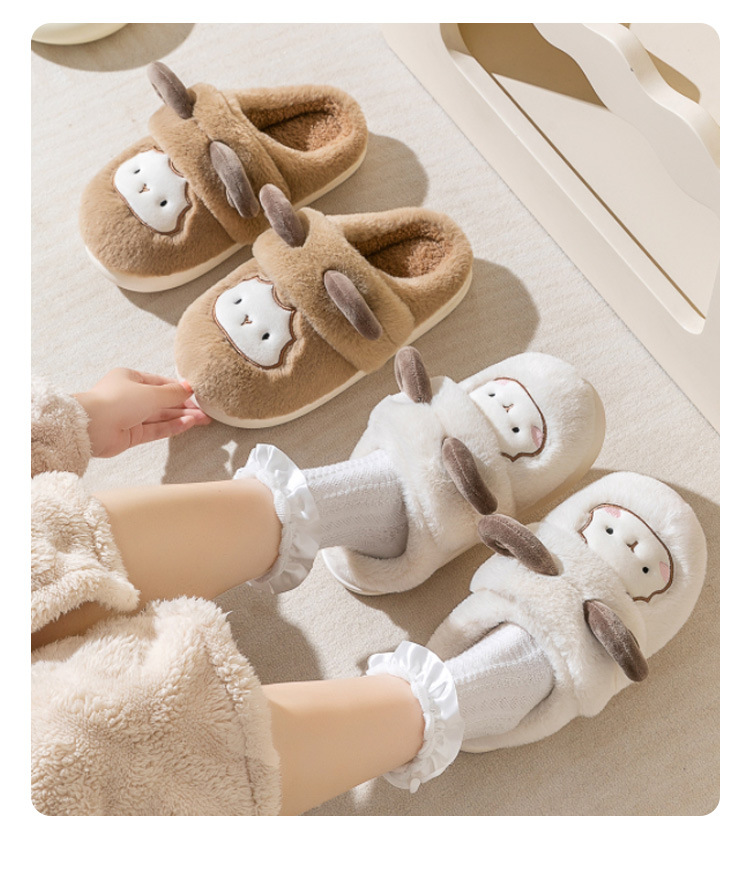 Caricatura de dibujos animados zapatillas de algodón interior lindas bolsas de lana tacones zapatillas de algodón pisar sensación de diseño de invierno zapatillas cálidas