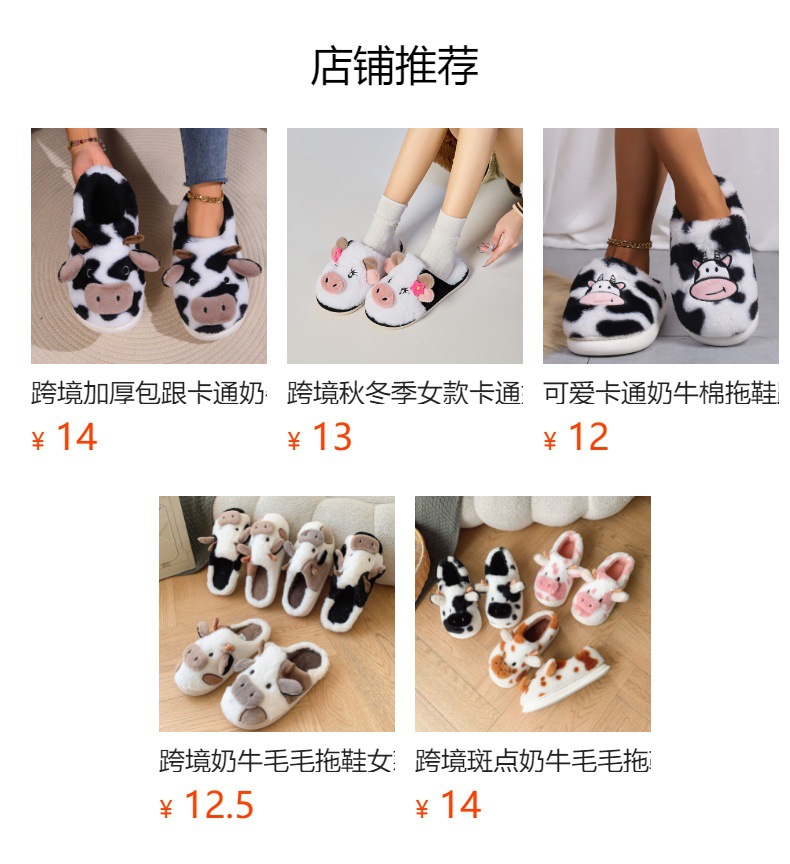 Pantuflas de piel de vaca para mujer, pantuflas de algodón para interiores, pantuflas de felpa cálidas con suela gruesa para el hogar, venta al por mayor