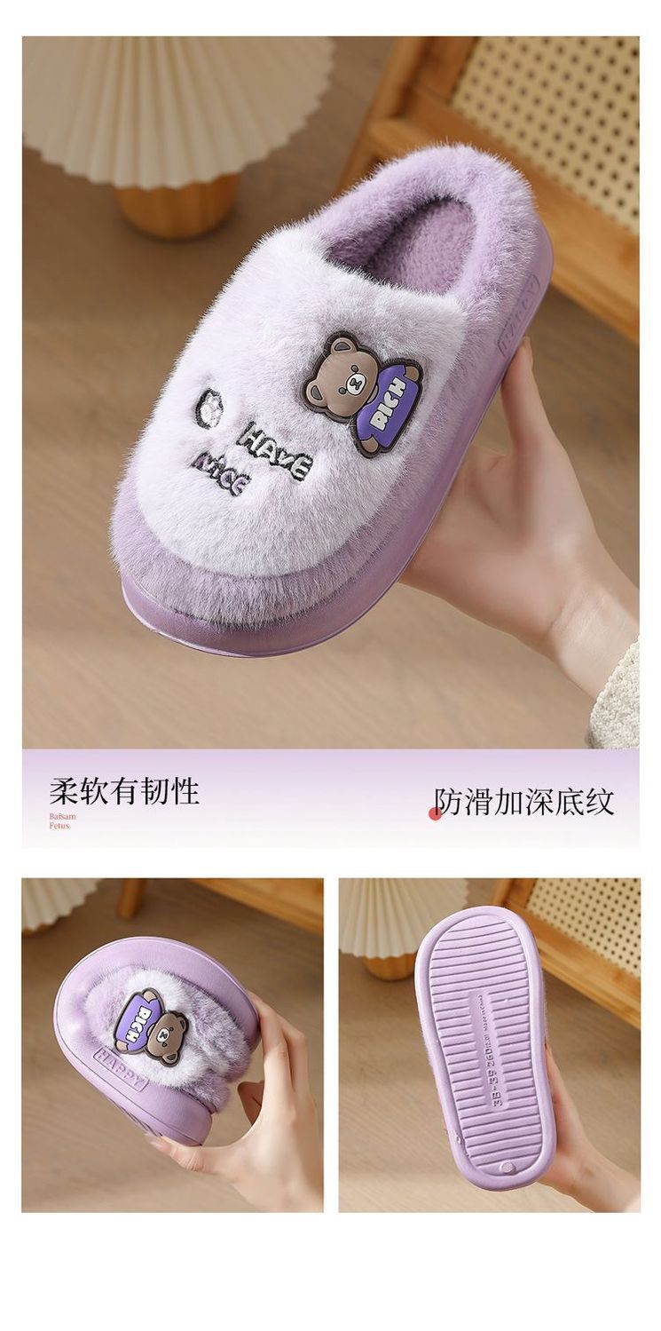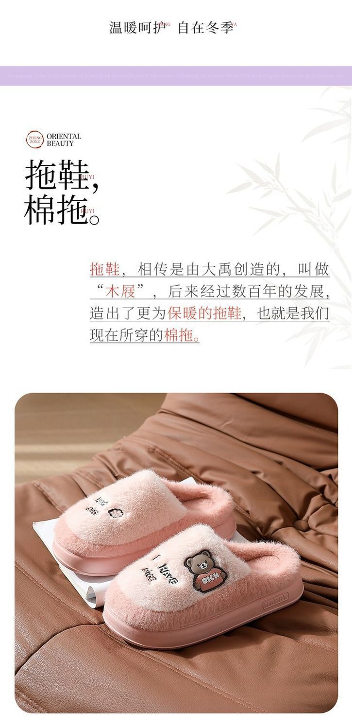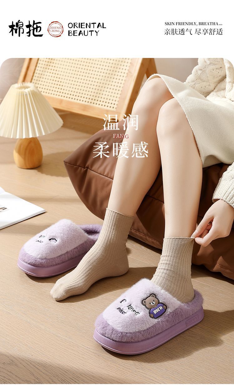 Zapatillas de algodón para mujeres invierno 2025 nuevo estilo interior de dibujos animados antideslizantes peluche de algodón de fondo grueso invierno
