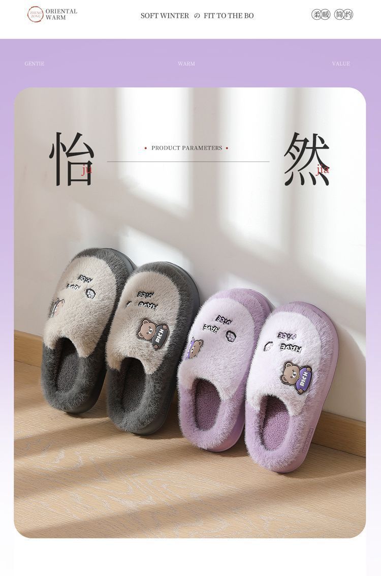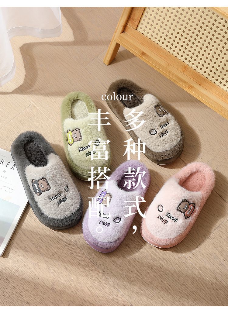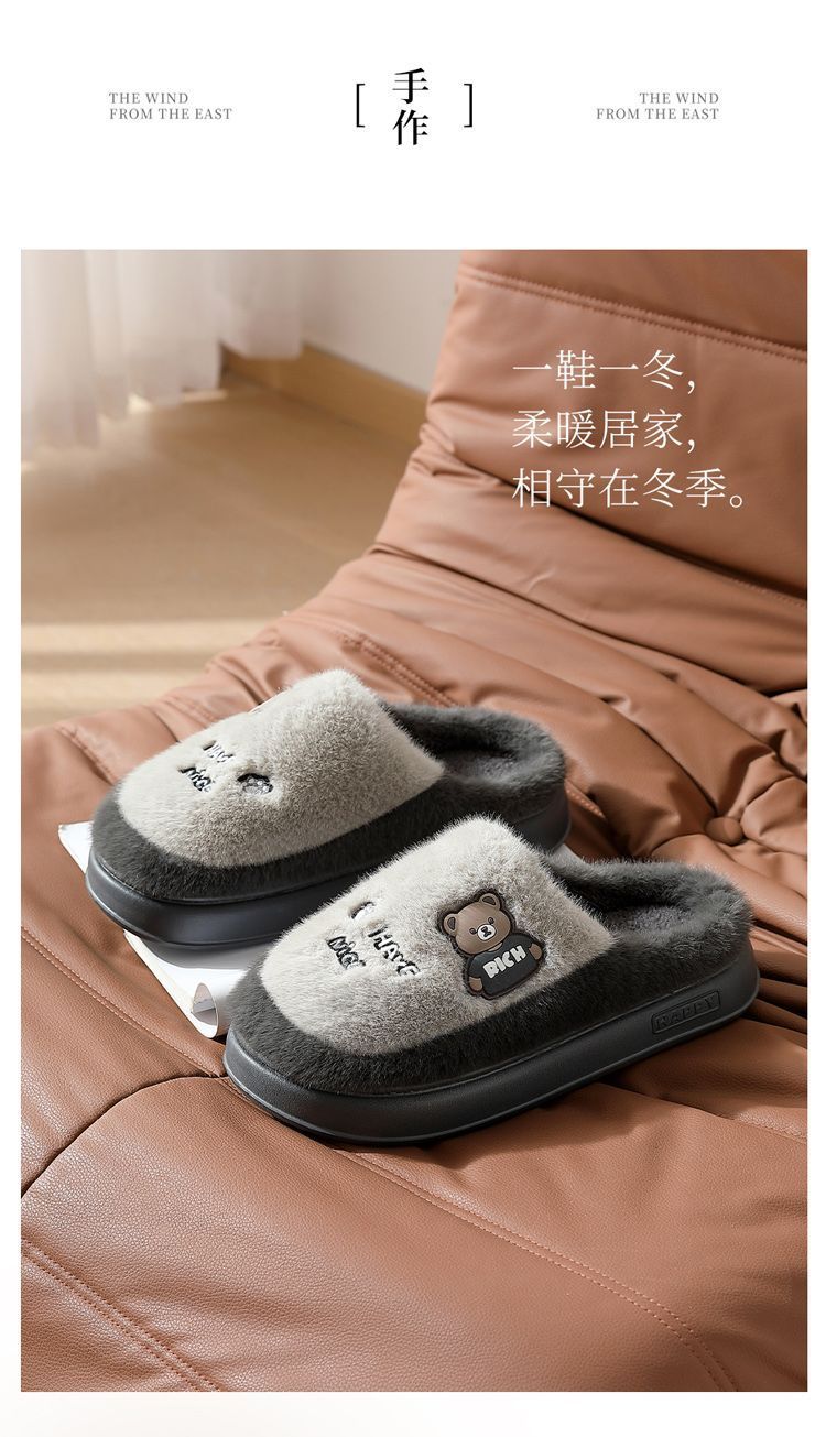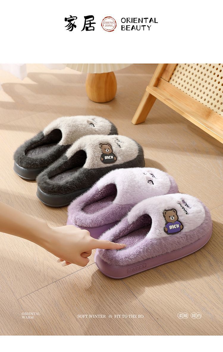 Zapatillas de algodón para mujeres invierno 2025 nuevo estilo interior de dibujos animados antideslizantes peluche de algodón de fondo grueso invierno
