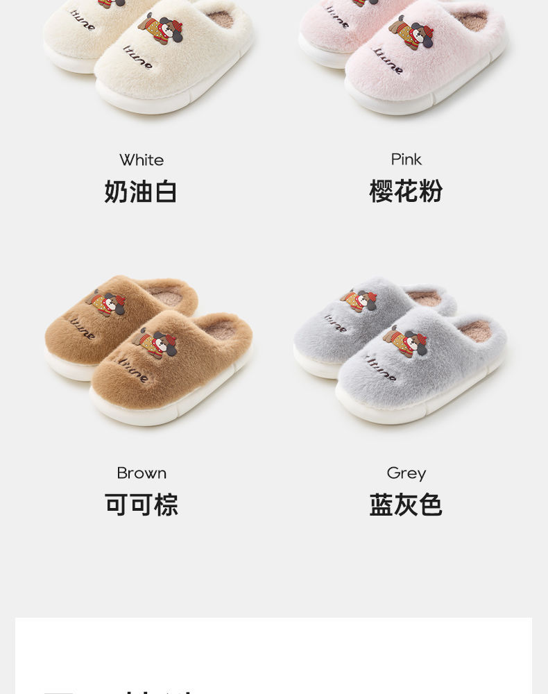 Bonita zapatillas de algodón para perros mujeres otoño y invierno parejas de peluche en el hogar calentamiento antideslizante de dibujos animados zapatillas