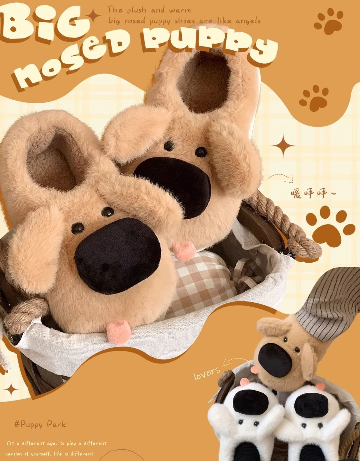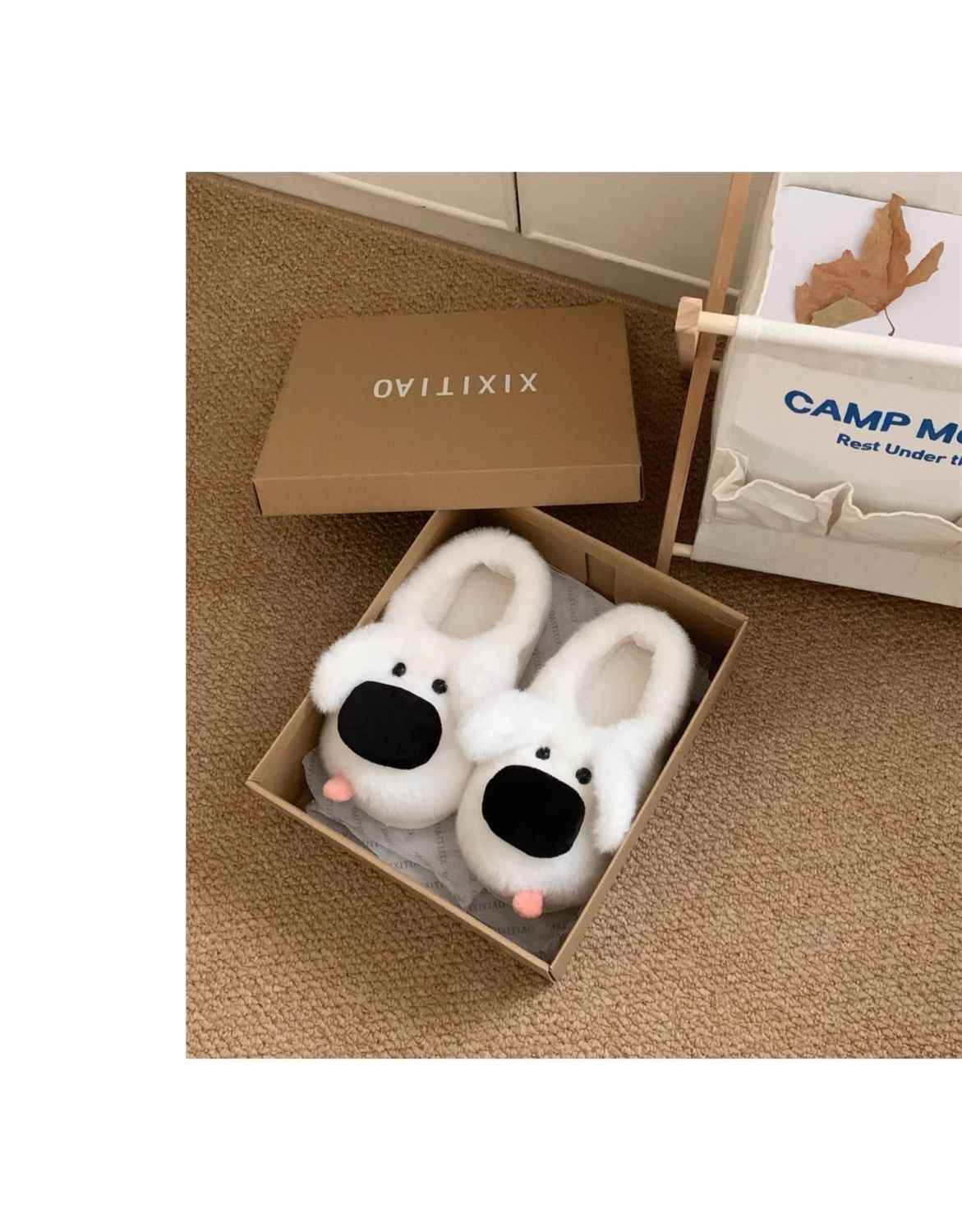 2025 invierno nuevo estilo divertido zapatillas de algodón para perros bolsas cálidas con hombres y mujeres de moda parejas caseras zapatos de lana de suela gruesa