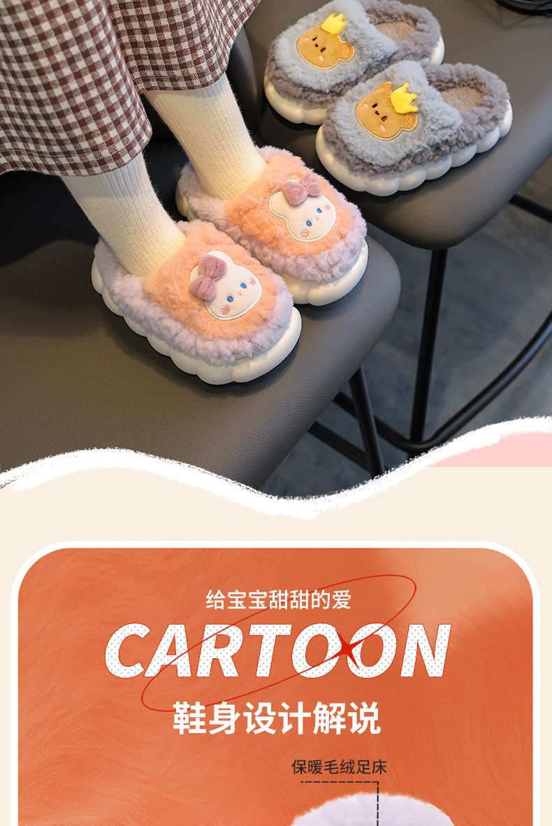 Zapatillas de algodón de invierno para niños, niñas y niñas, calentamiento antideslizante, bolsas para padres e hijos, zapatillas de algodón de lana para niños pequeños y medianos.