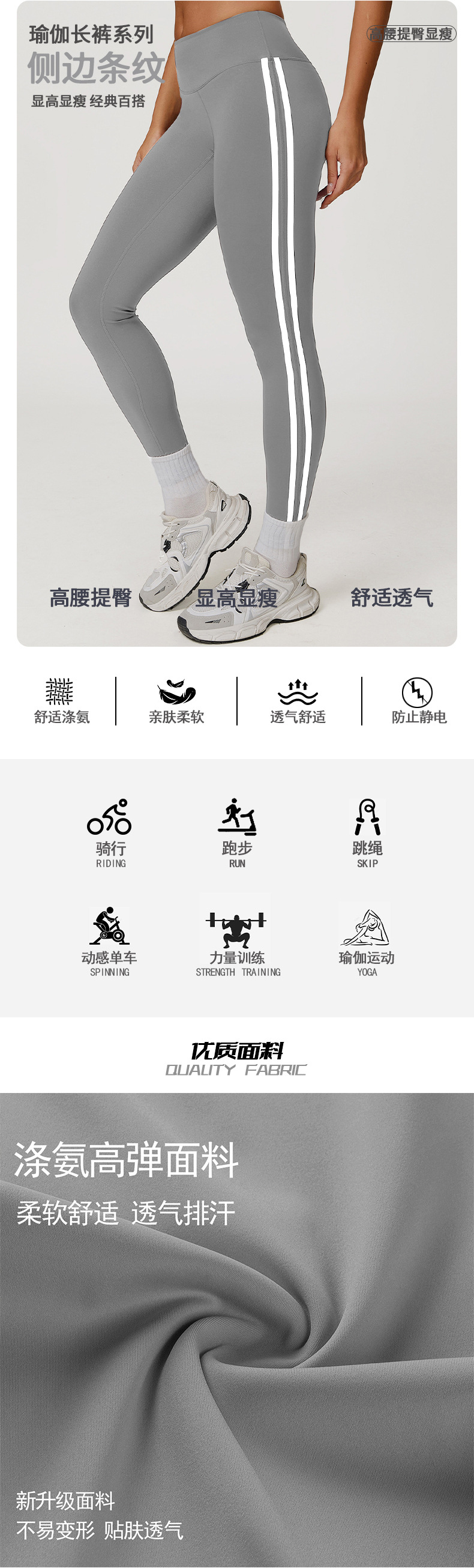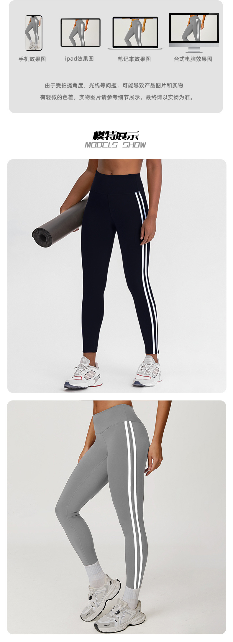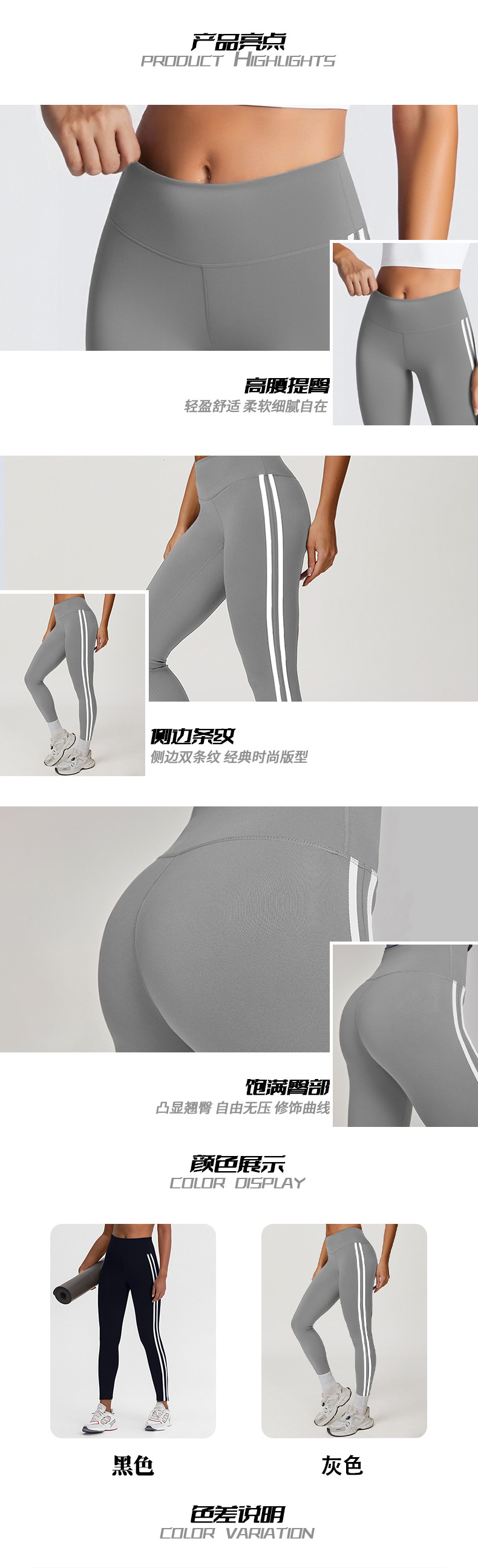 Pantalones de fitness a rayas laterales transfronterizos, cintura alta, caderas, pantalones de yoga delgados y delgados, pantalones deportivos ajustados transpirables