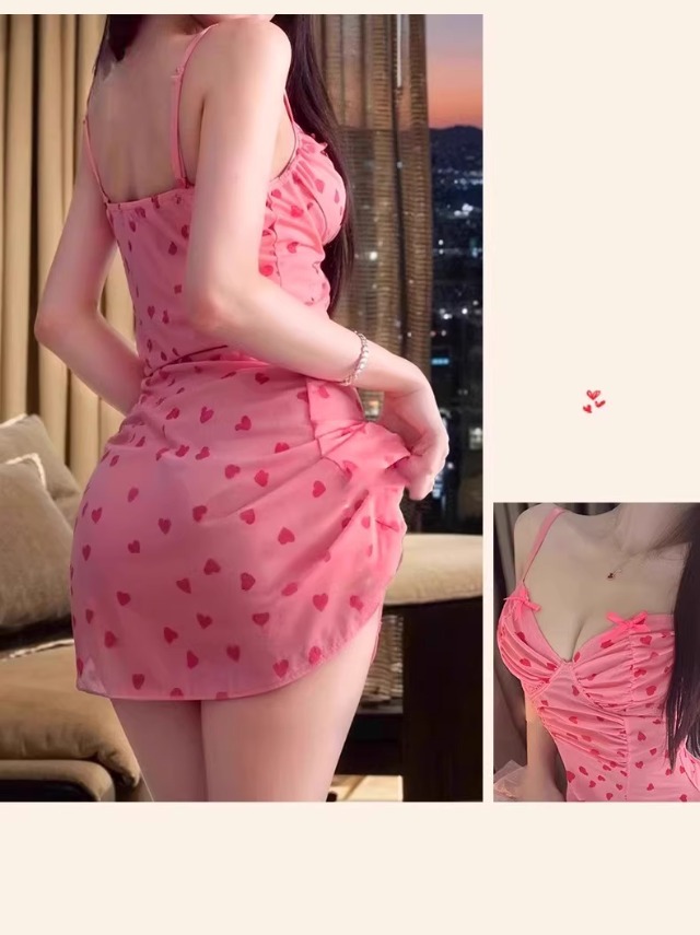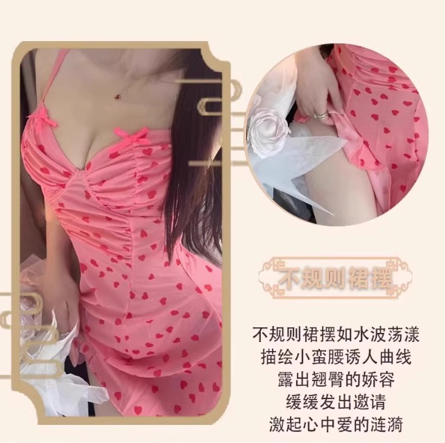 2025 nuevo vestido de lunares con anillo de acero de melocotón, estilo delgado femenino, sexy, estilo puro, camisón de tirantes florales de alta gama