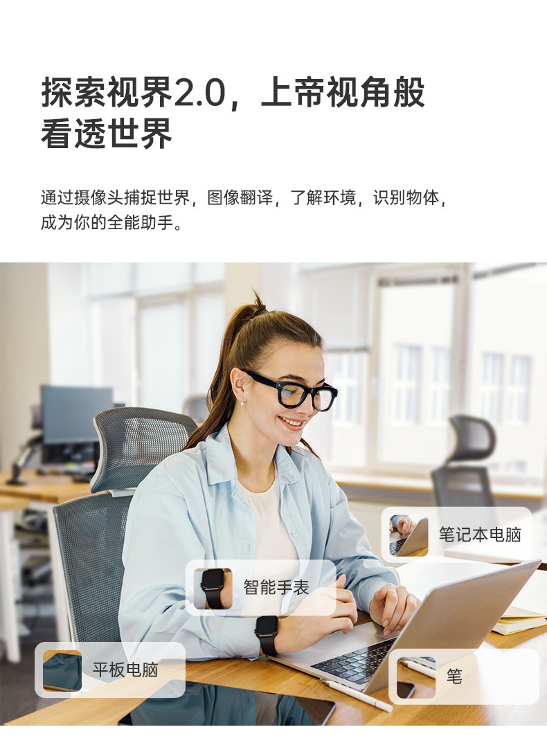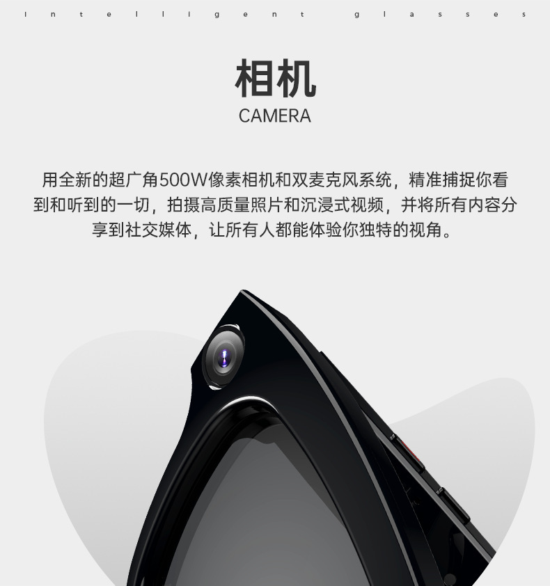 Gafas inteligentes transfronterizas con cámara de alta definición de 500w, transmisión wifi, reconocimiento de objetos, traducción por IA, gafas inteligentes con traducción inteligente