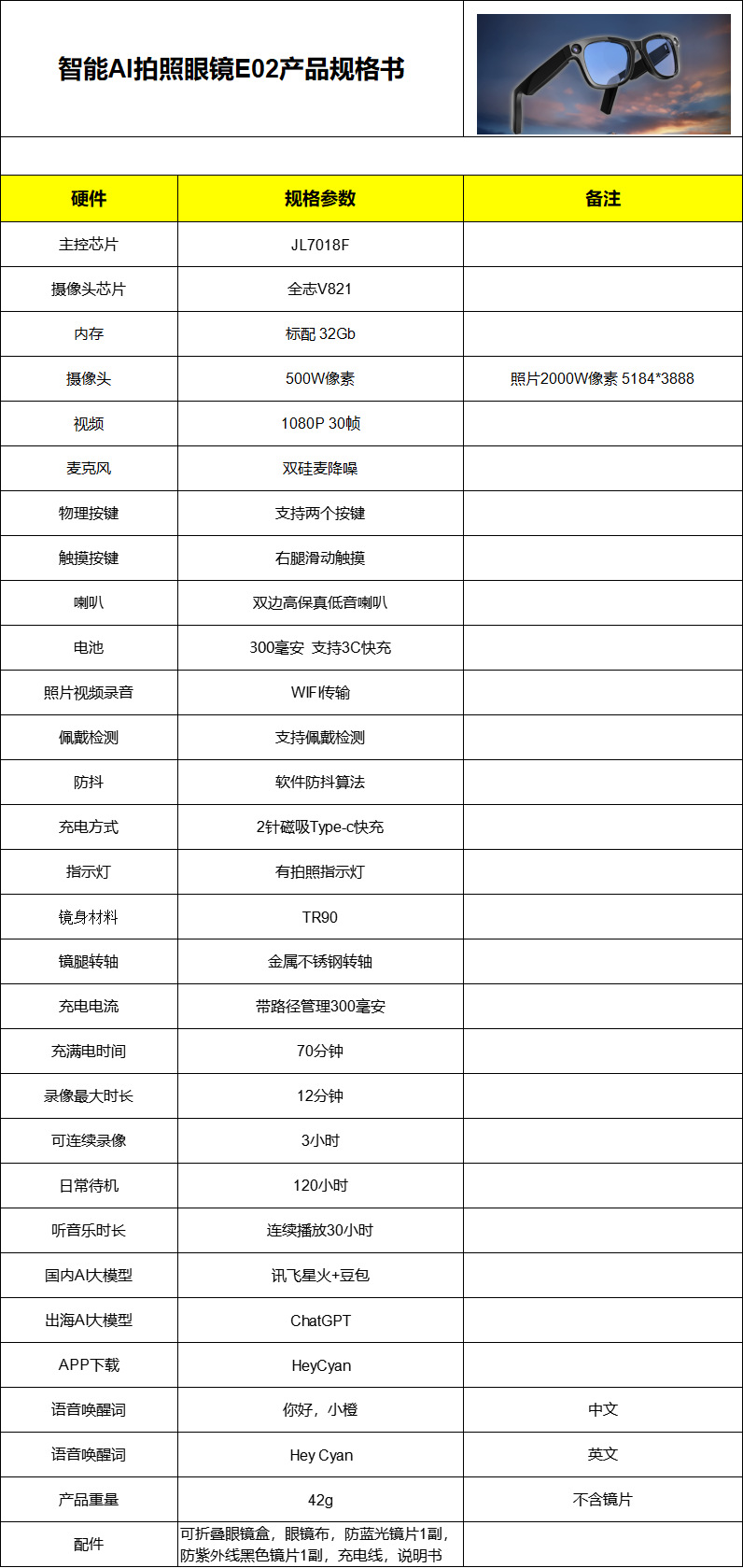 E02(HeyCyan) Foto y video Ai voz despierta comercio exterior bolsa de frijoles transfronteriza gafas inteligentes ChatGPT