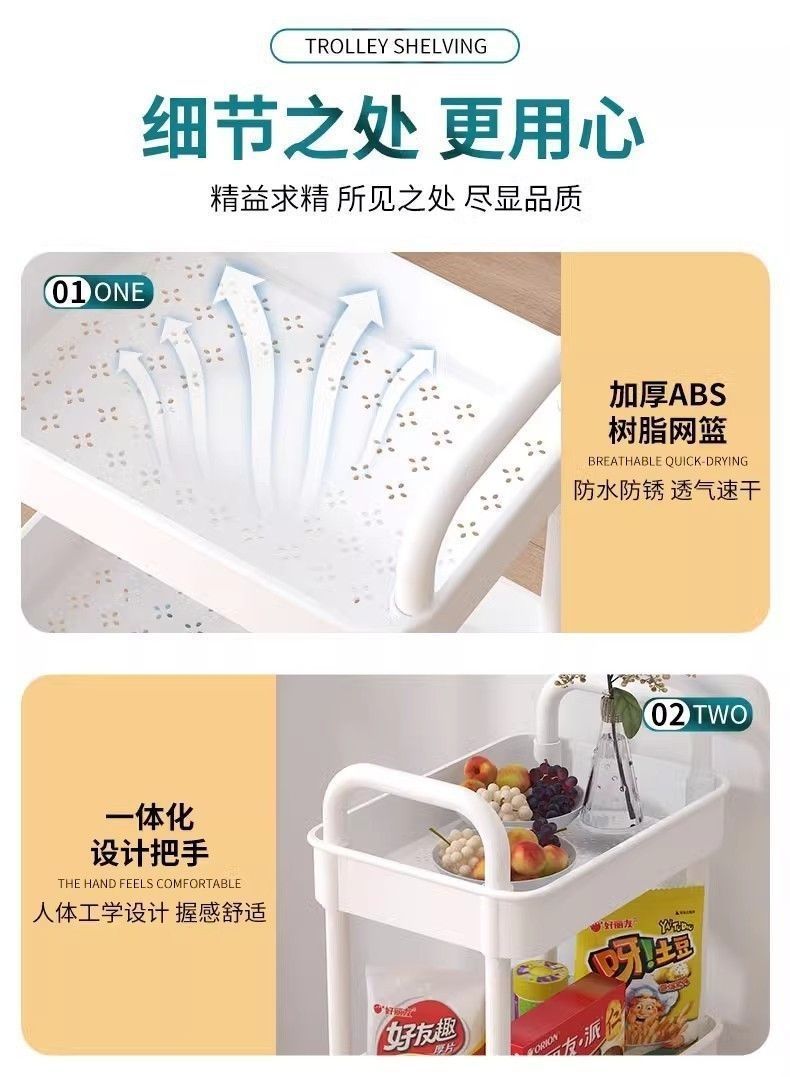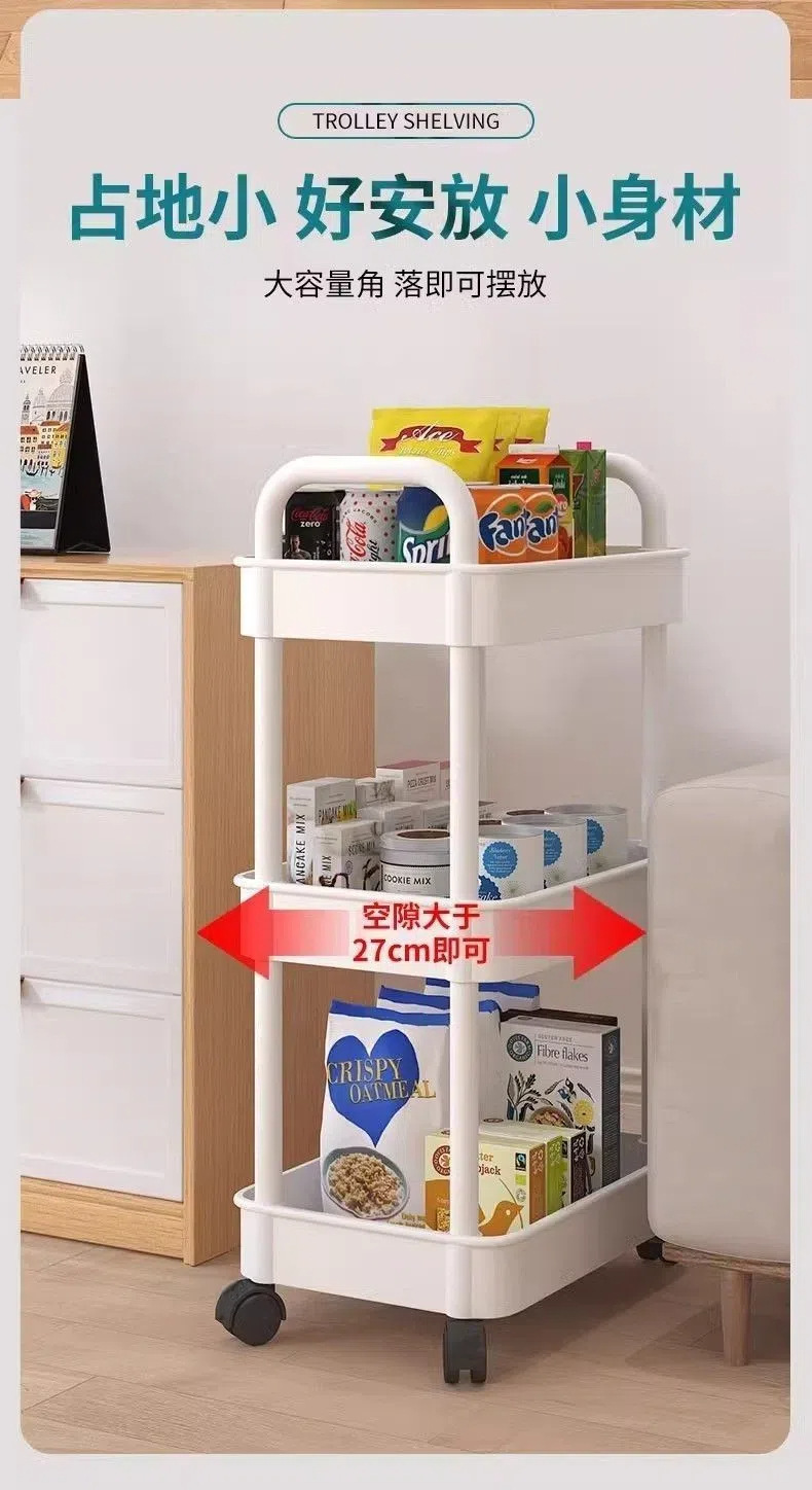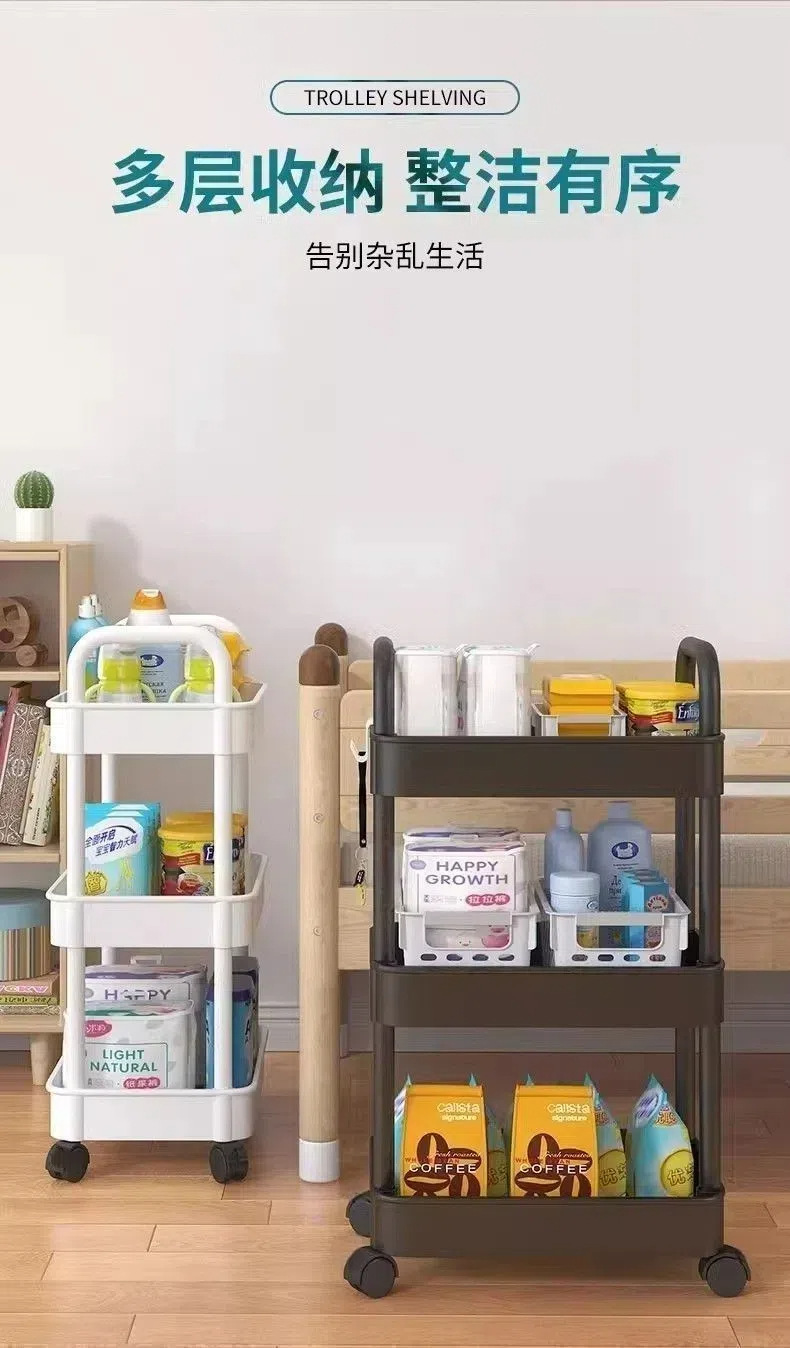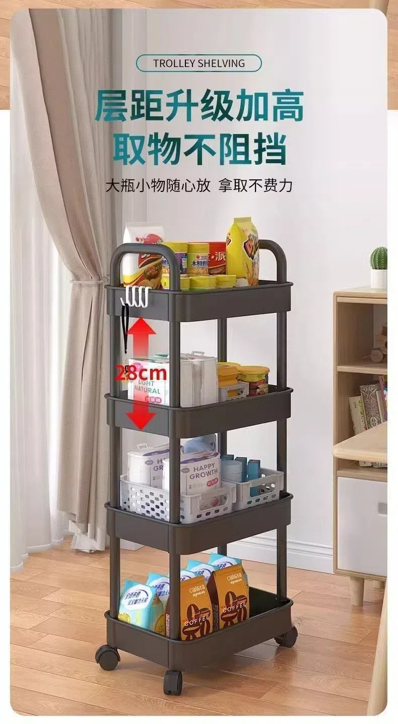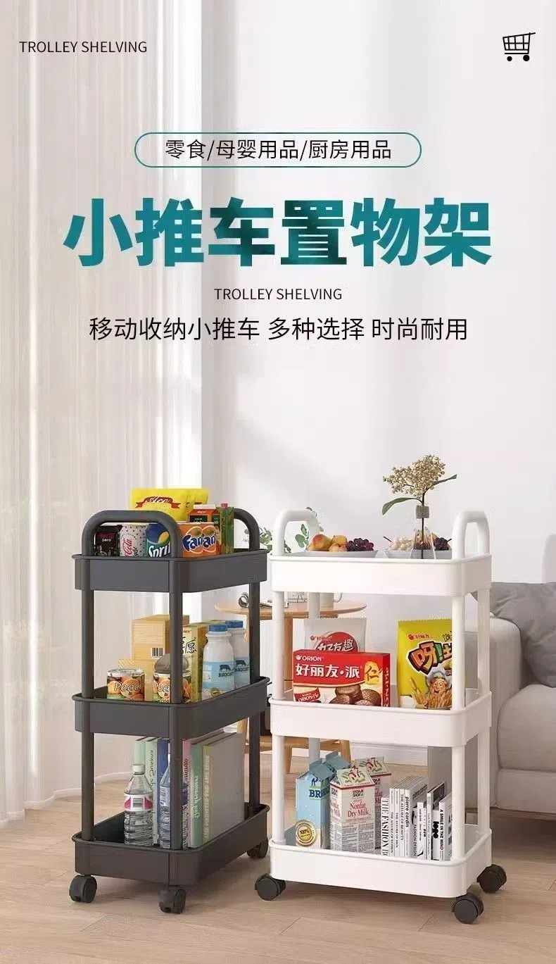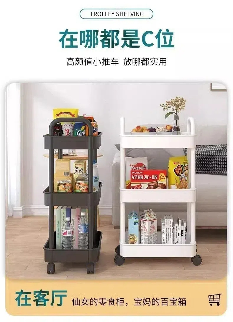 Estante de almacenamiento multicapa multifuncional para snack de almacenamiento en capas de piso para la sala de estar doméstica móvil con carrito pequeño